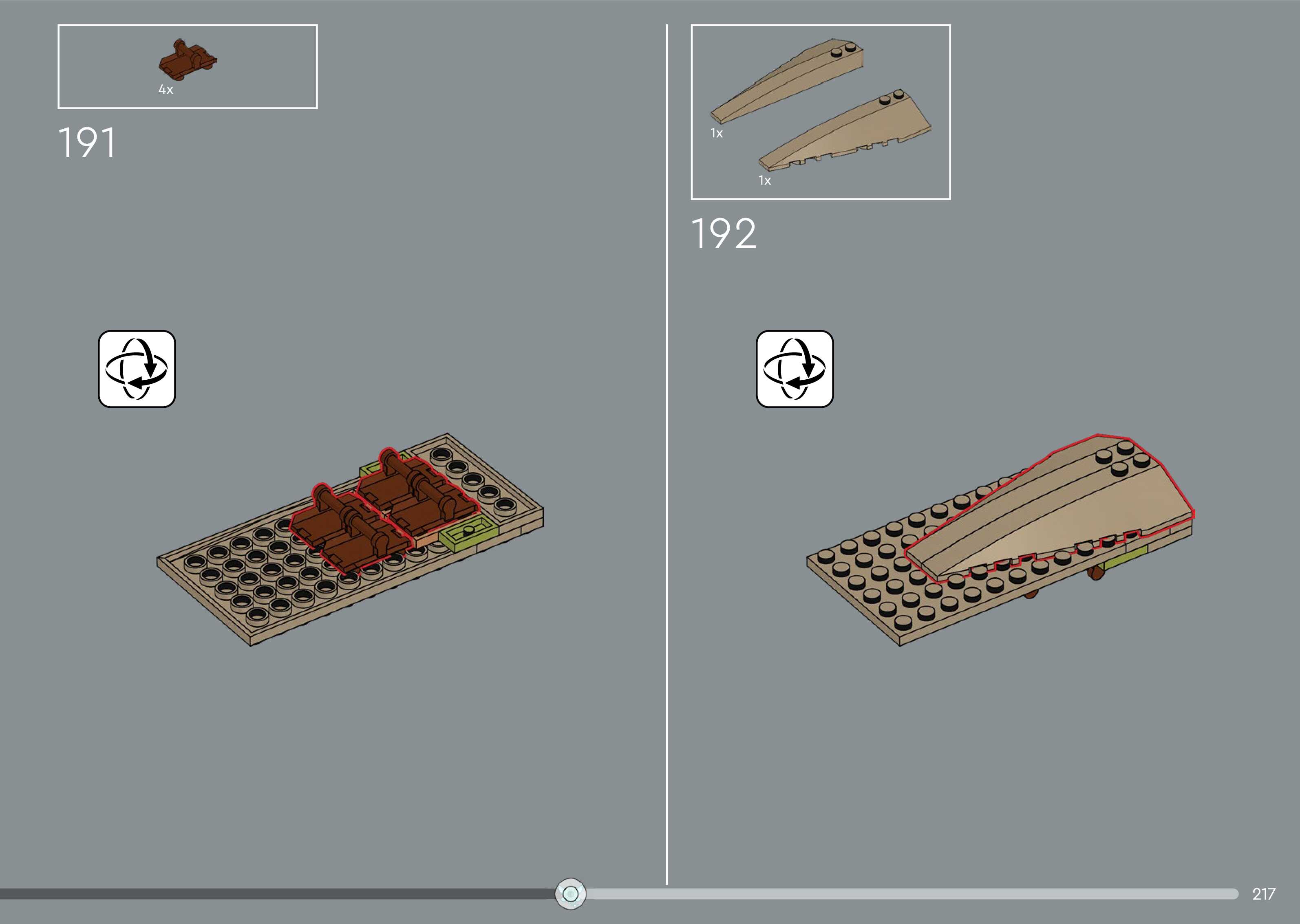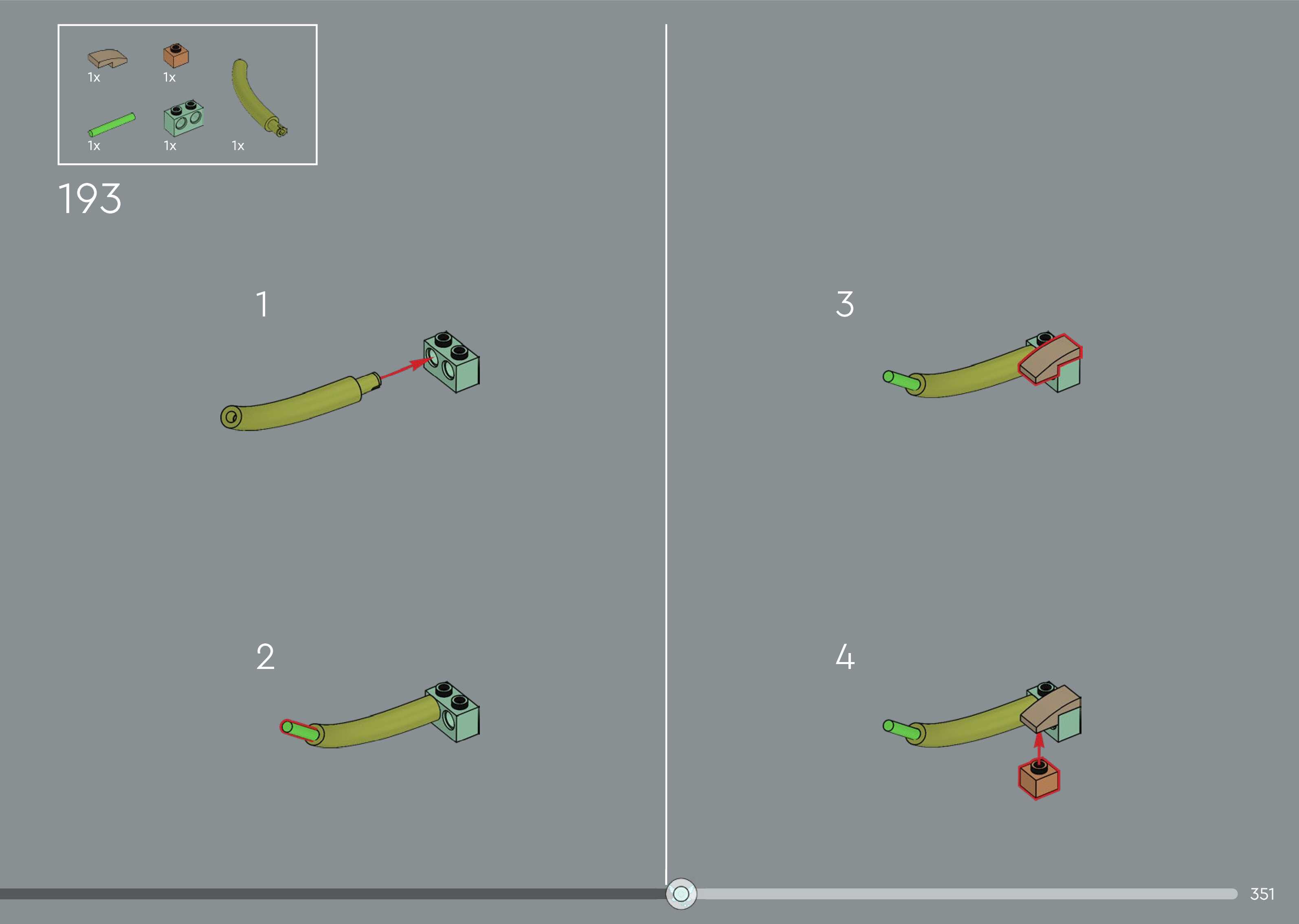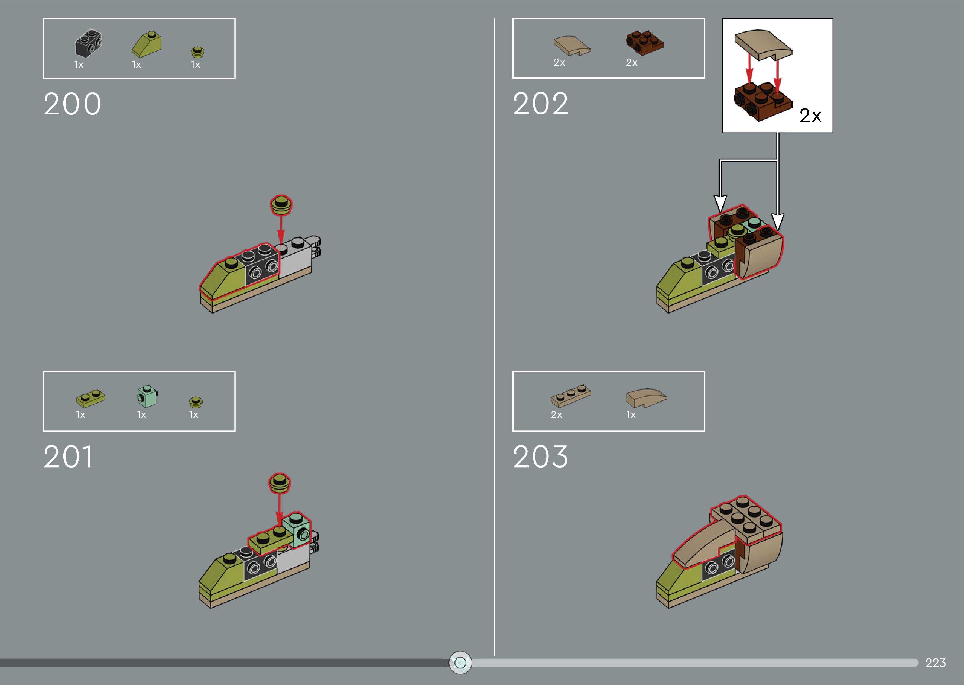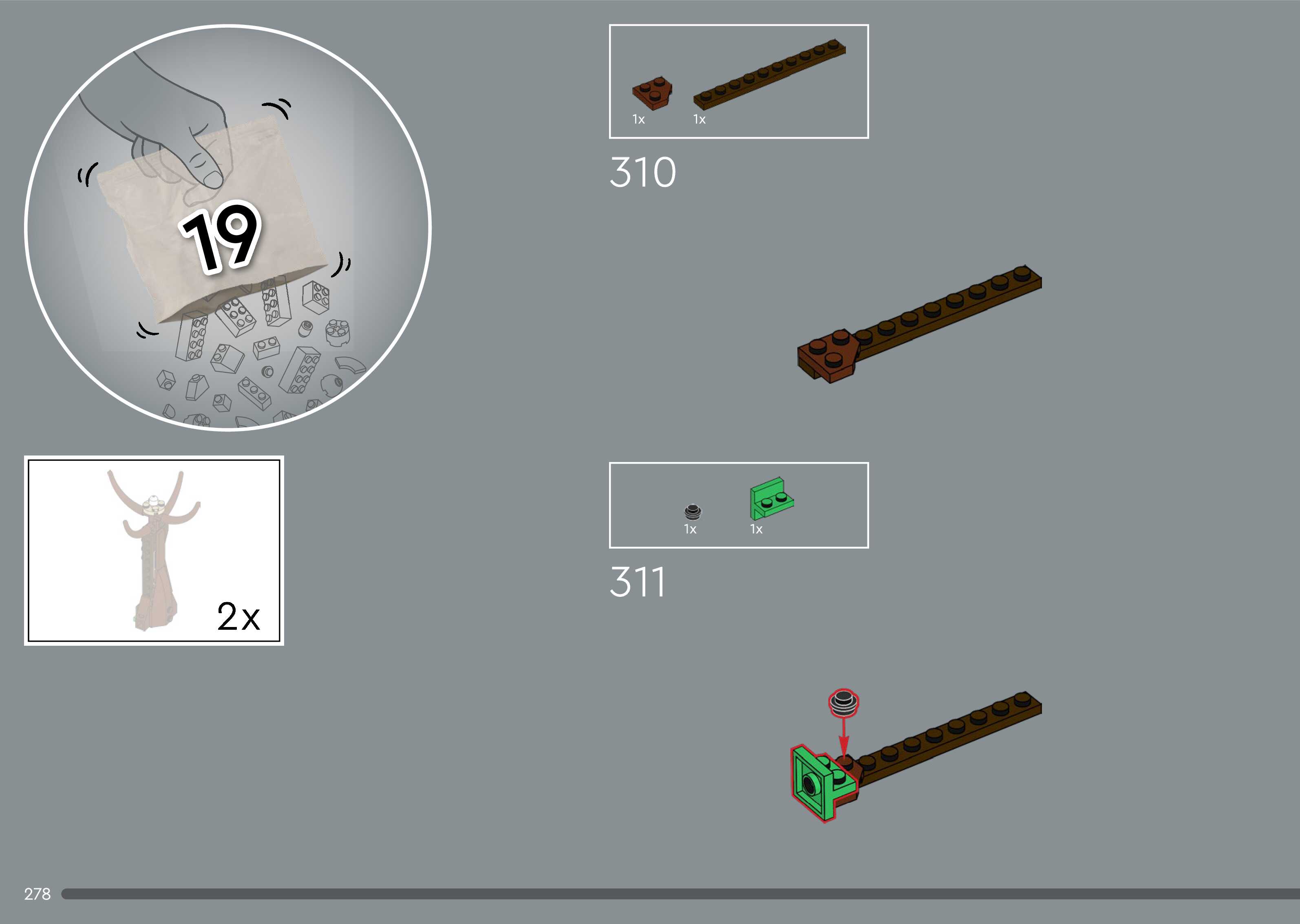 The assembly guide is prepared in a very understandable way for children and adult LEGO enthusiasts. A total of 402 picture galleries are shown, explaining the step-by-step construction stages for 1 different structures.