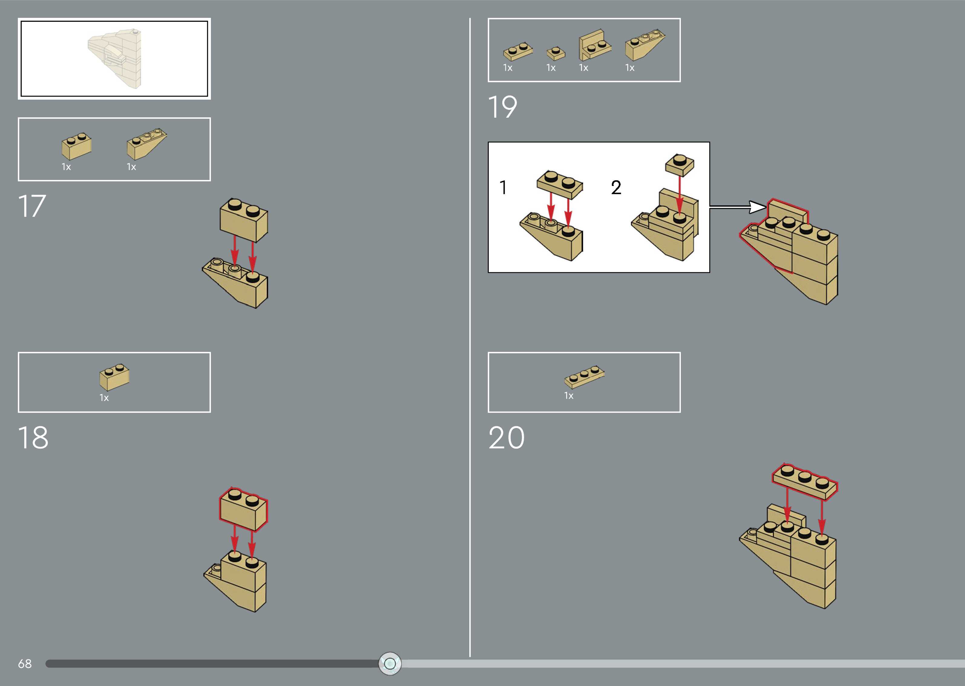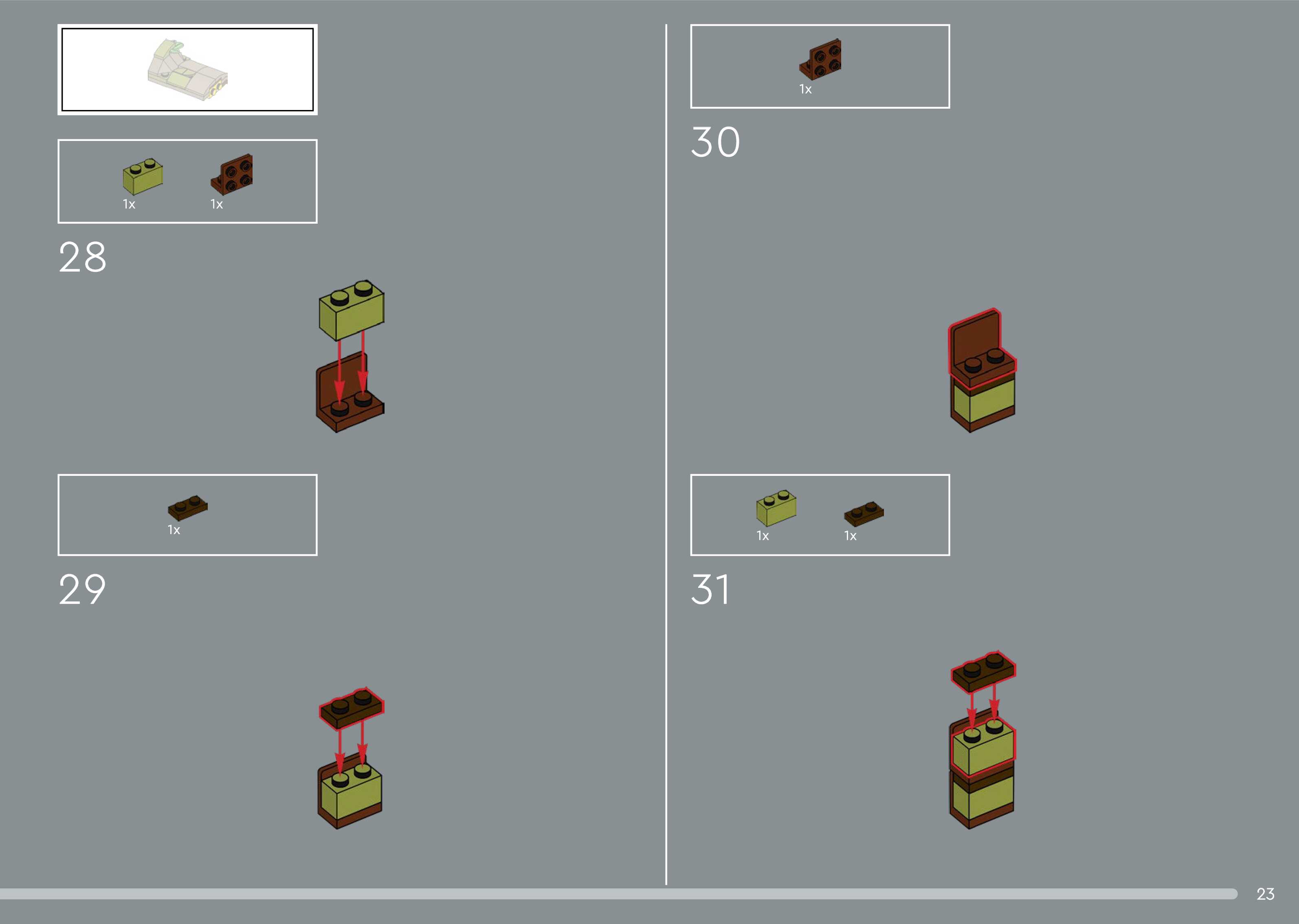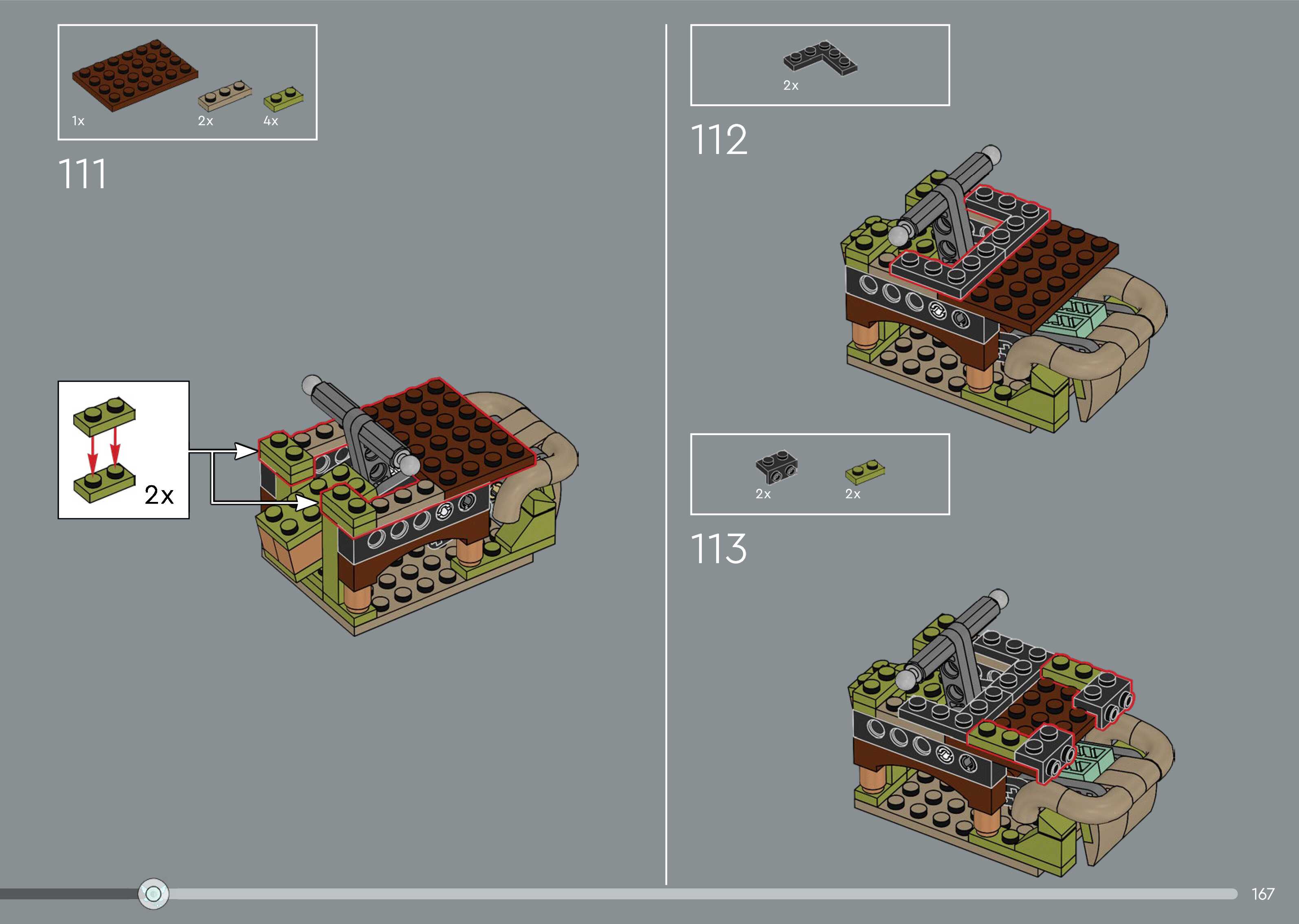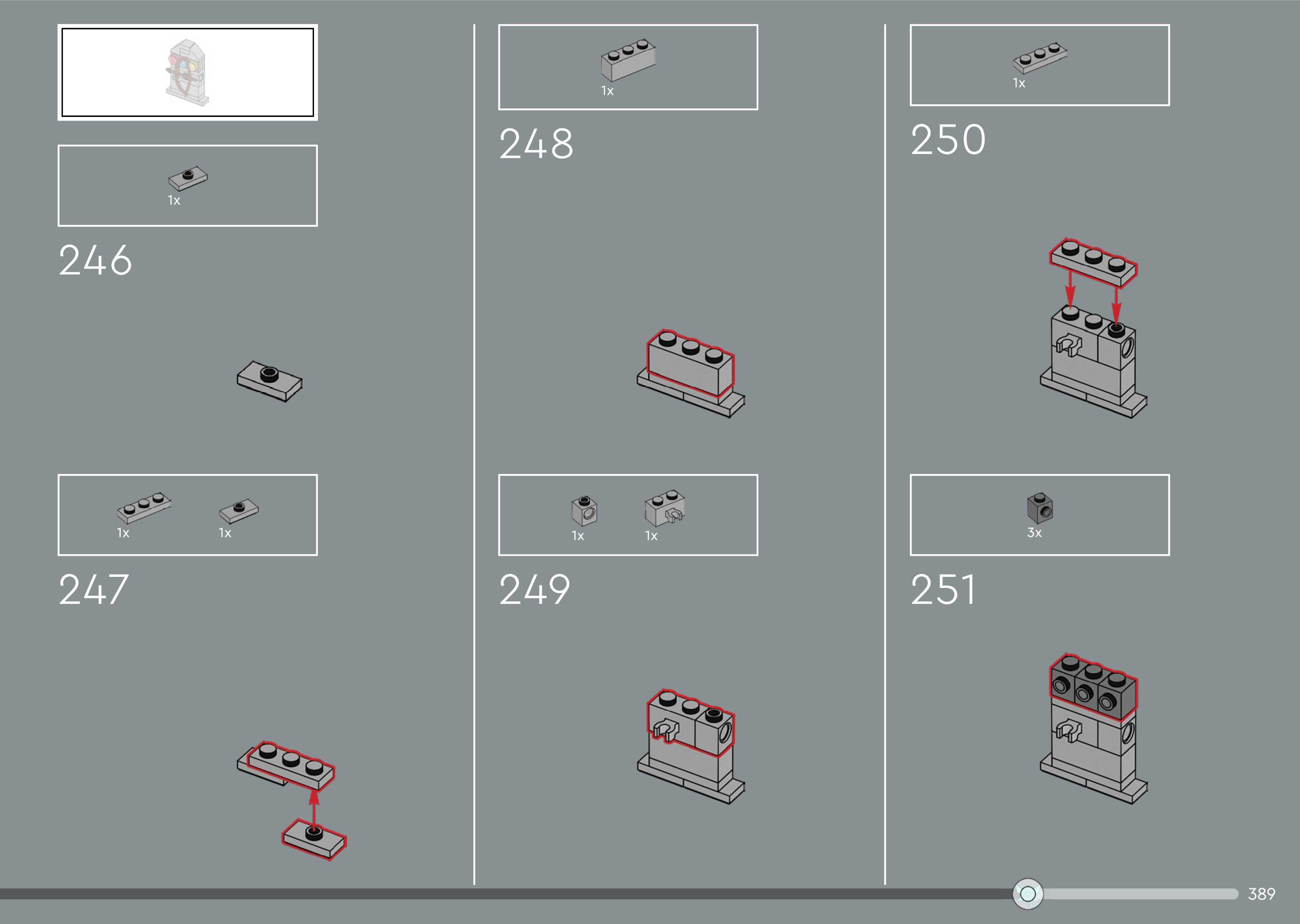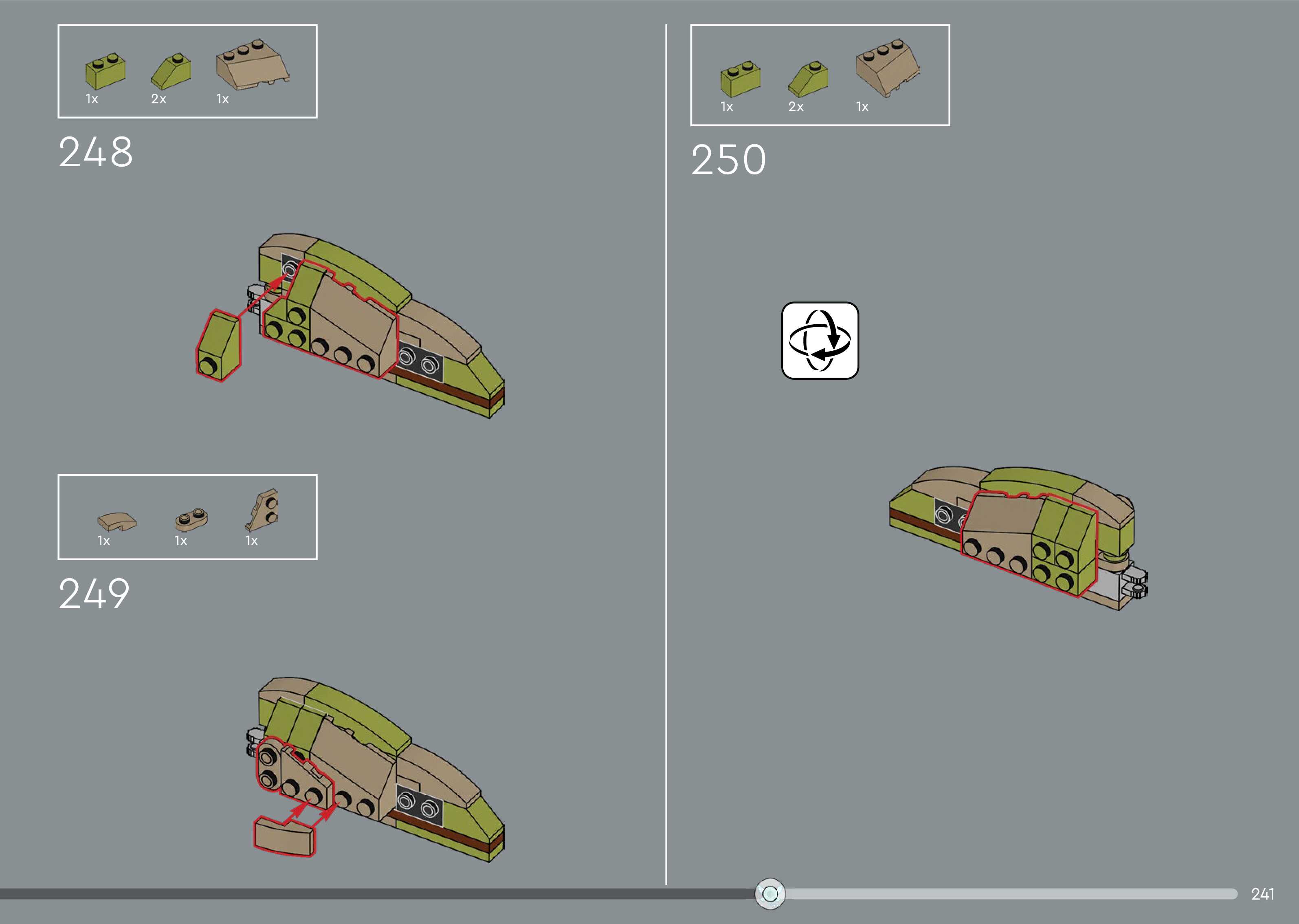 The assembly guide is prepared in a very understandable way for children and adult LEGO enthusiasts. A total of 402 picture galleries are shown, explaining the step-by-step construction stages for 1 different structures.