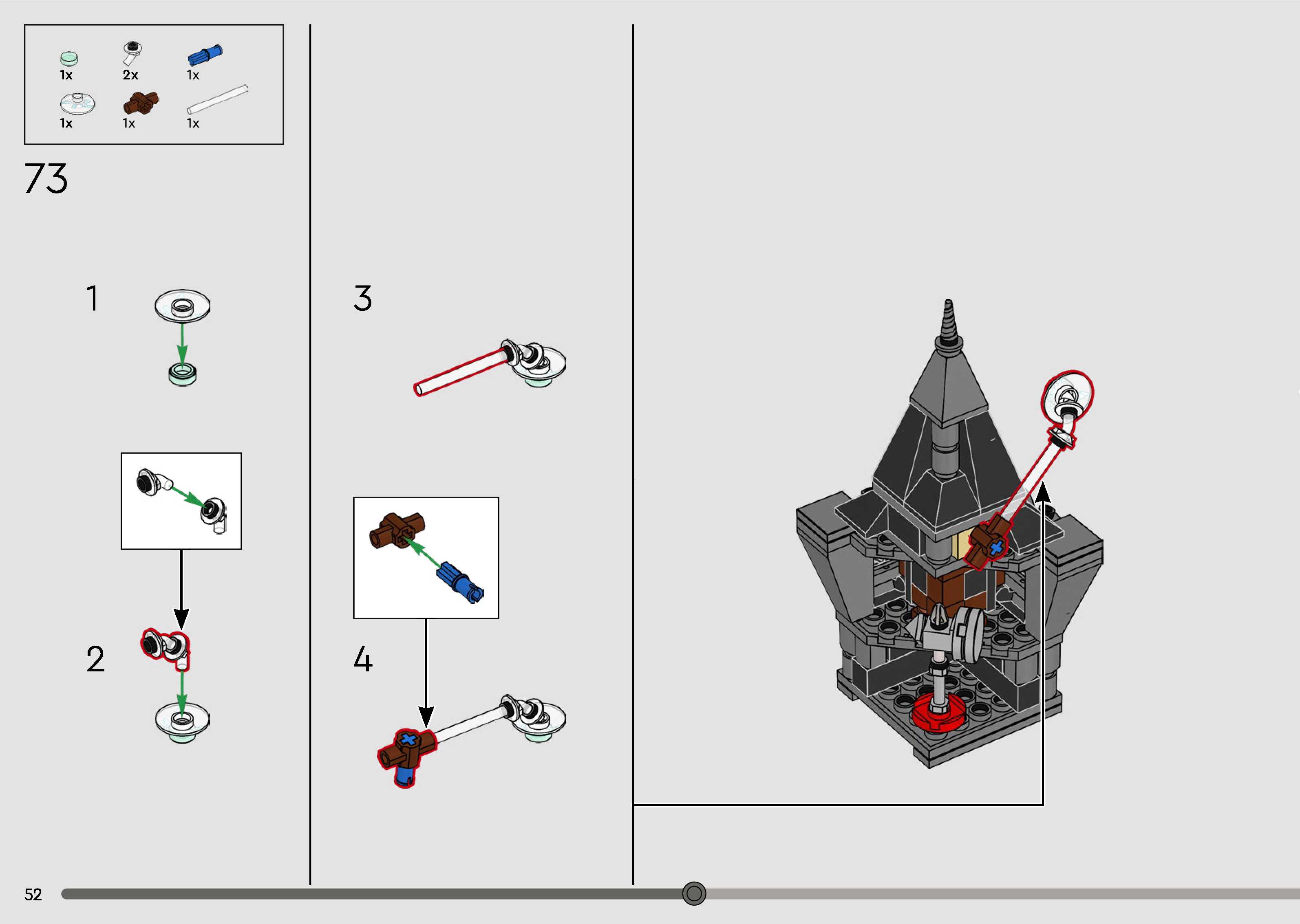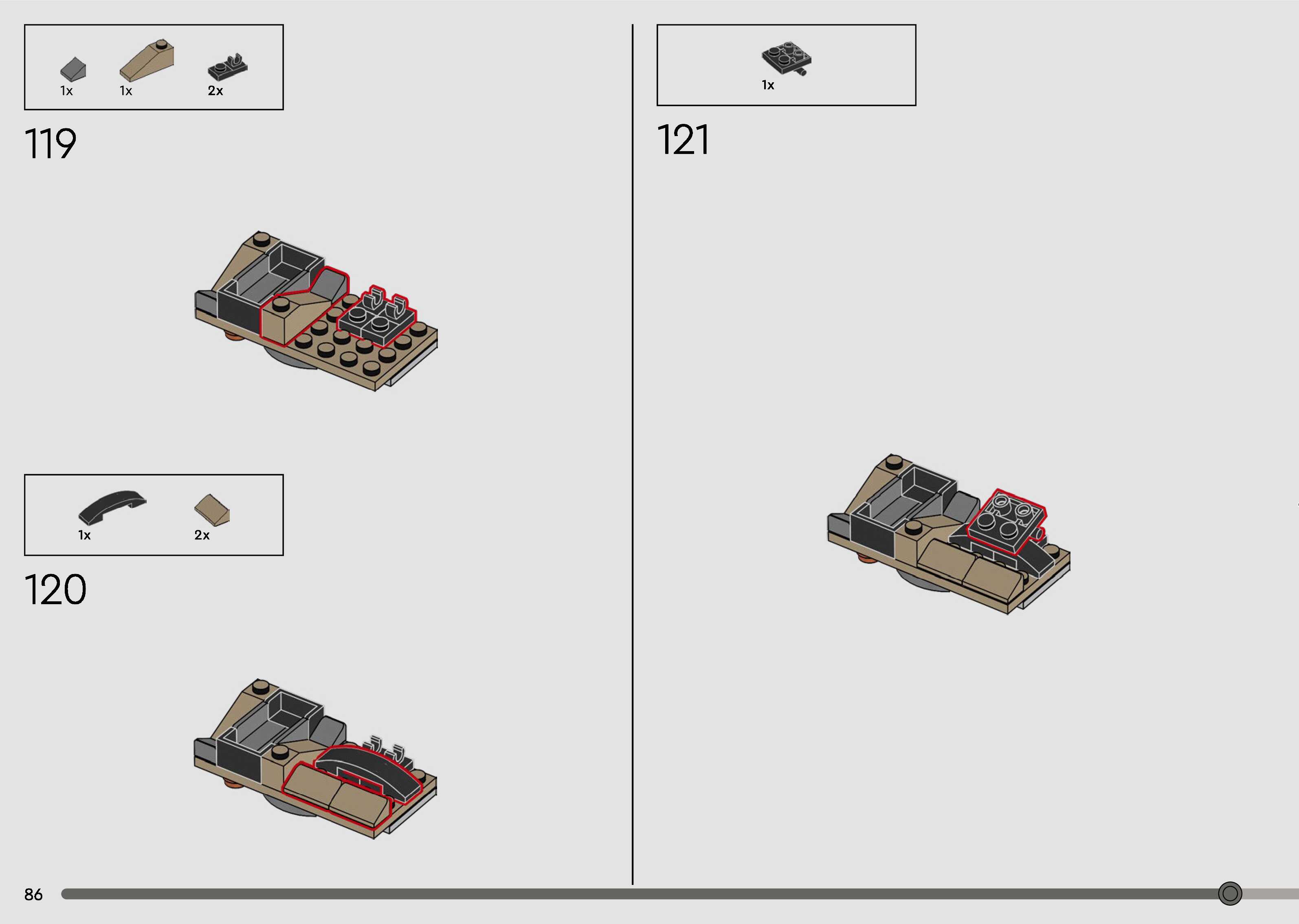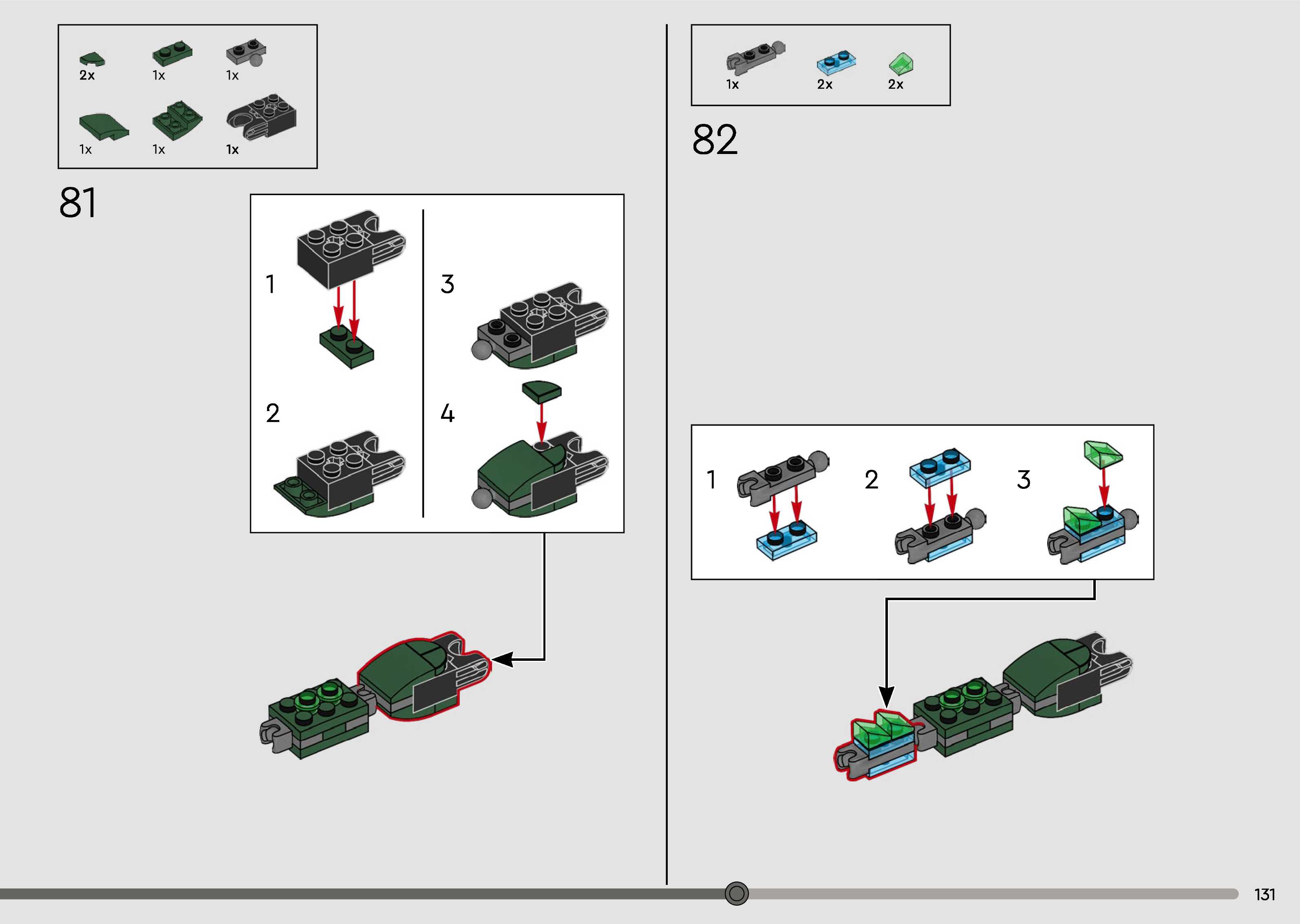 The assembly guide is prepared in a very understandable way for children and adult LEGO enthusiasts. A total of 168 picture galleries are shown, explaining the step-by-step construction stages for 1 different structures.