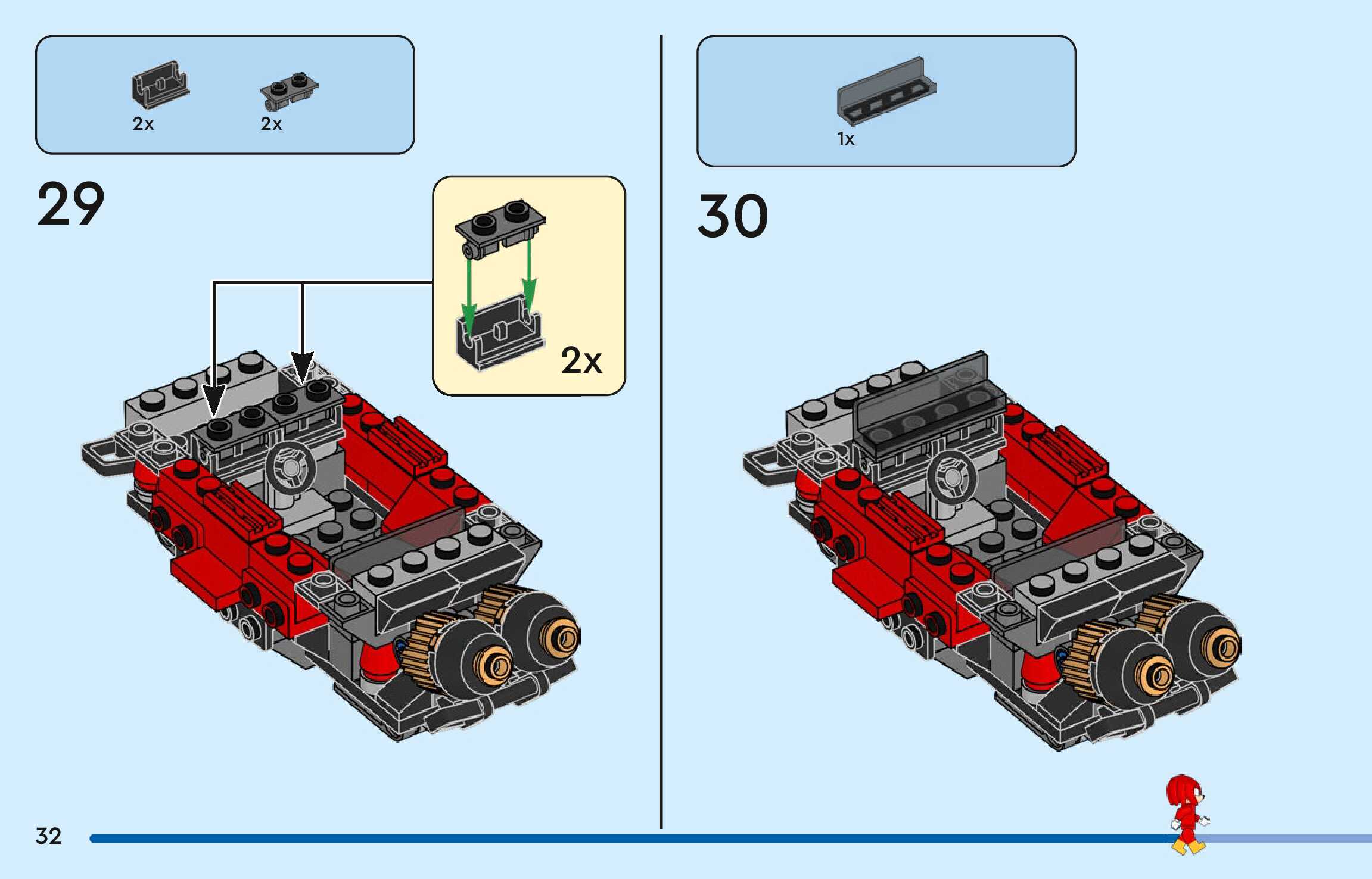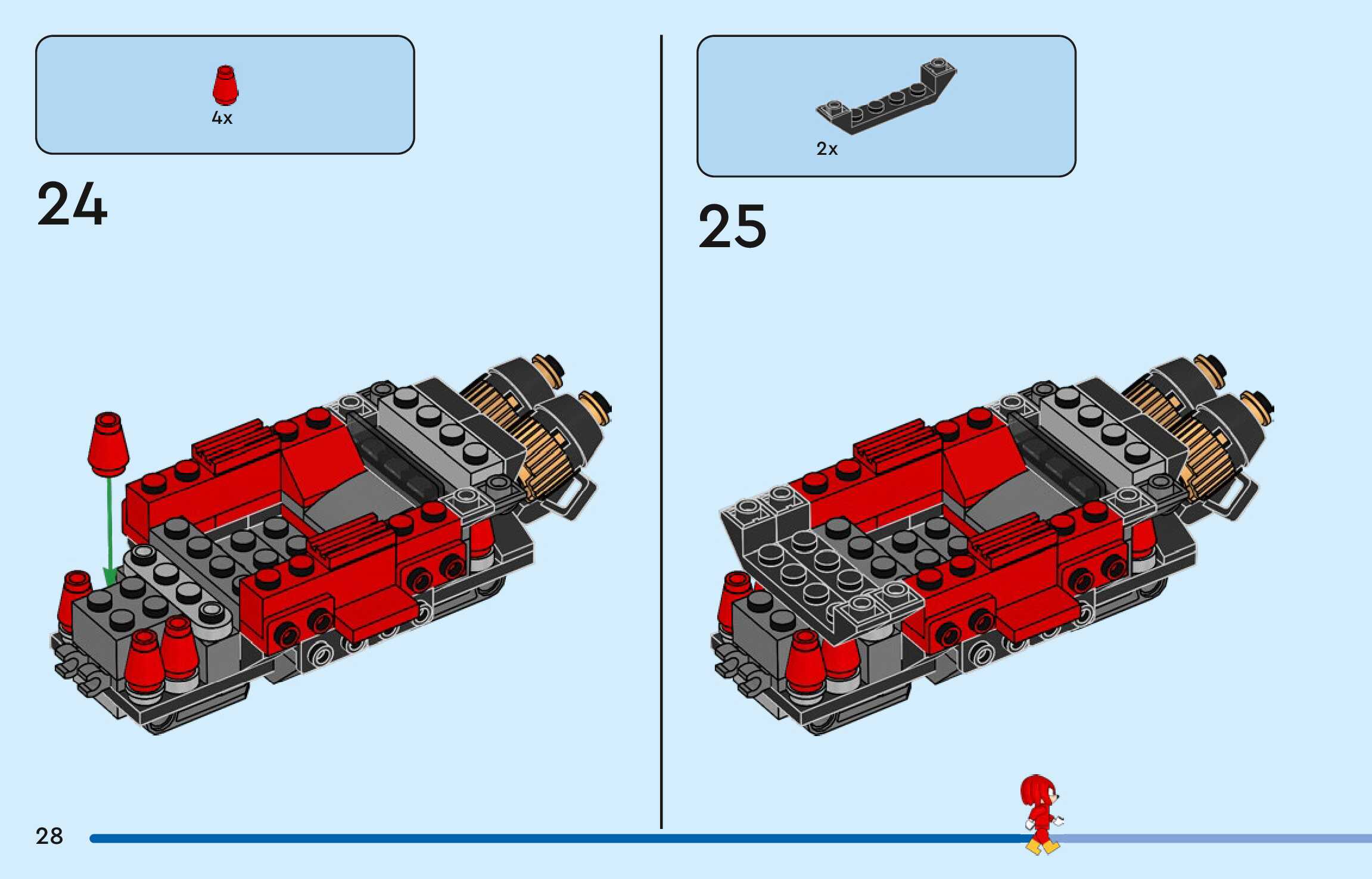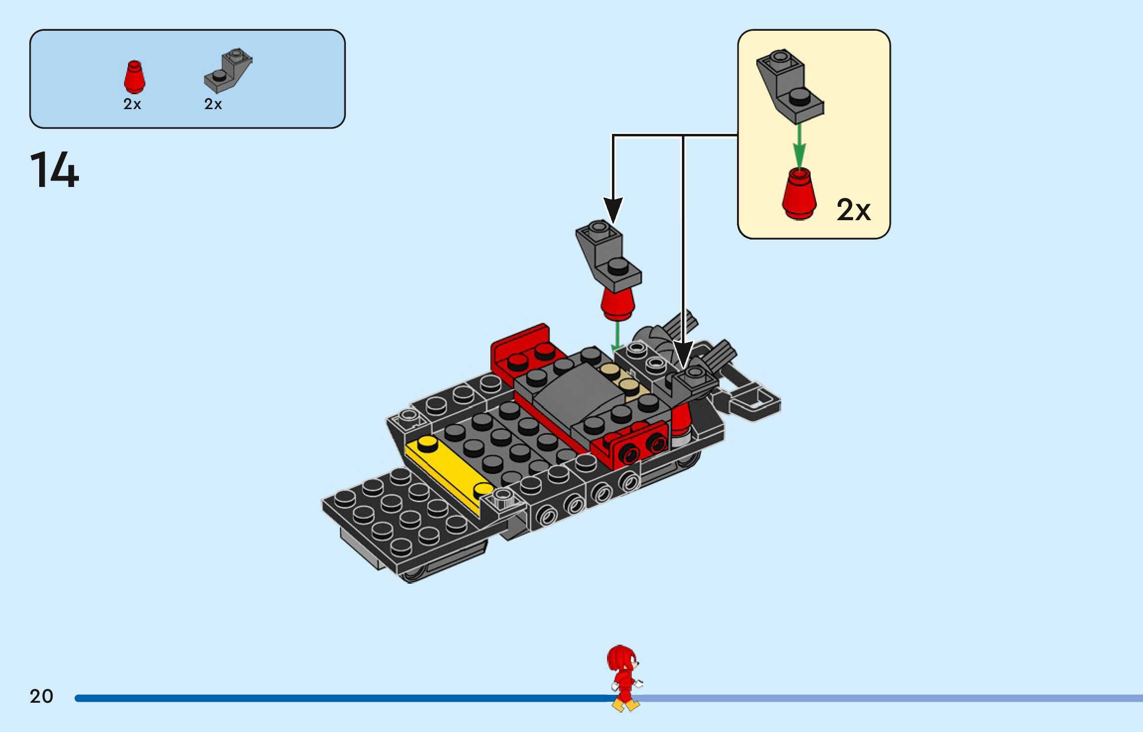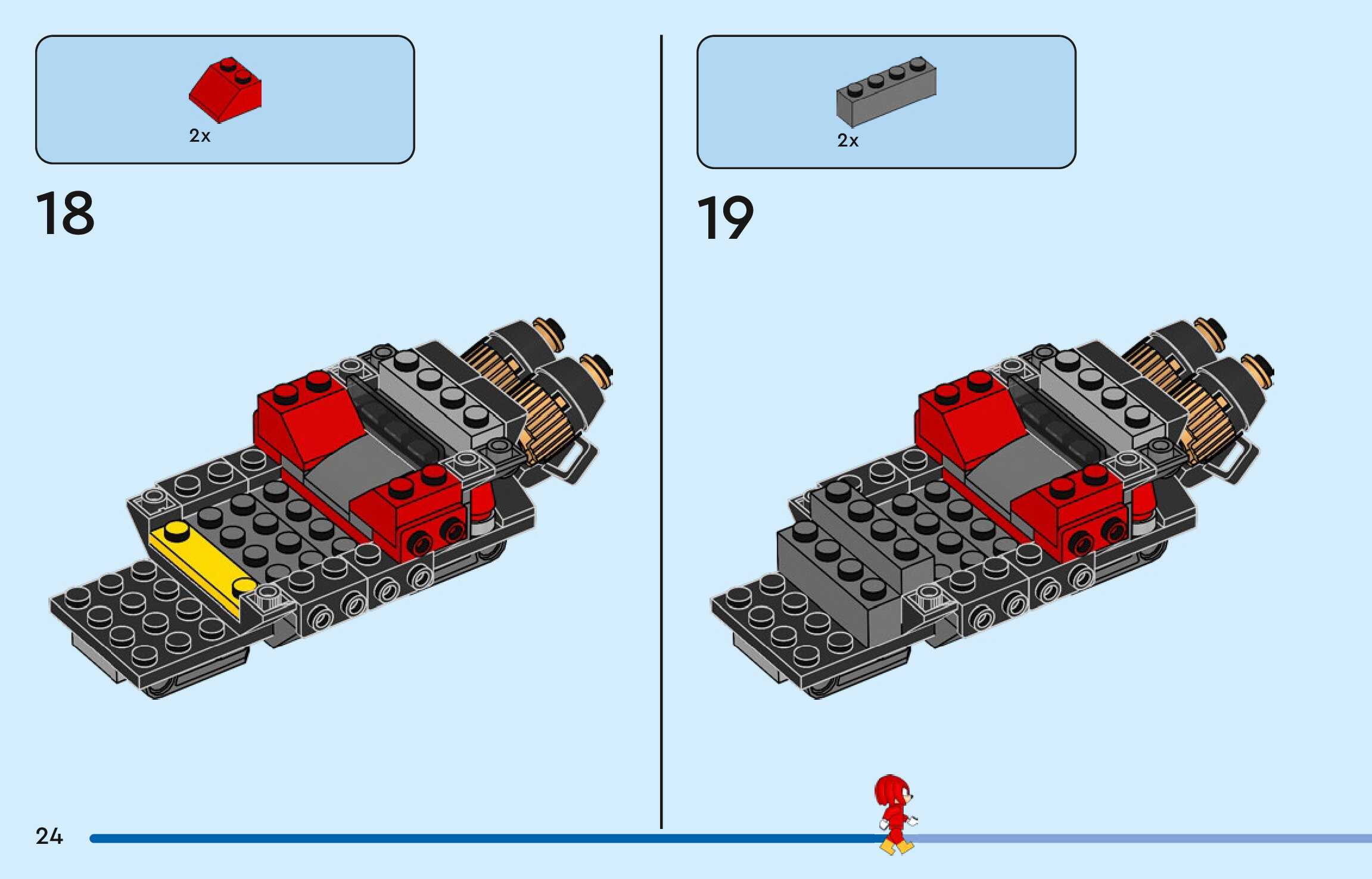 On this page you can find the original construction manual for the LEGO 77118 set. With the assembly manual you can easily learn how to build the Silver's car vs. Knuckles' Monster Truck step by step. The set was released in 2026.