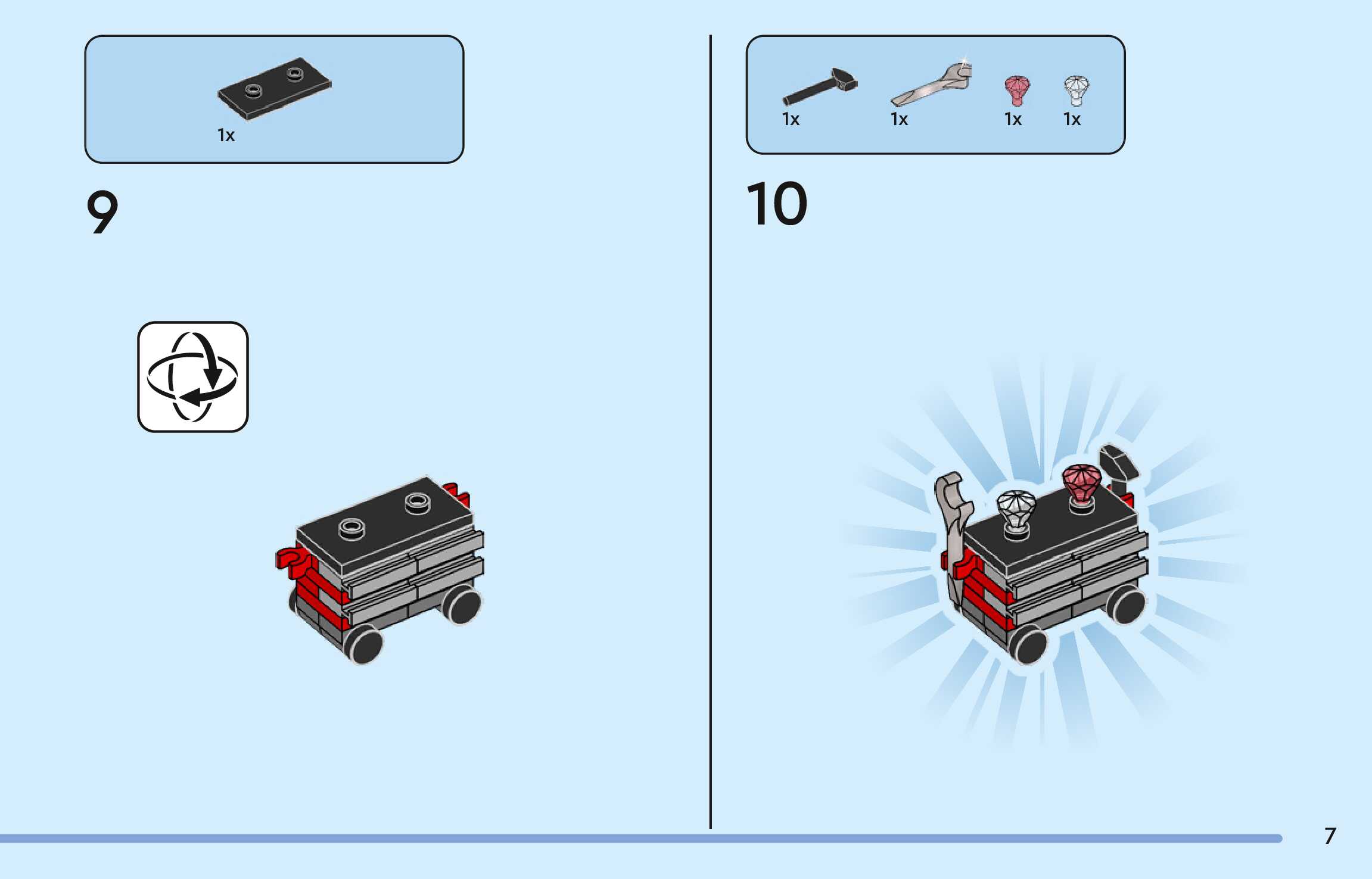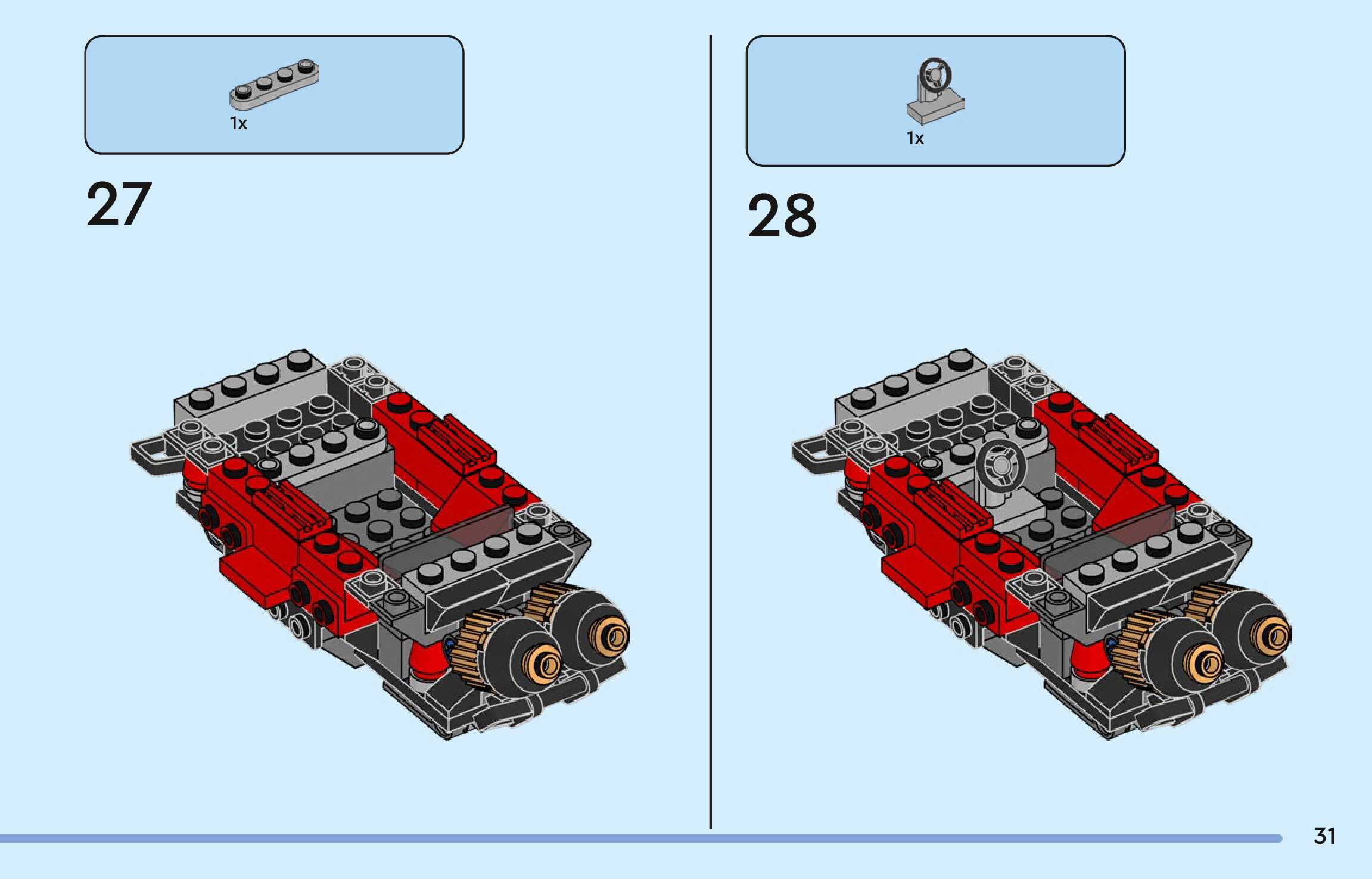 The assembly guide is prepared in a very understandable way for children and adult LEGO enthusiasts. A total of 124 picture galleries are shown, explaining the step-by-step construction stages for 2 different structures.