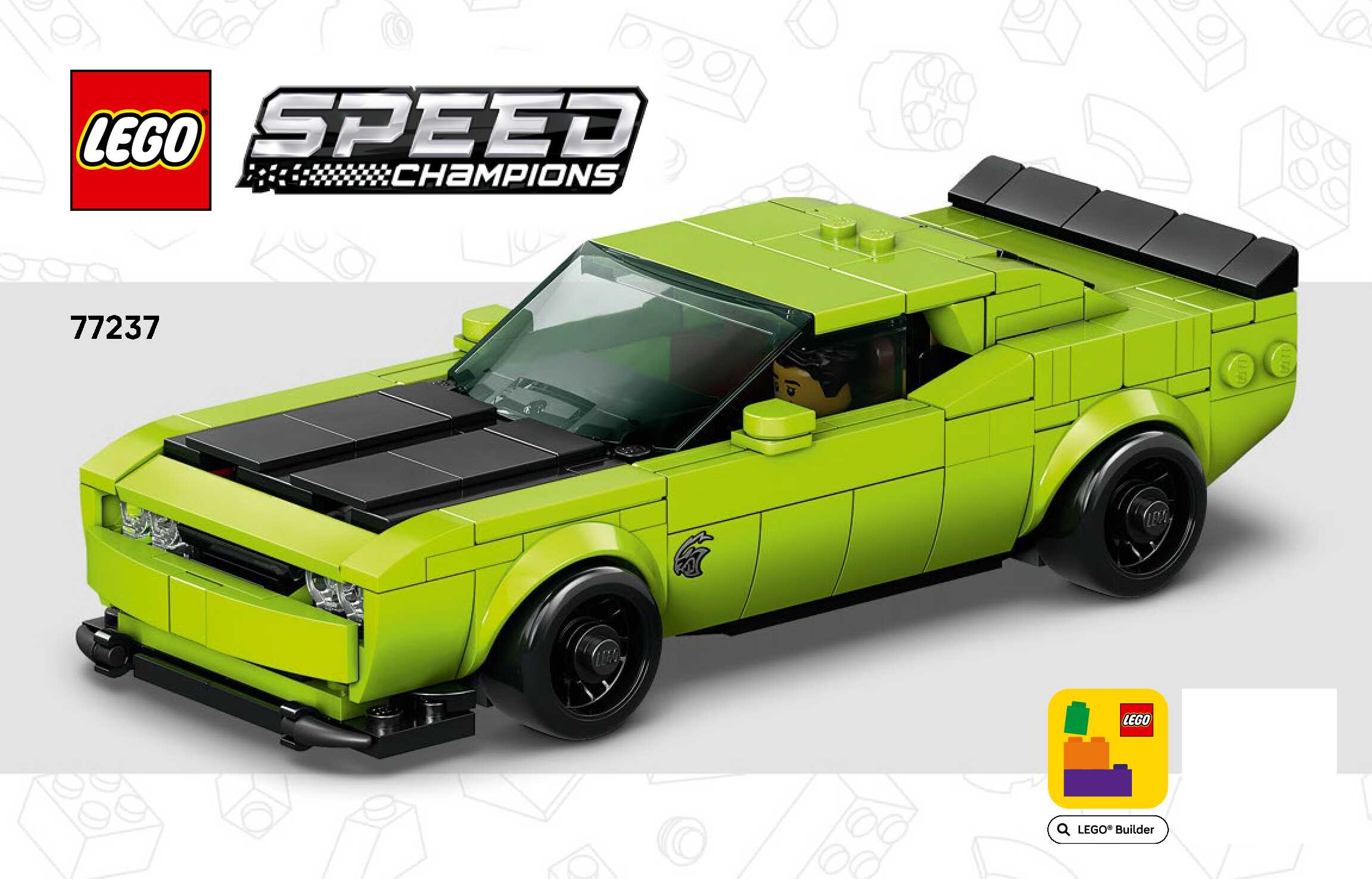 On this page you can find the original construction manual for the LEGO 77237 set. With the assembly manual you can easily learn how to build the Dodge Challenger SRT Hellcat Sports Car step by step. The set was released in 2025.