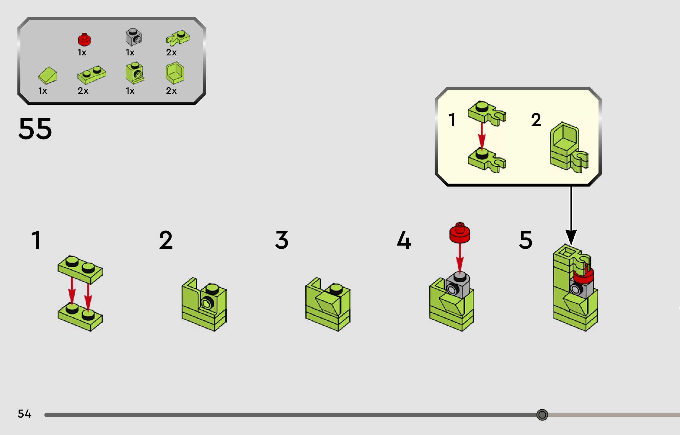 The assembly guide is prepared in a very understandable way for children and adult LEGO enthusiasts. A total of 128 picture galleries are shown, explaining the step-by-step construction stages for 1 different structures.