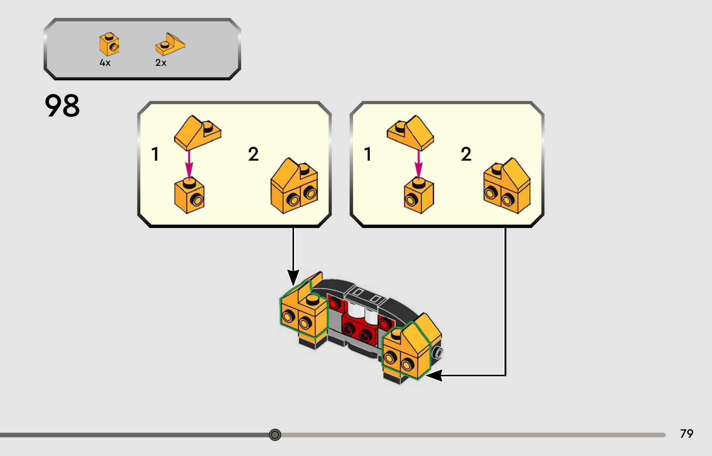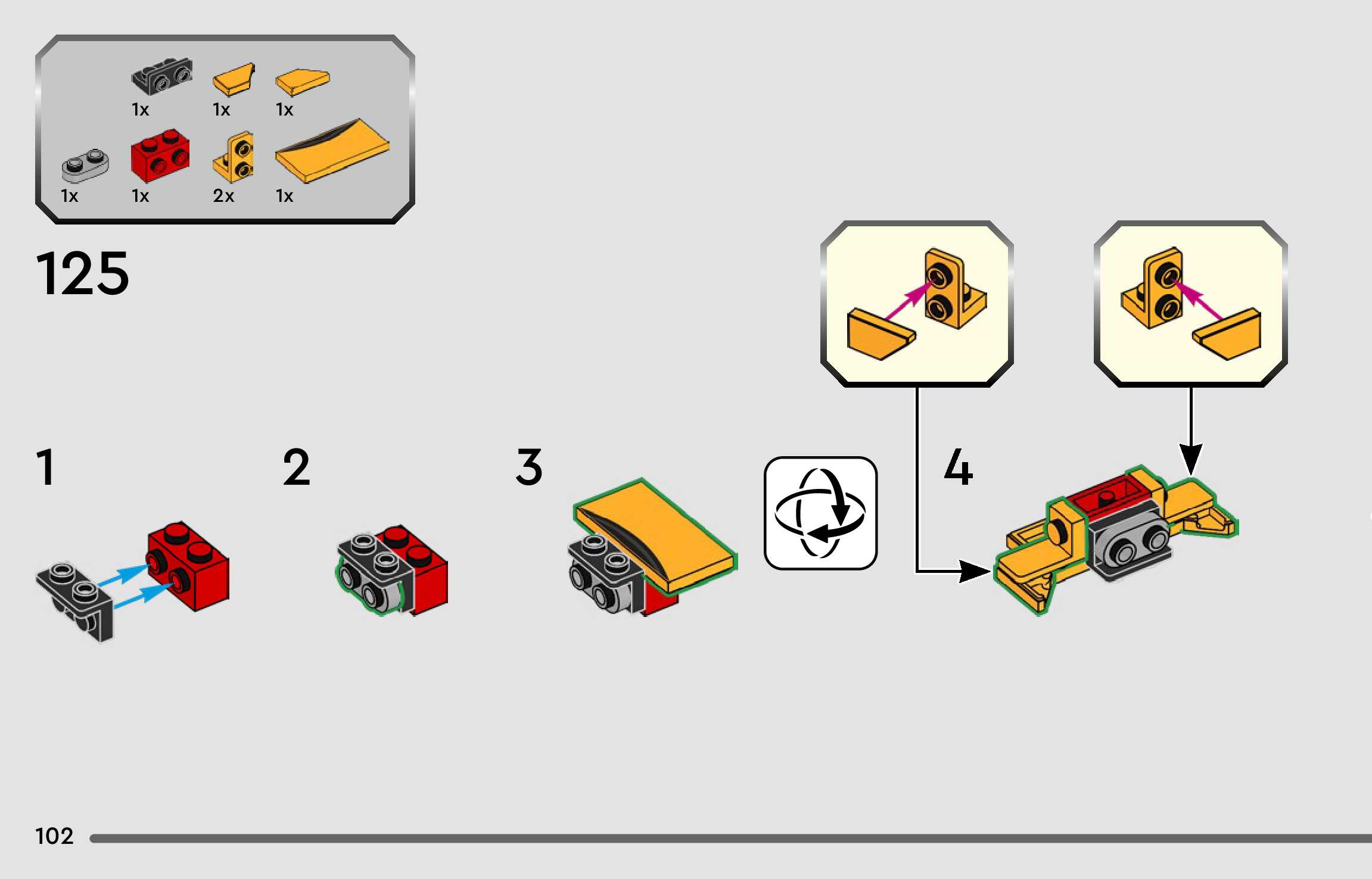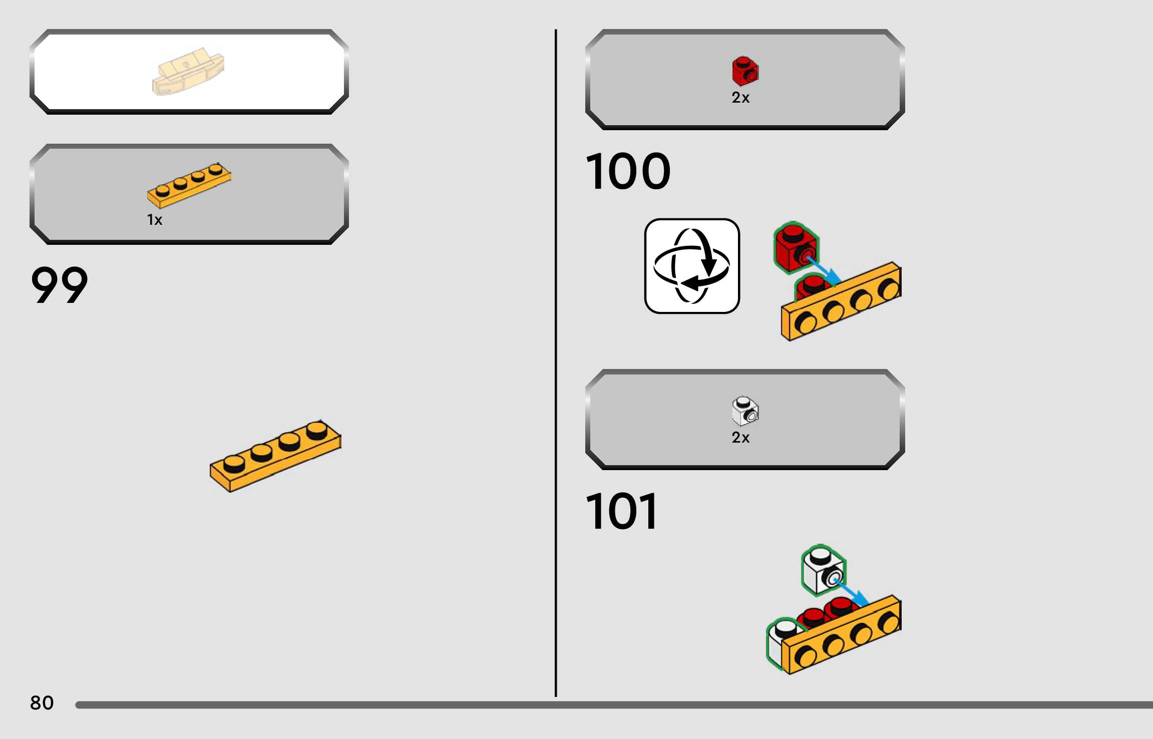 The assembly guide is prepared in a very understandable way for children and adult LEGO enthusiasts. A total of 116 picture galleries are shown, explaining the step-by-step construction stages for 1 different structures.