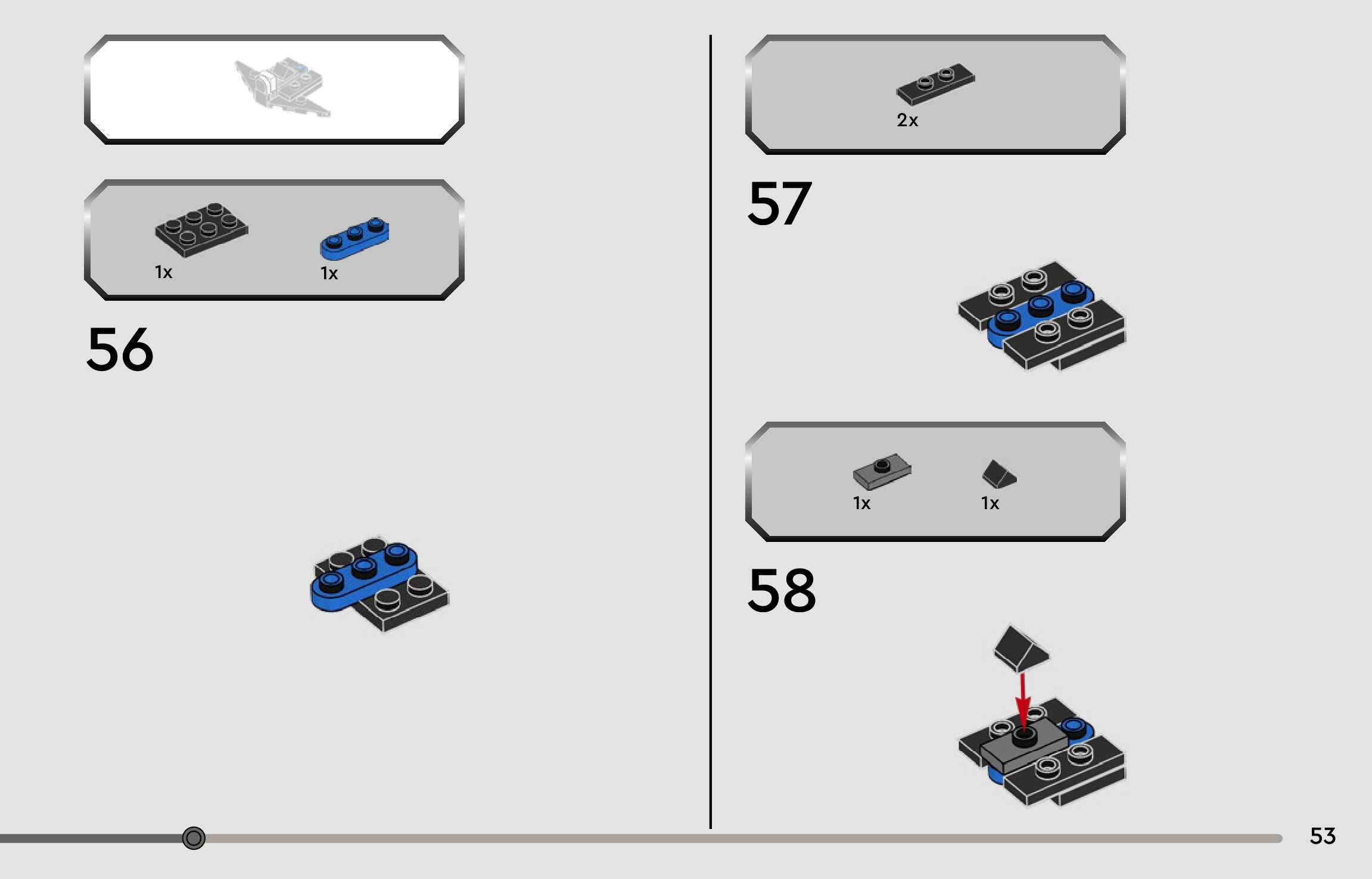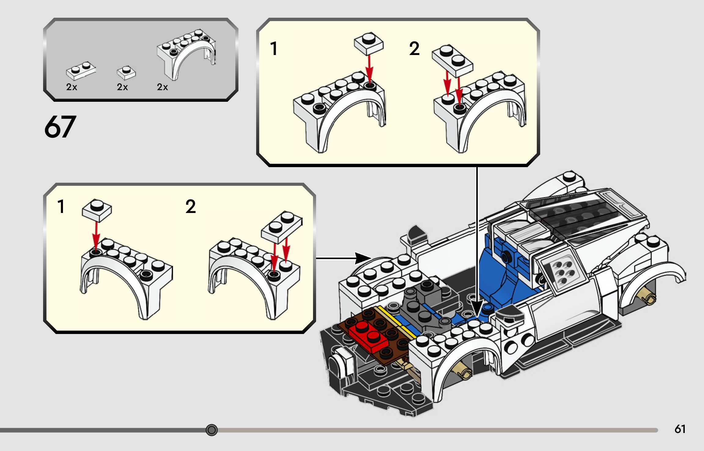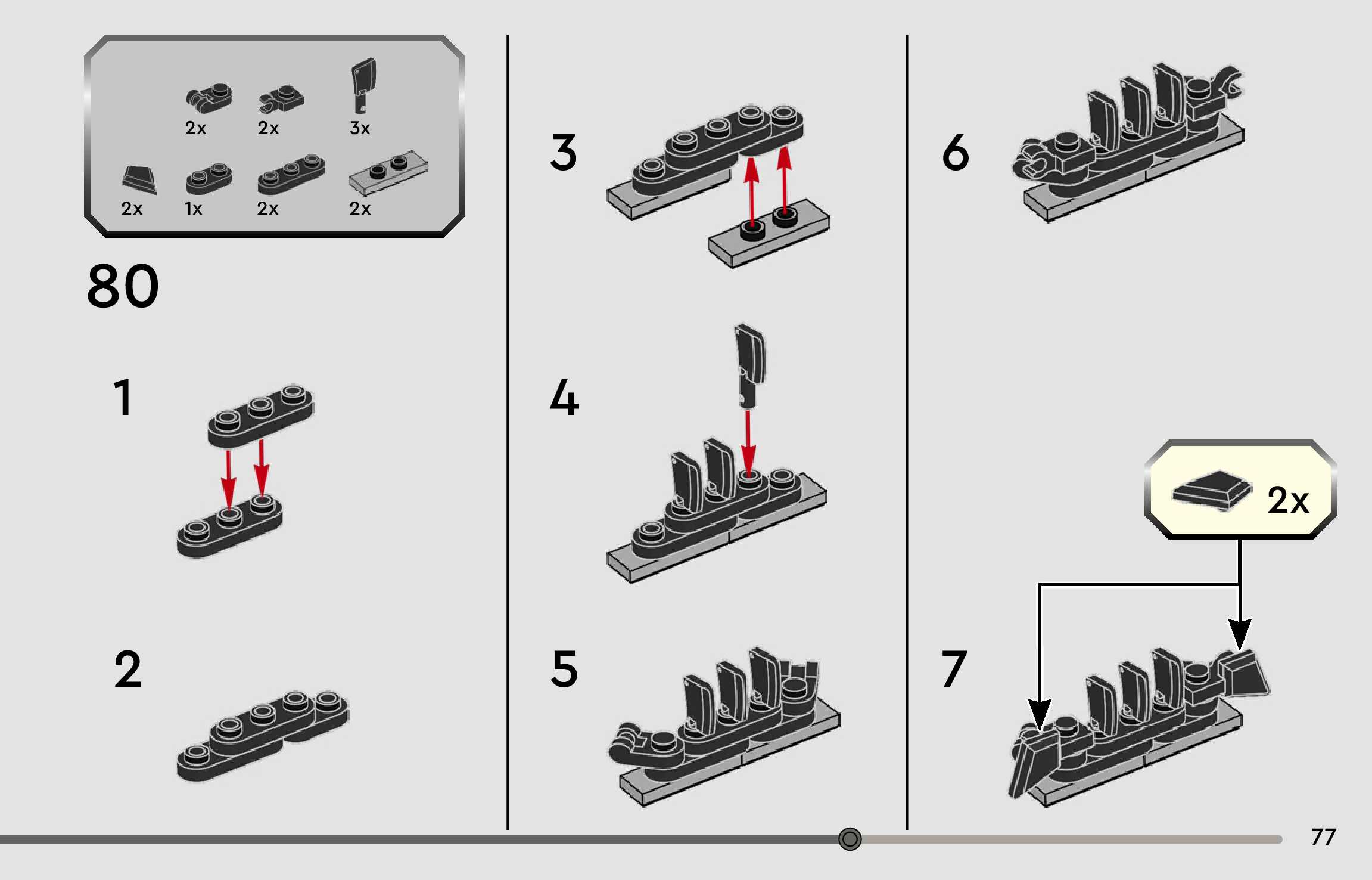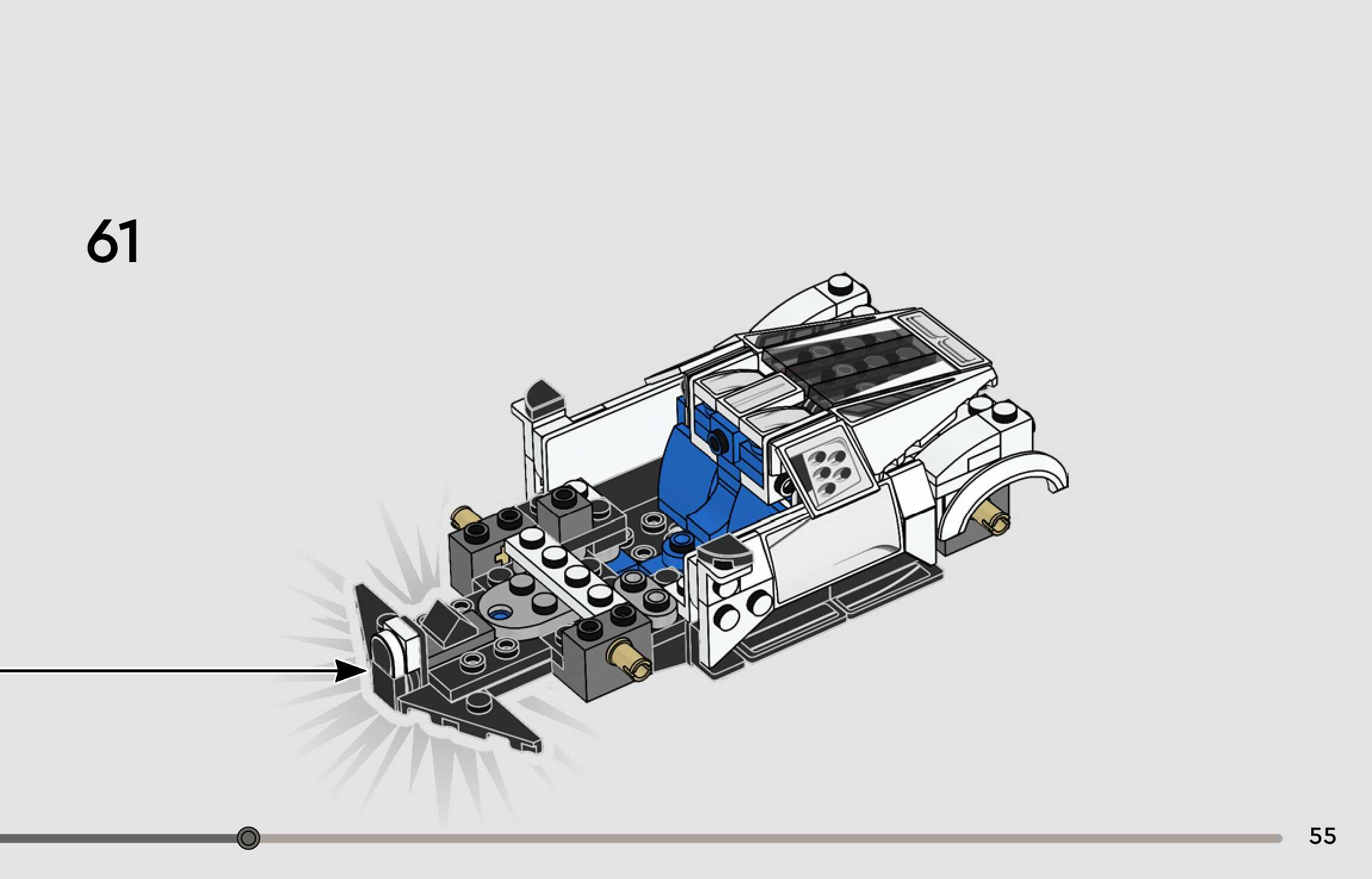 The assembly guide is prepared in a very understandable way for children and adult LEGO enthusiasts. A total of 96 picture galleries are shown, explaining the step-by-step construction stages for 1 different structures.
