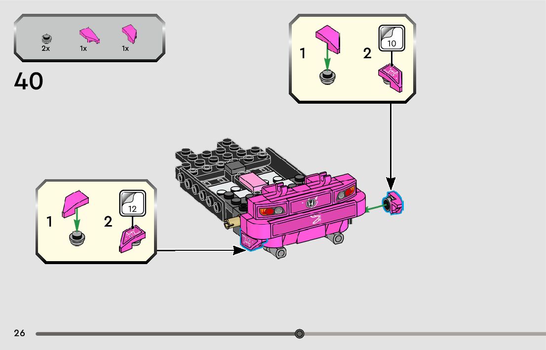 On this page you can find the original construction manual for the LEGO 77241 set. With the assembly manual you can easily learn how to build the 2 Fast 2 Furious Honda S2000 step by step. The set was released in 2025.