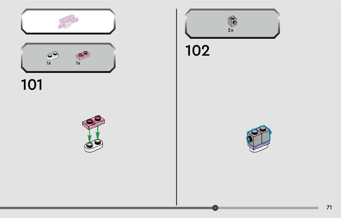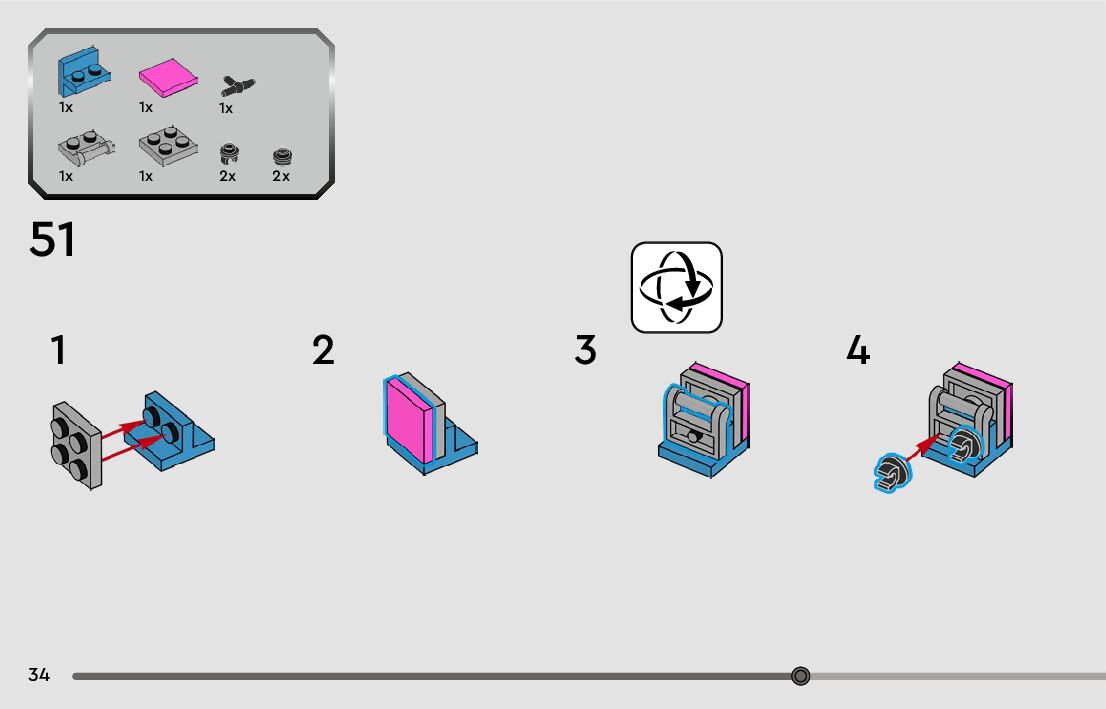 The assembly guide is prepared in a very understandable way for children and adult LEGO enthusiasts. A total of 88 picture galleries are shown, explaining the step-by-step construction stages for 1 different structures.