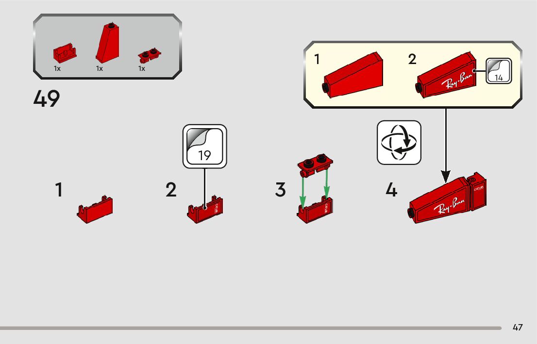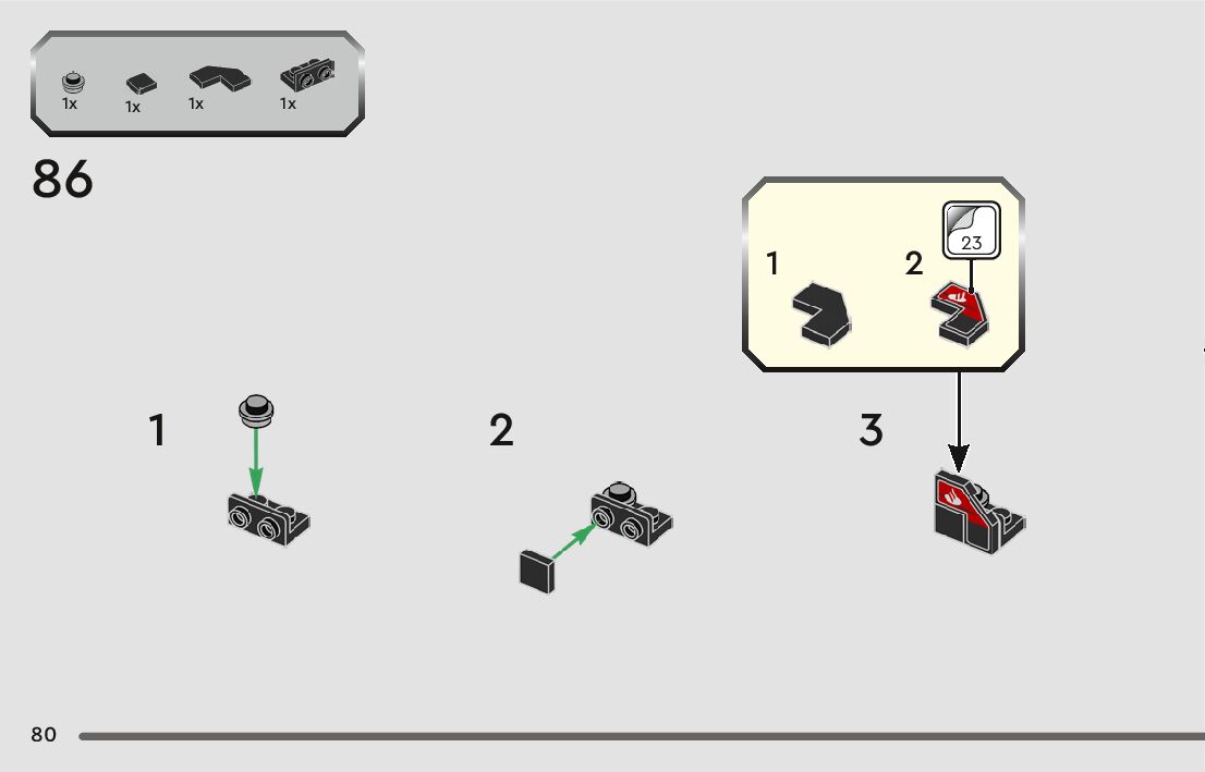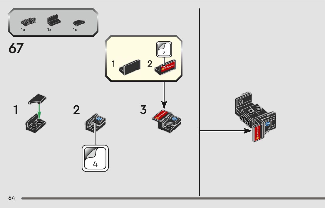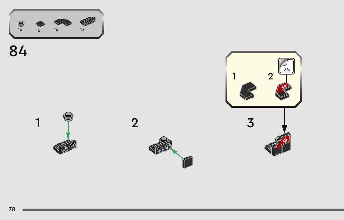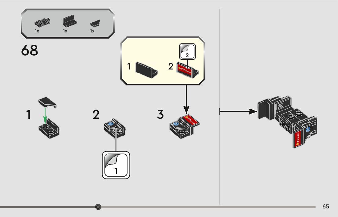 The assembly guide is prepared in a very understandable way for children and adult LEGO enthusiasts. A total of 104 picture galleries are shown, explaining the step-by-step construction stages for 1 different structures.