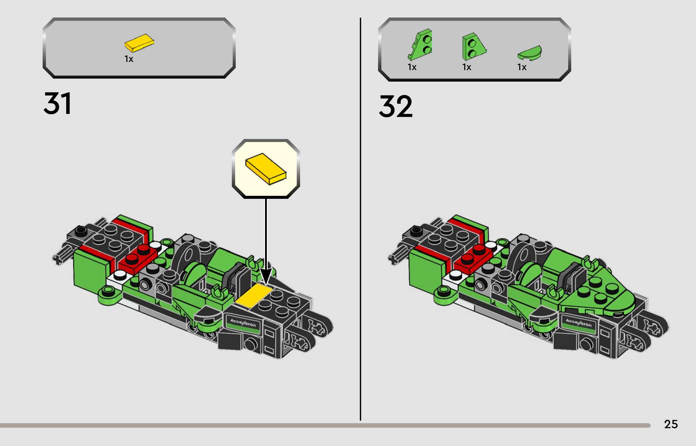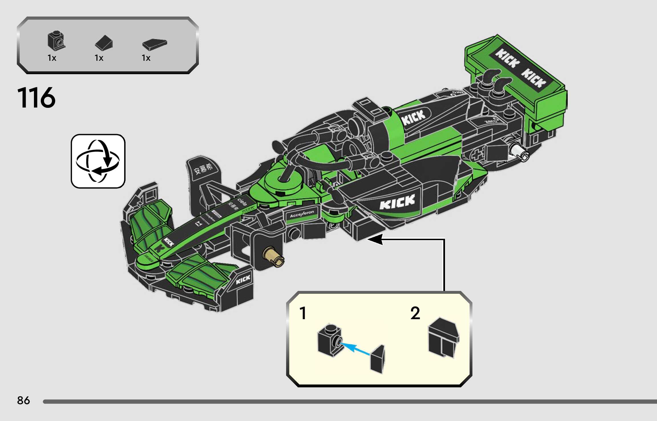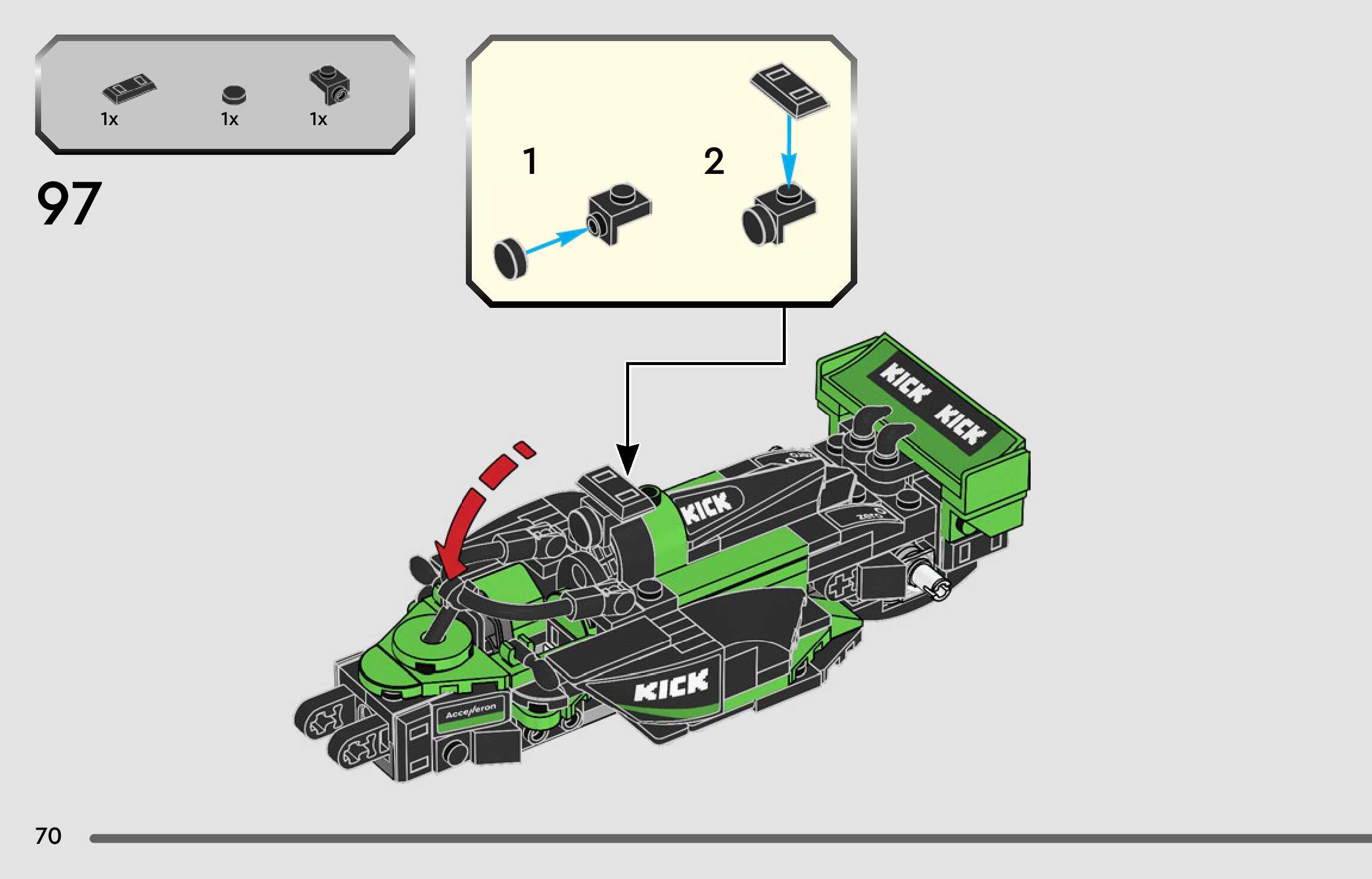 On this page you can find the original construction manual for the LEGO 77247 set. With the assembly manual you can easily learn how to build the KICK Sauber F1® Team C44 Race Car step by step. The set was released in 2025.