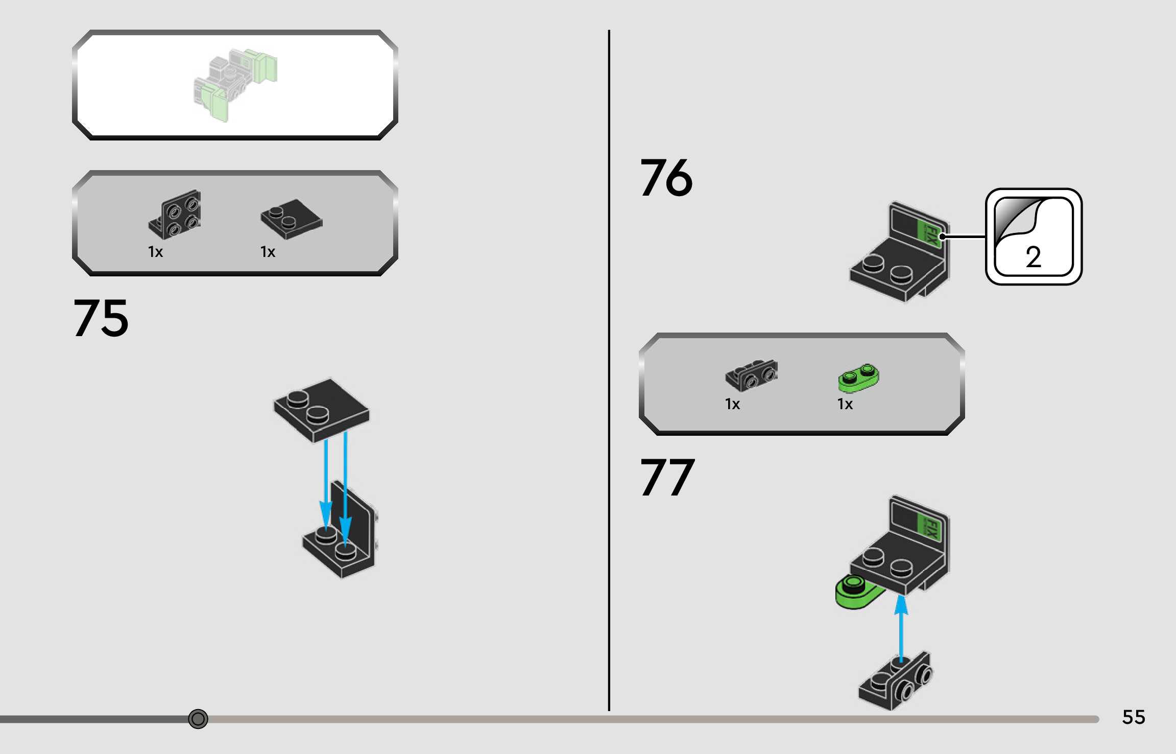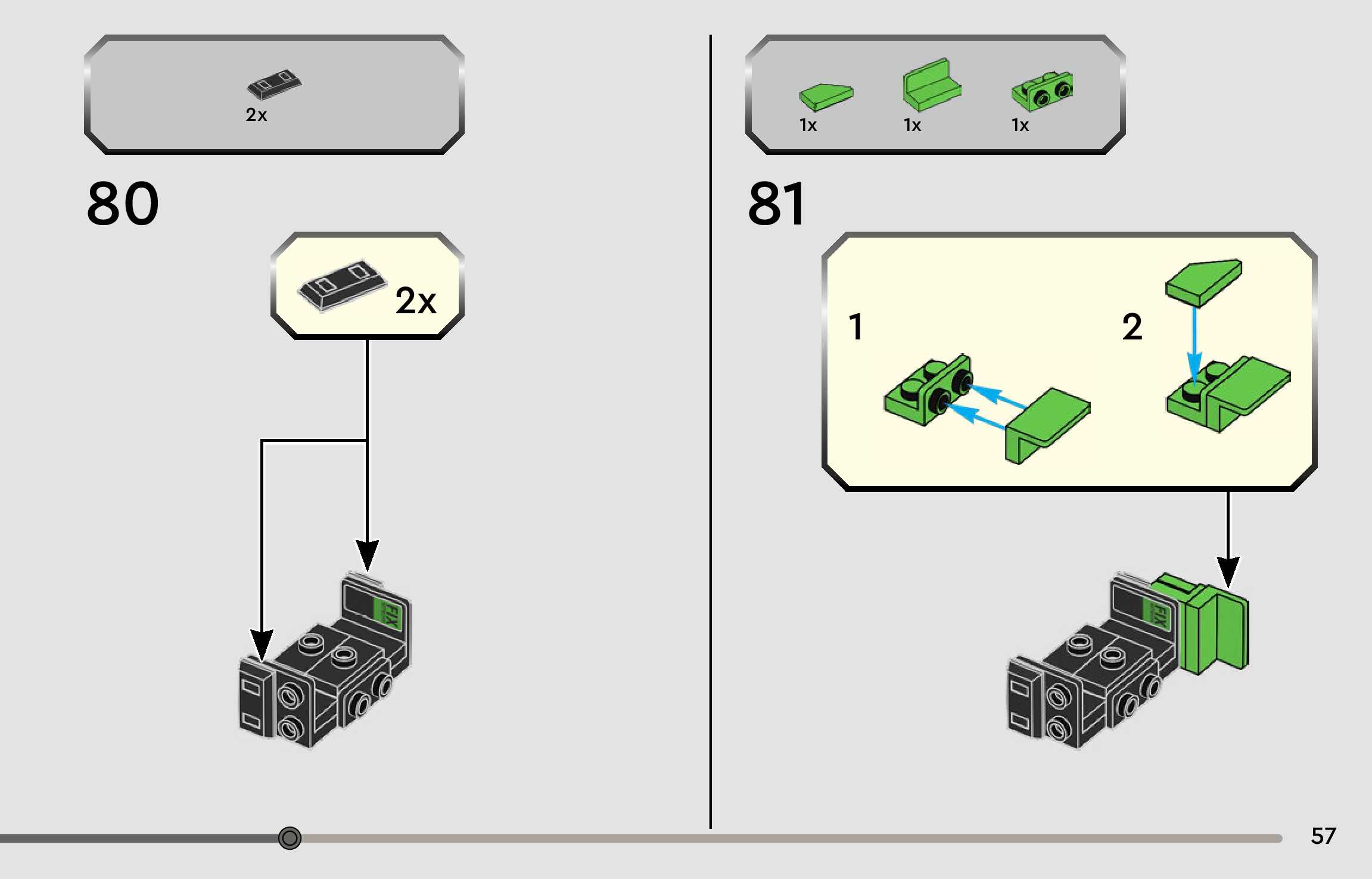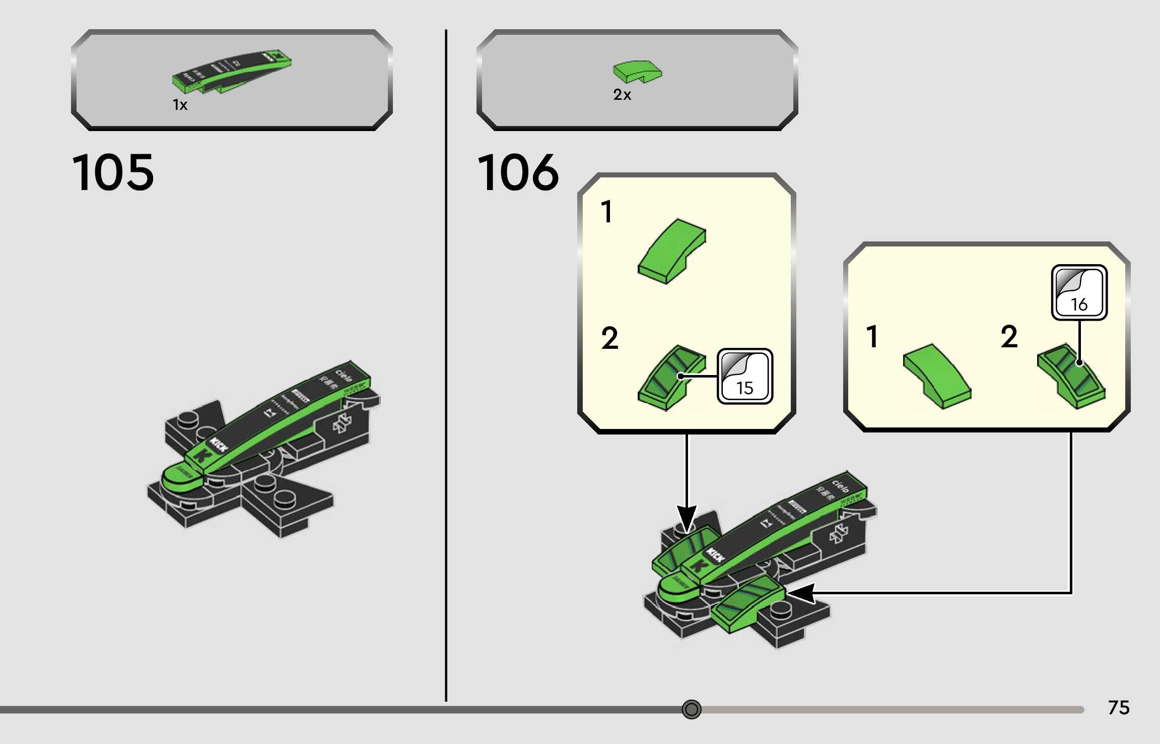The assembly guide is prepared in a very understandable way for children and adult LEGO enthusiasts. A total of 96 picture galleries are shown, explaining the step-by-step construction stages for 1 different structures.