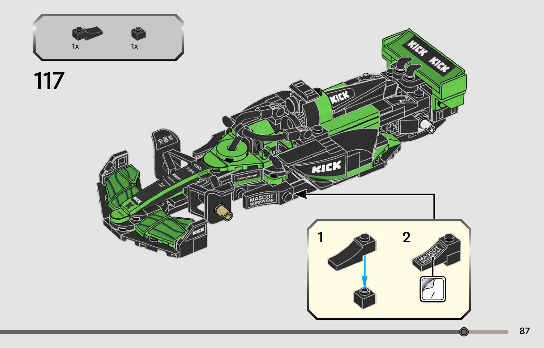 This page shares information about LEGO KICK Sauber F1® Team C44 Race Car manual, LEGO 77247 PDF instructions, LEGO KICK Sauber F1® Team C44 Race Car building guide online, How to build KICK Sauber F1® Team C44 Race Car LEGO.