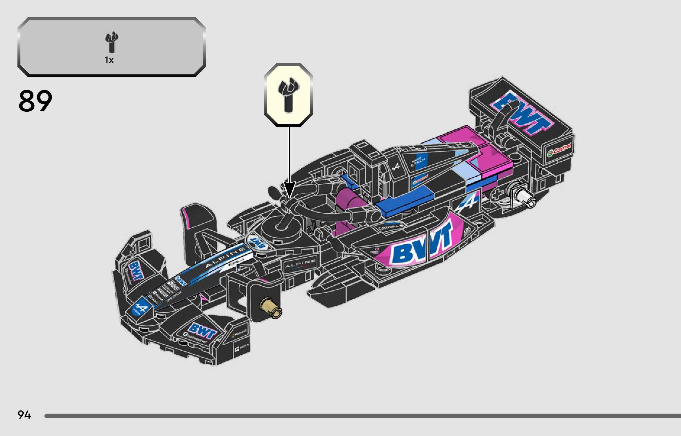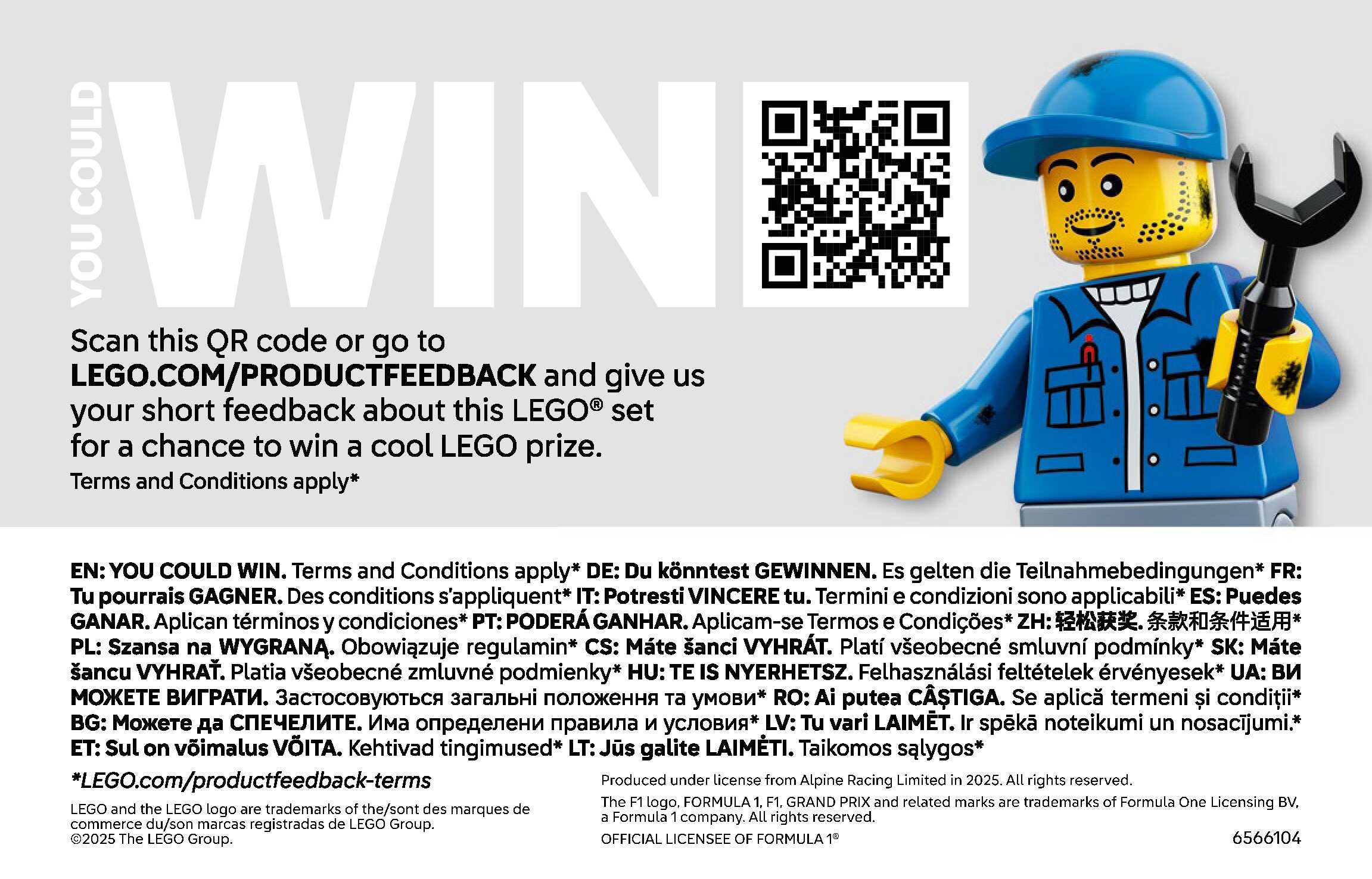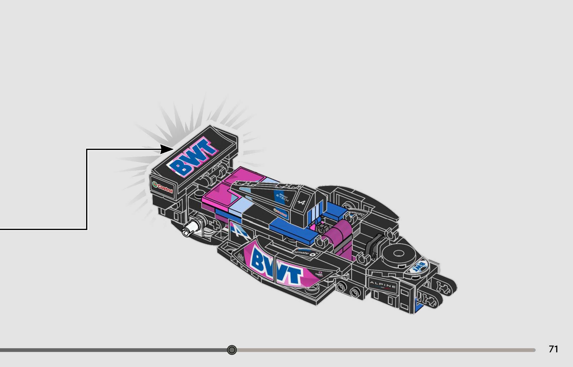 On this page you can find the original construction manual for the LEGO 77248 set. With the assembly manual you can easily learn how to build the BWT Alpine F1® Team A524 Race Car step by step. The set was released in 2025.