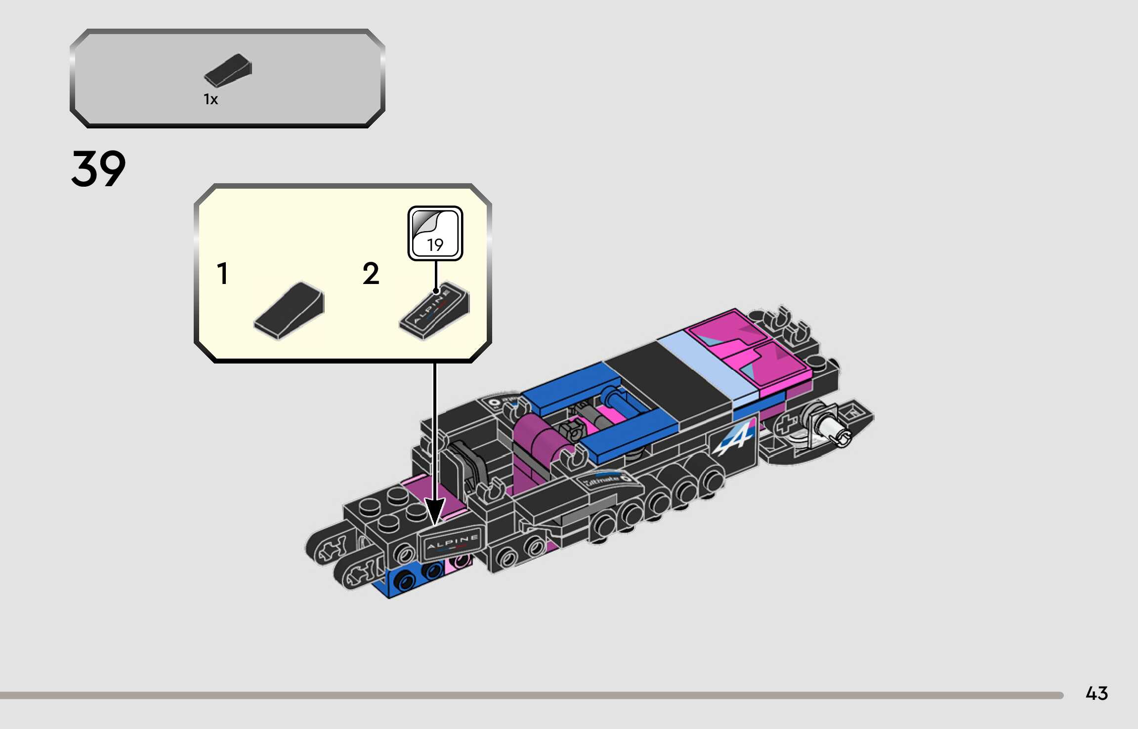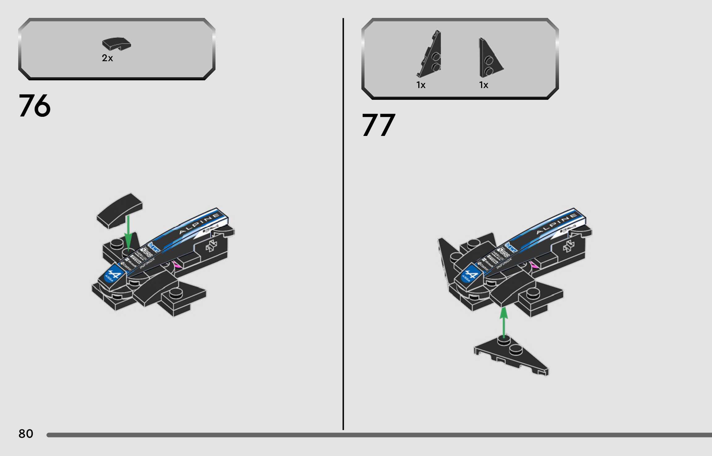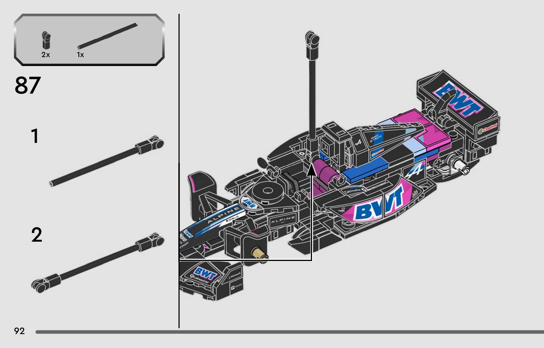 On this page you can find the original construction manual for the LEGO 77248 set. With the assembly manual you can easily learn how to build the BWT Alpine F1® Team A524 Race Car step by step. The set was released in 2025.