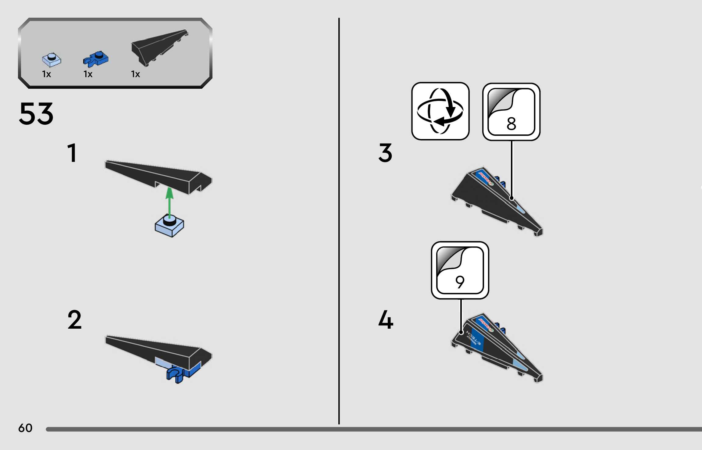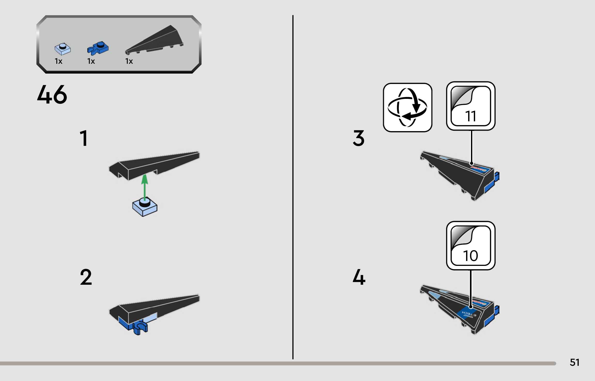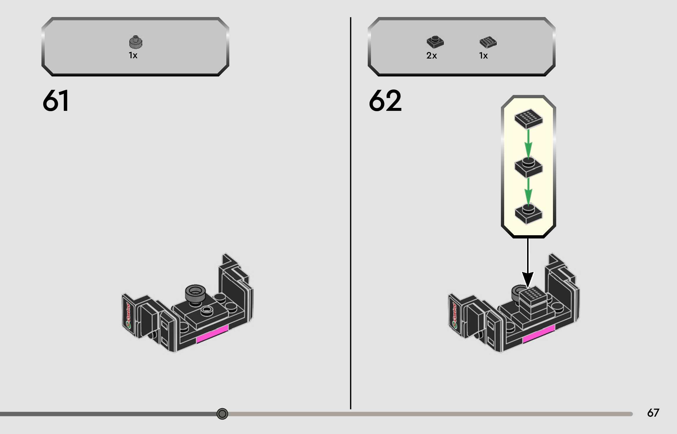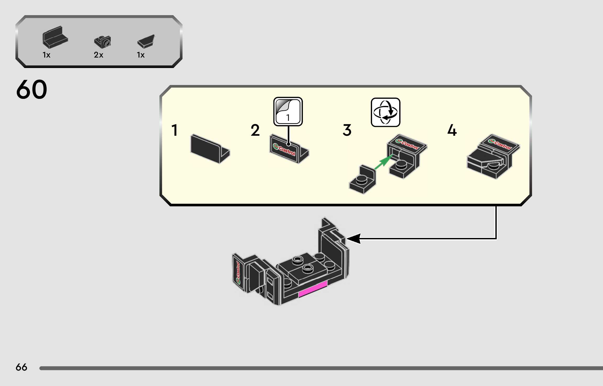The assembly guide is prepared in a very understandable way for children and adult LEGO enthusiasts. A total of 104 picture galleries are shown, explaining the step-by-step construction stages for 1 different structures.