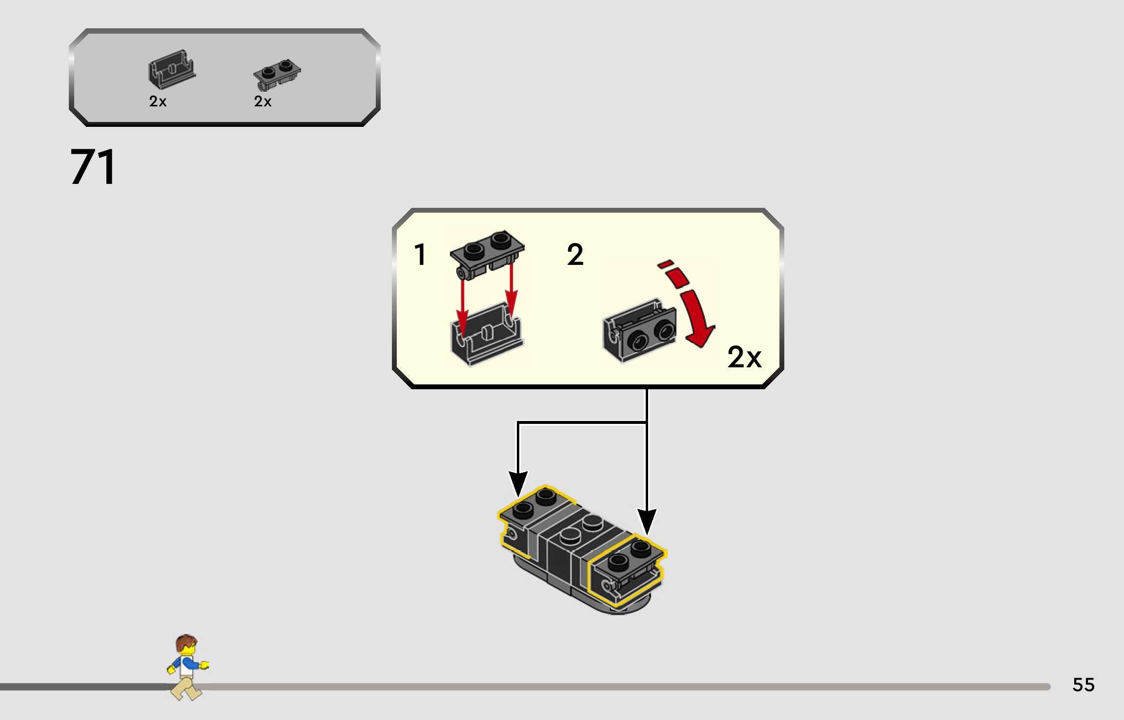 The assembly guide is prepared in a very understandable way for children and adult LEGO enthusiasts. A total of 96 picture galleries are shown, explaining the step-by-step construction stages for 1 different structures.