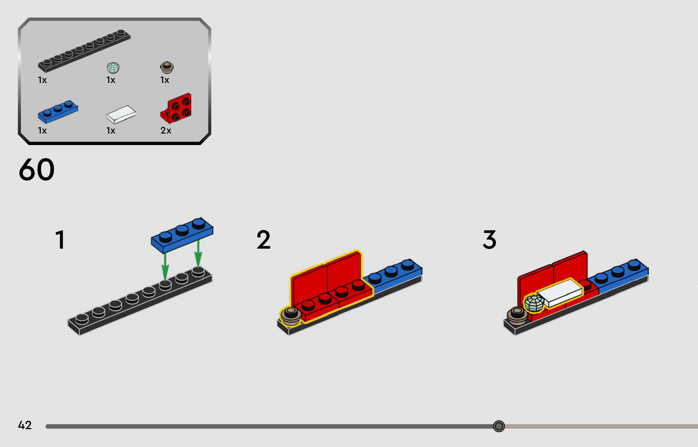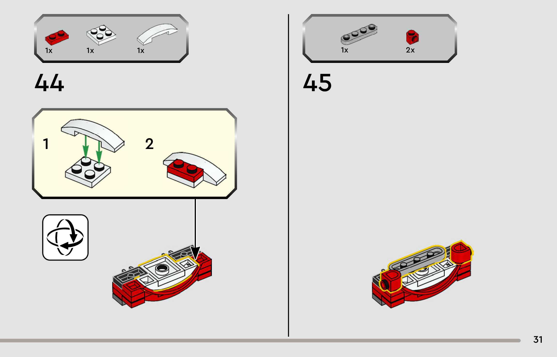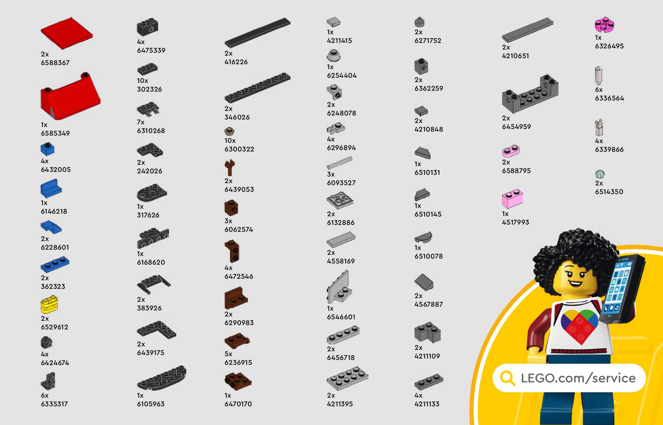 The assembly guide is prepared in a very understandable way for children and adult LEGO enthusiasts. A total of 104 picture galleries are shown, explaining the step-by-step construction stages for 1 different structures.