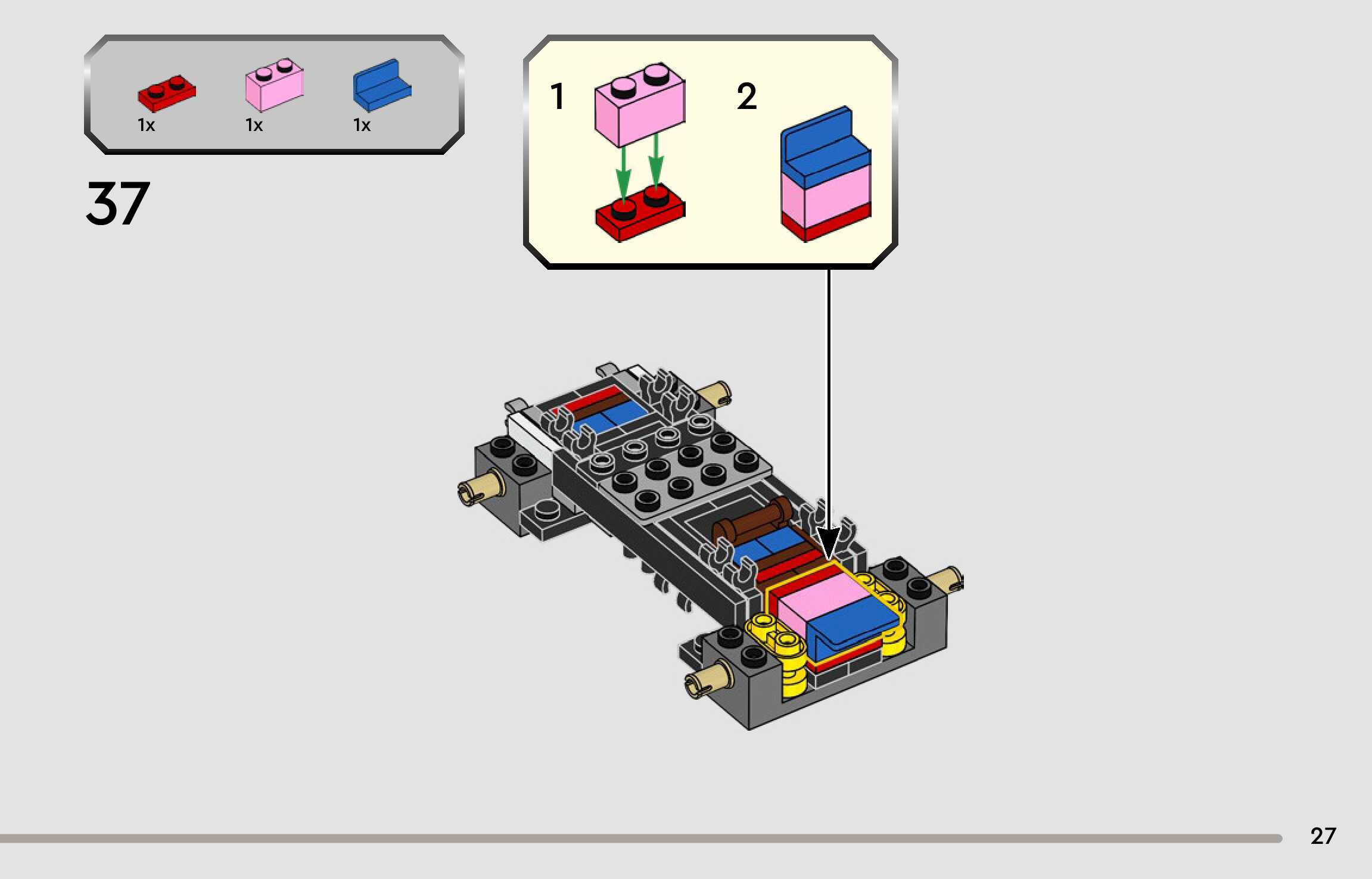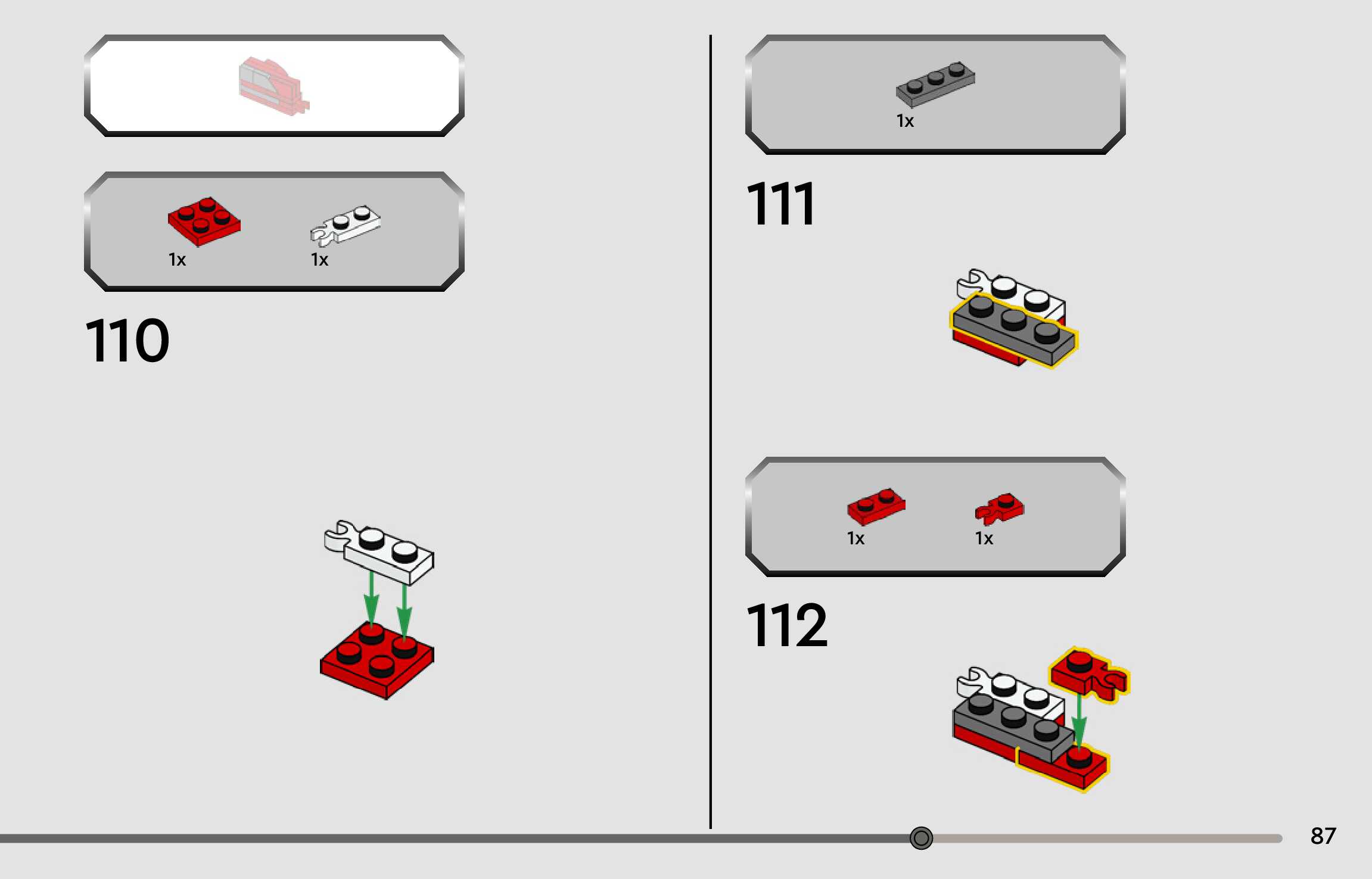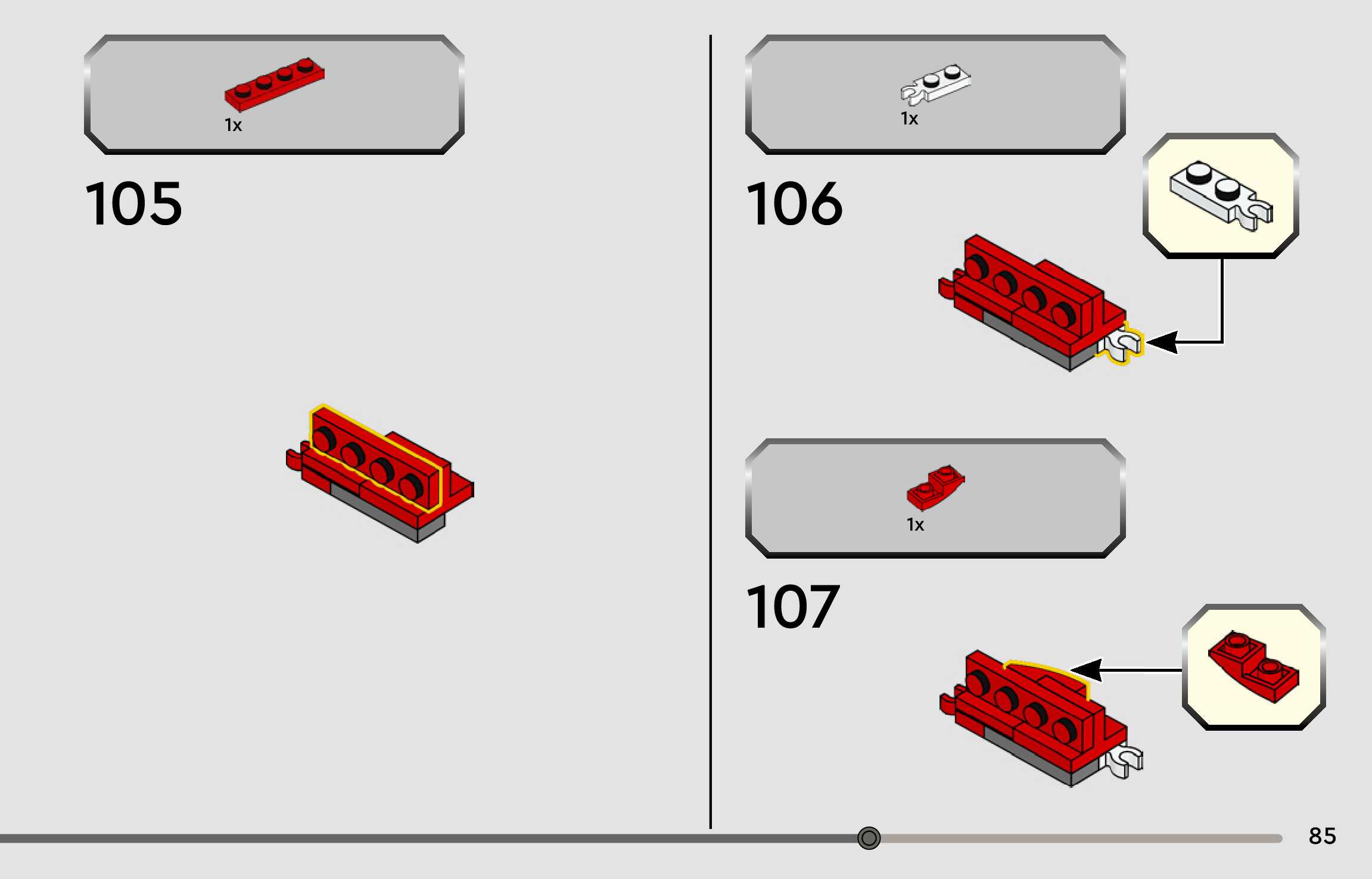 The assembly guide is prepared in a very understandable way for children and adult LEGO enthusiasts. A total of 104 picture galleries are shown, explaining the step-by-step construction stages for 1 different structures.