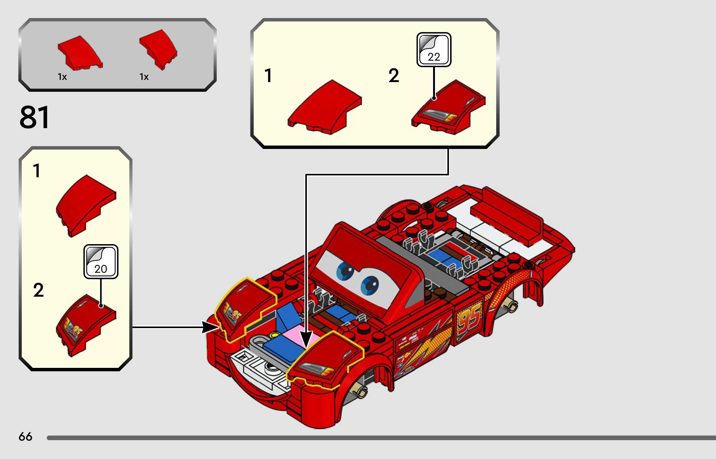 This page shares information about LEGO Lightning McQueen manual, LEGO 77255 PDF instructions, LEGO Lightning McQueen building guide online, How to build Lightning McQueen LEGO.
