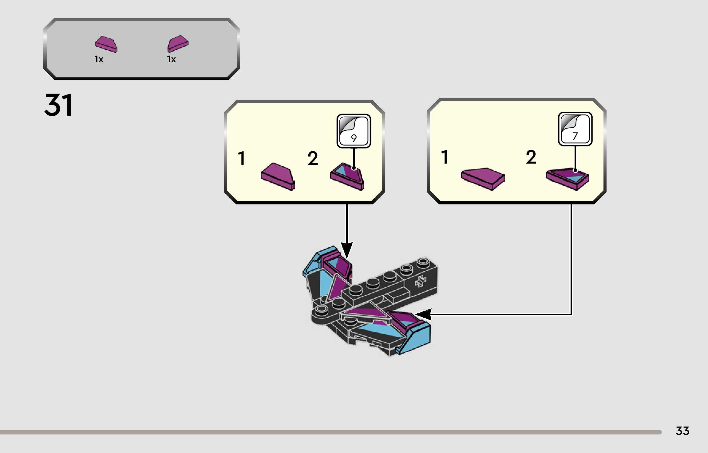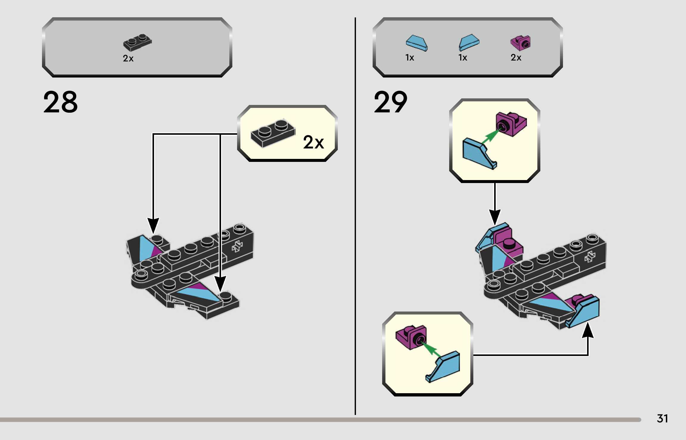 The assembly guide is prepared in a very understandable way for children and adult LEGO enthusiasts. A total of 80 picture galleries are shown, explaining the step-by-step construction stages for 1 different structures.