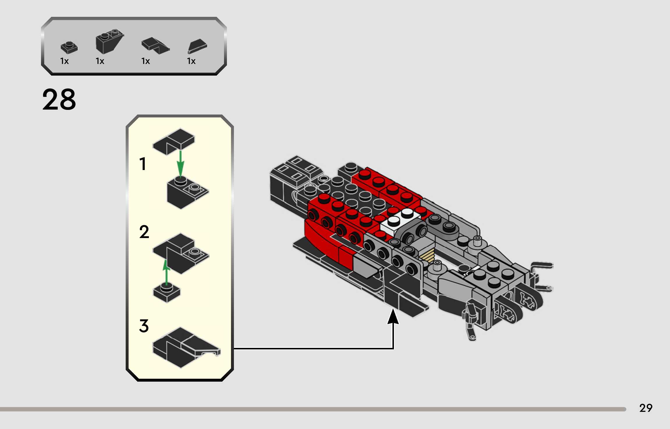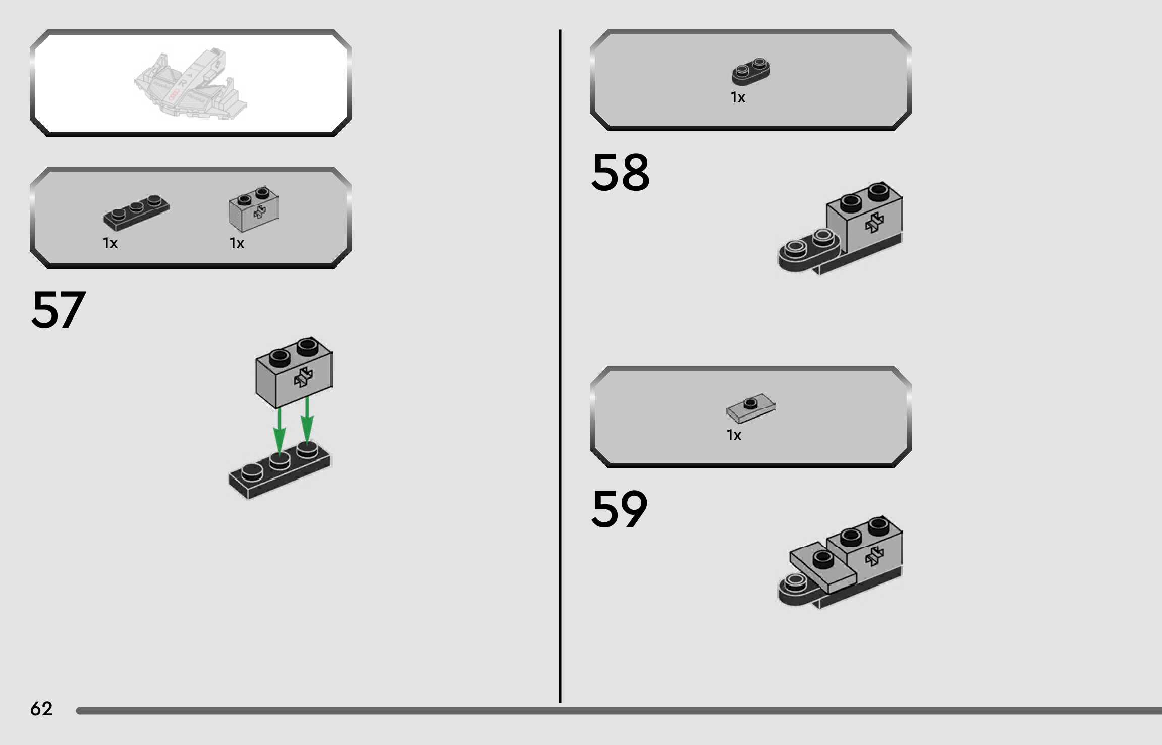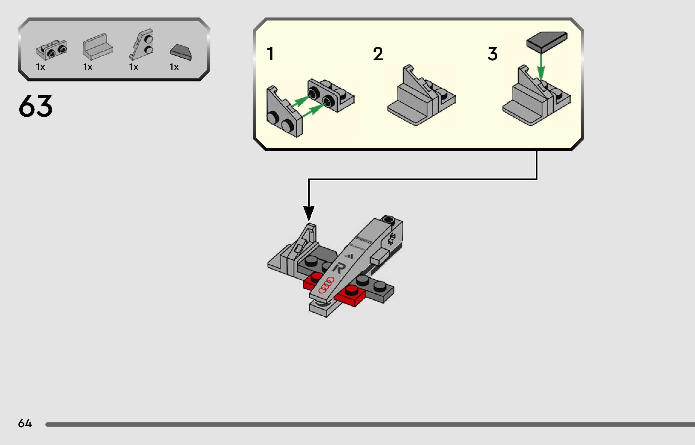 The assembly guide is prepared in a very understandable way for children and adult LEGO enthusiasts. A total of 88 picture galleries are shown, explaining the step-by-step construction stages for 1 different structures.