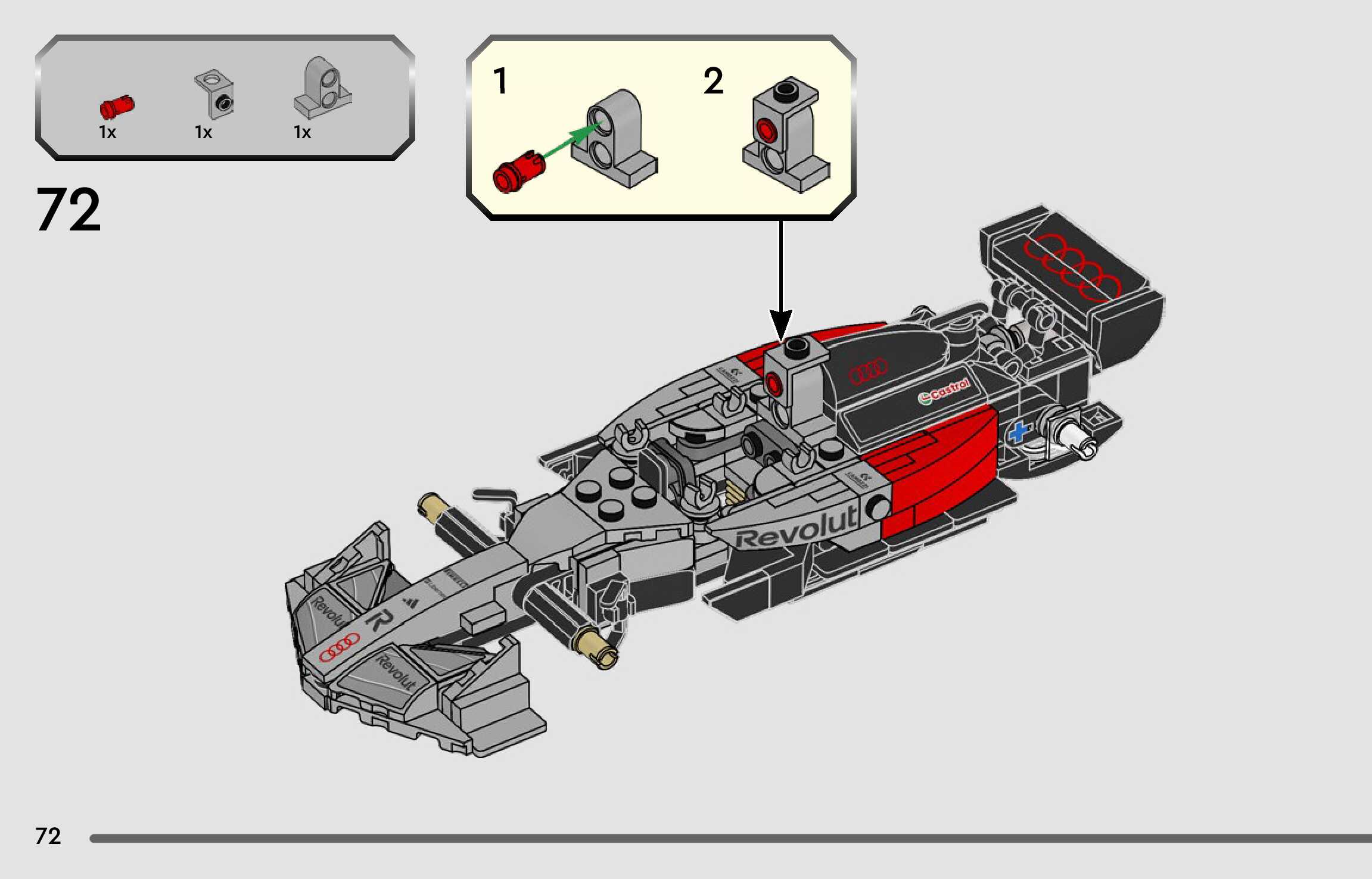 This page shares information about LEGO Audi Revolut F1® Team R26 Race Car manual, LEGO 77259 PDF instructions, LEGO Audi Revolut F1® Team R26 Race Car building guide online, How to build Audi Revolut F1® Team R26 Race Car LEGO.
