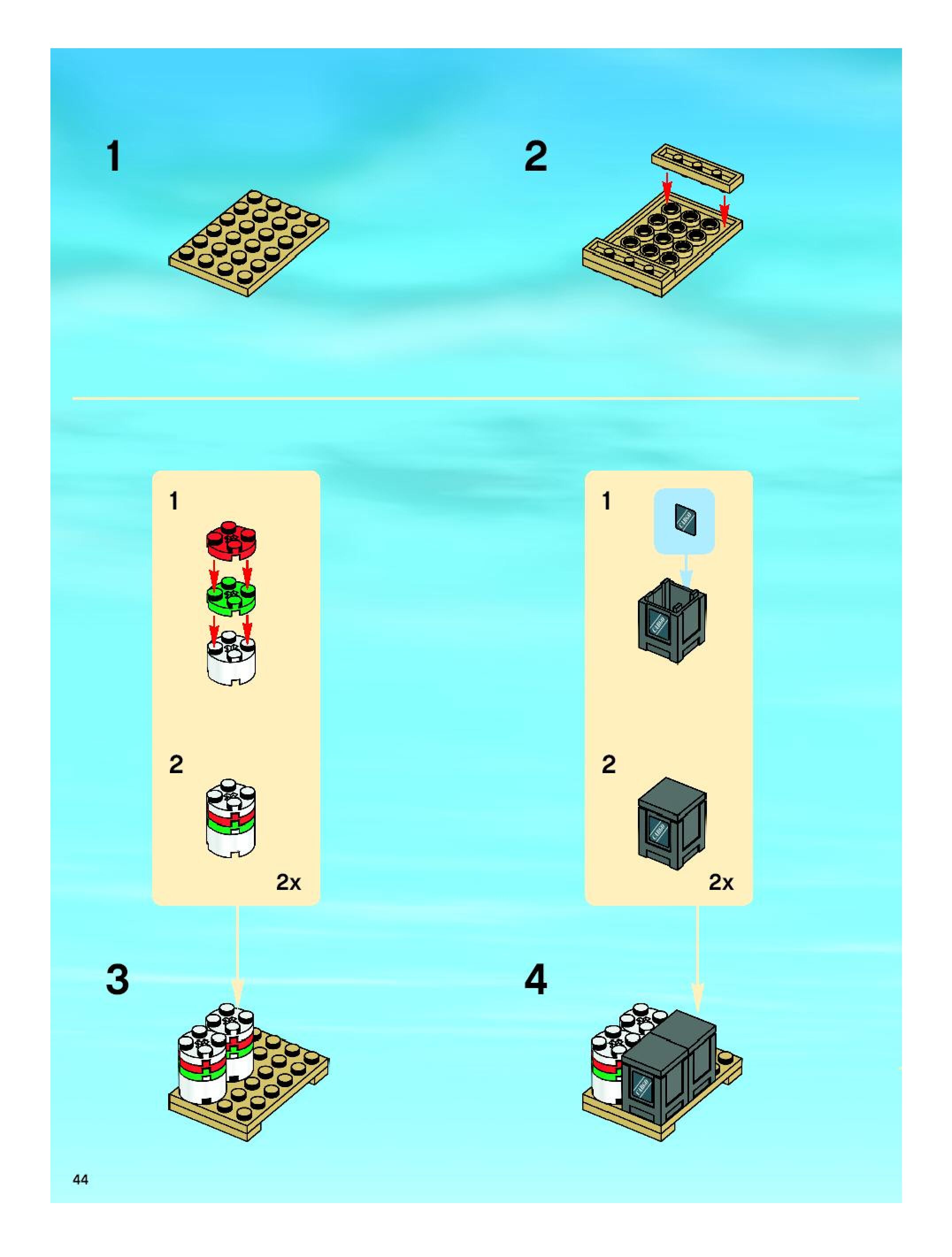The assembly guide is prepared in a very understandable way for children and adult LEGO enthusiasts. A total of 96 picture galleries are shown, explaining the step-by-step construction stages for 2 different structures.