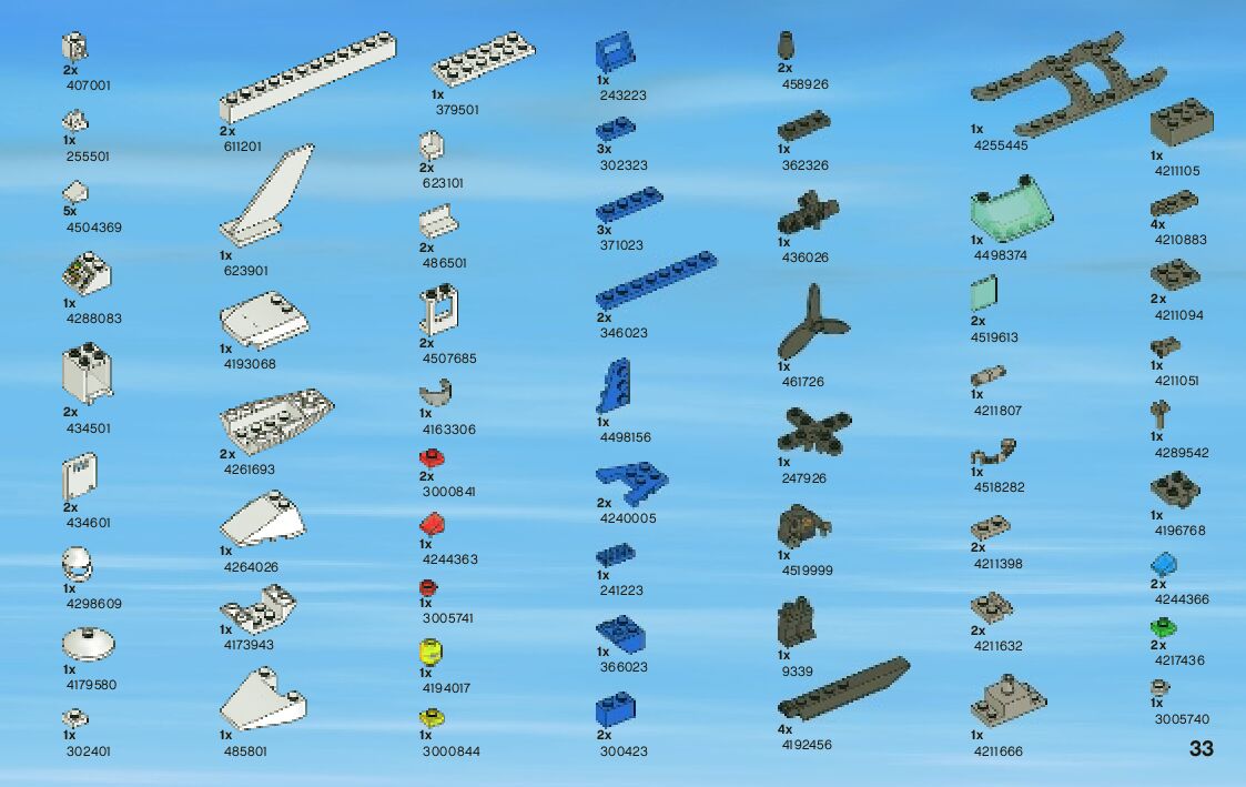 The assembly guide is prepared in a very understandable way for children and adult LEGO enthusiasts. A total of 40 picture galleries are shown, explaining the step-by-step construction stages for 1 different structures.