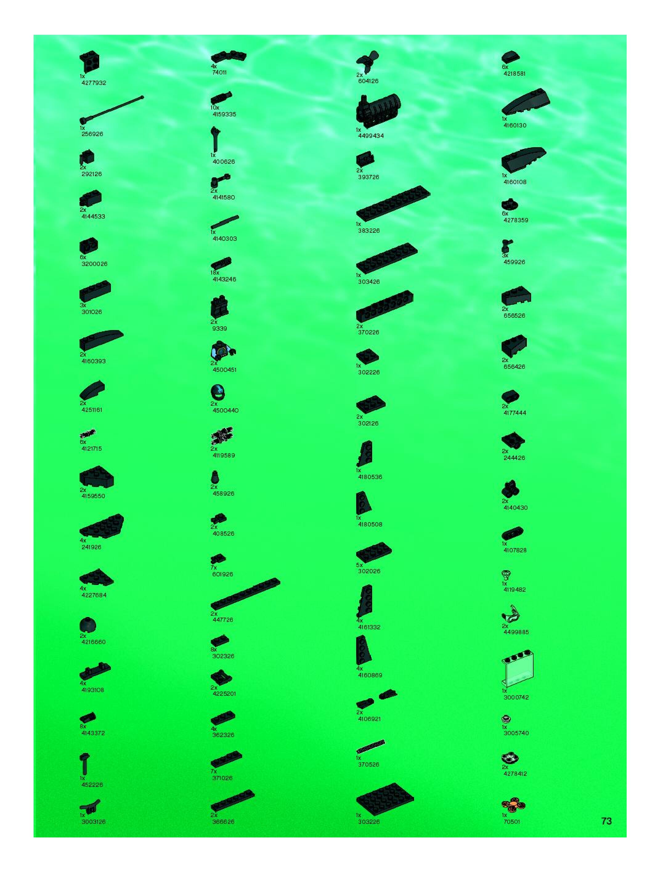The assembly guide is prepared in a very understandable way for children and adult LEGO enthusiasts. A total of 76 picture galleries are shown, explaining the step-by-step construction stages for 1 different structures.