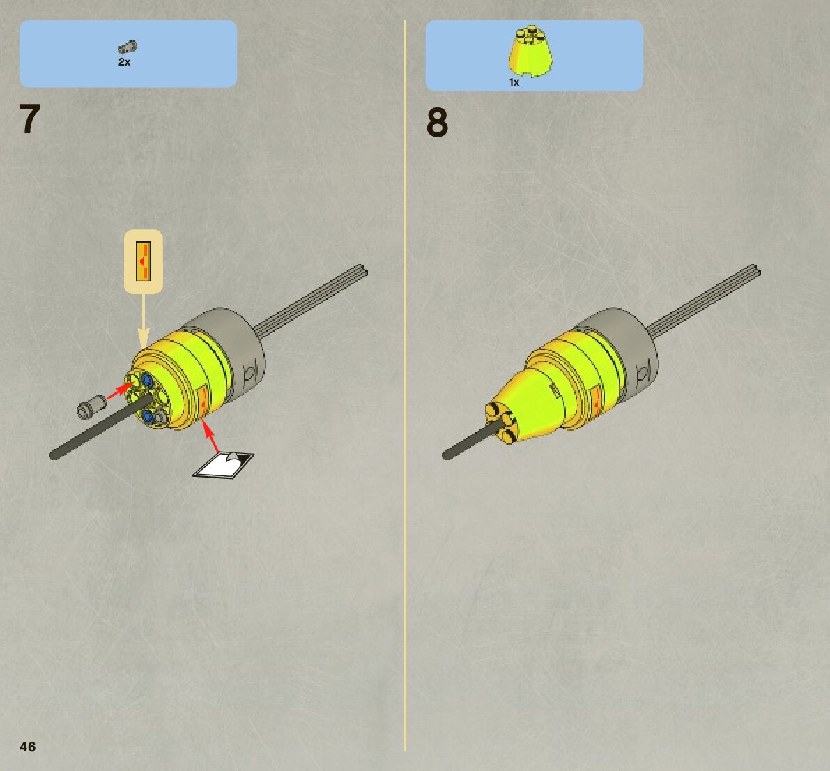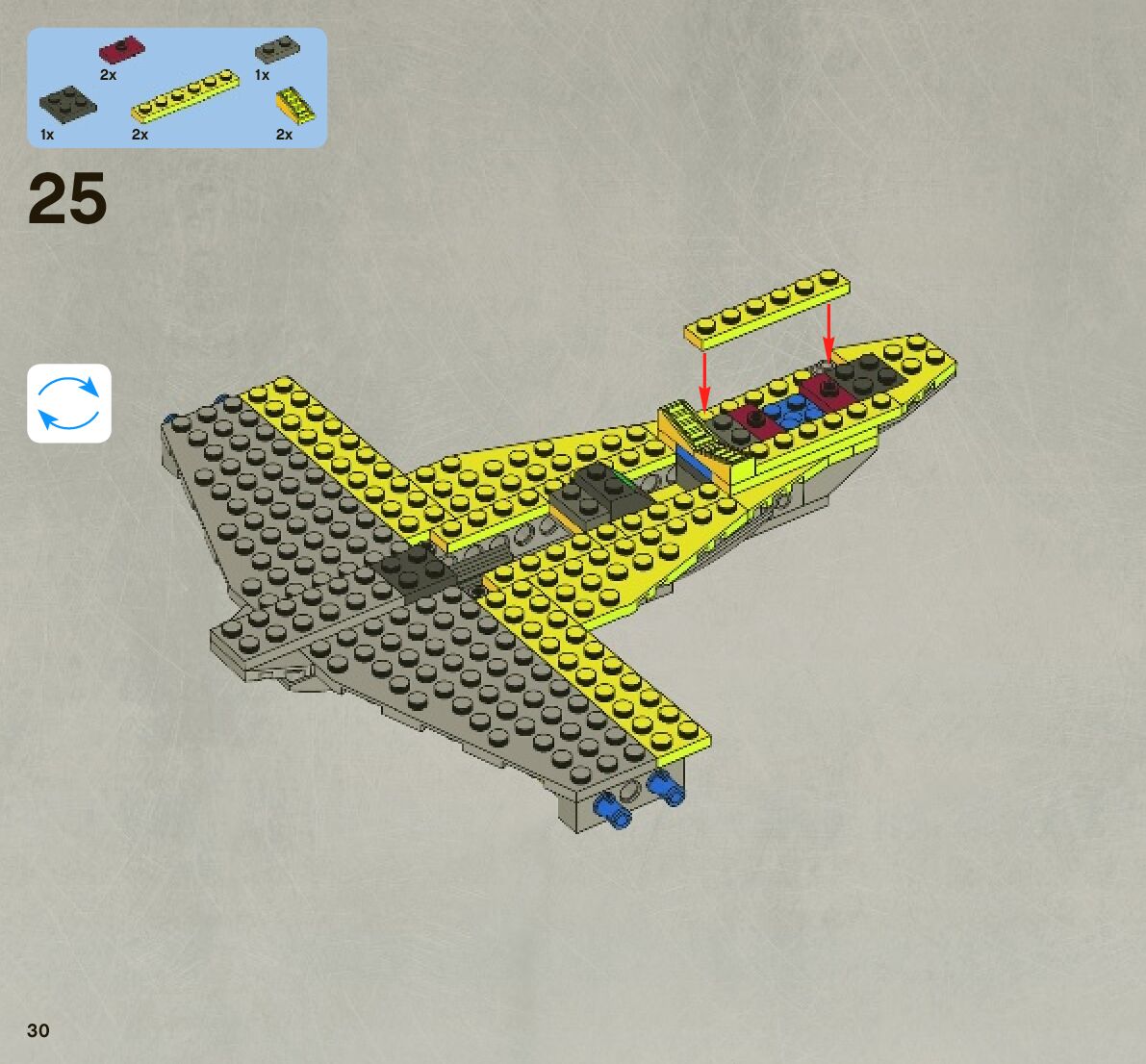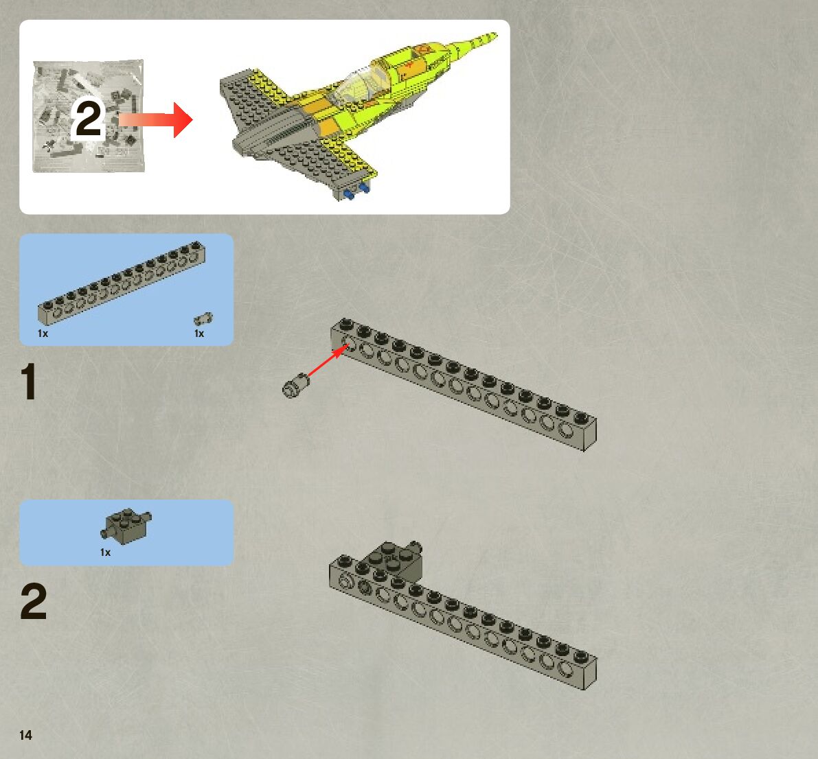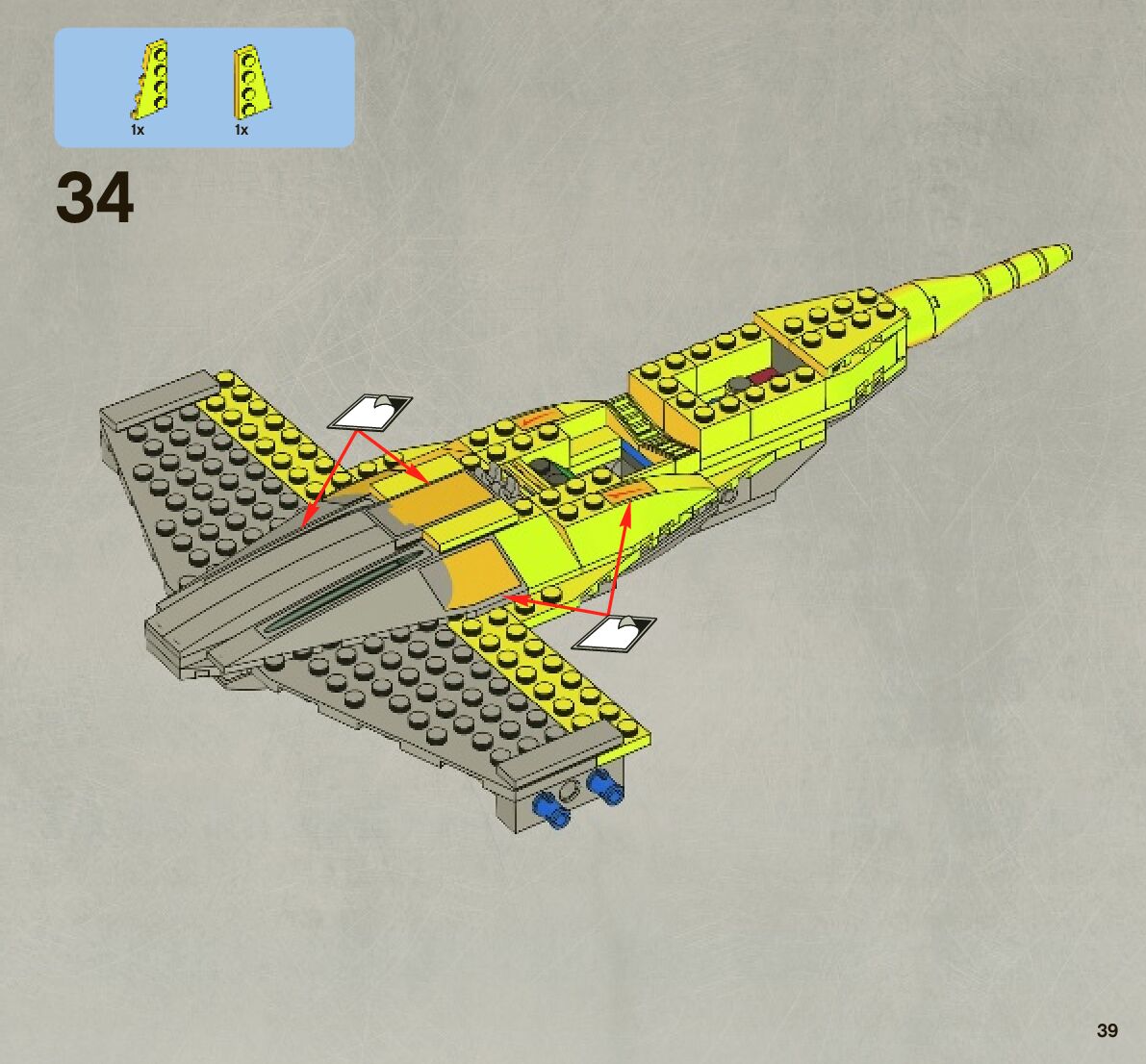On this page you can find the original construction manual for the LEGO 7877 set. With the assembly manual you can easily learn how to build the 7877 Naboo Starfighter step by step. The set was released in 2011.