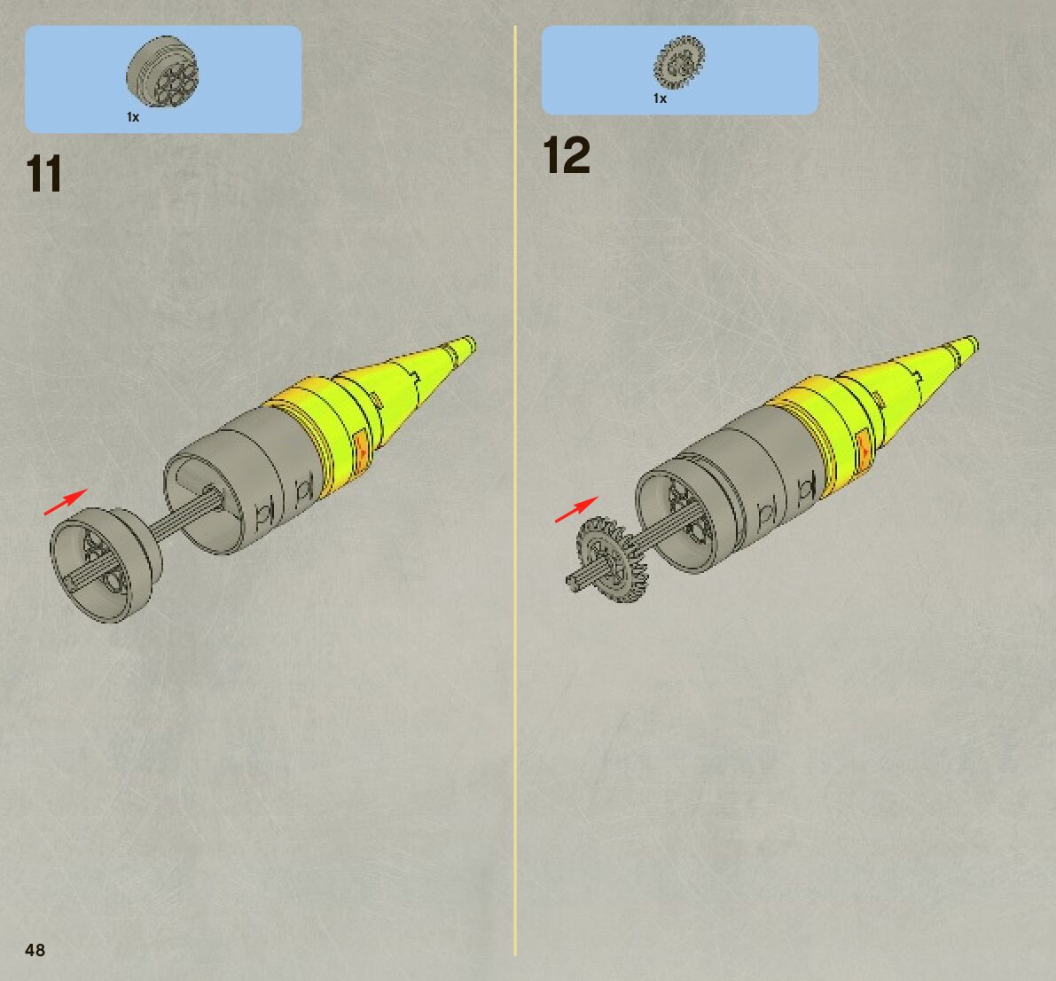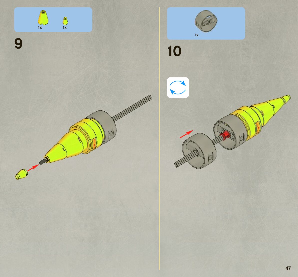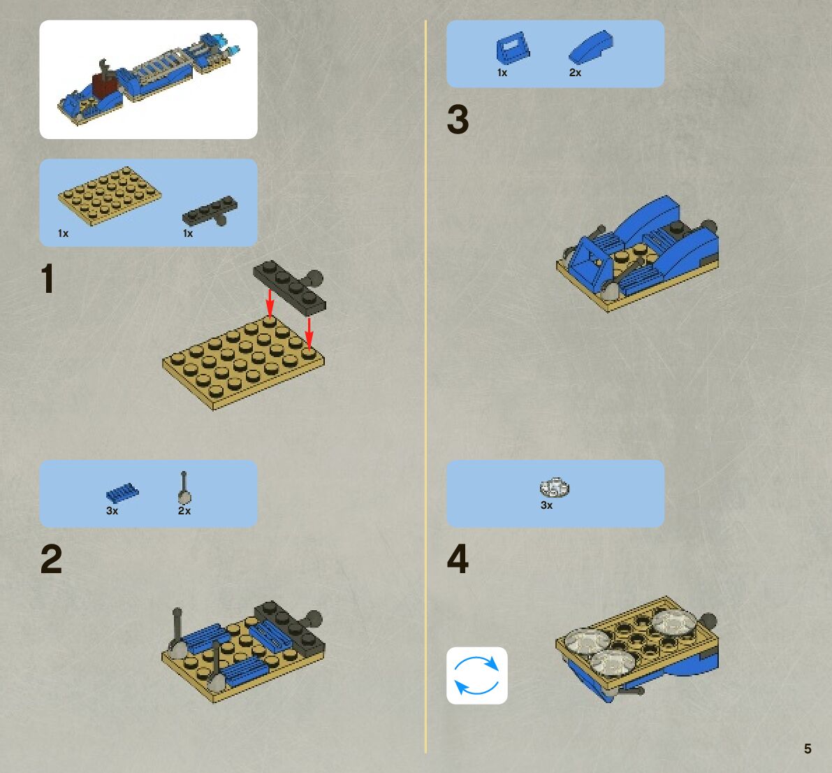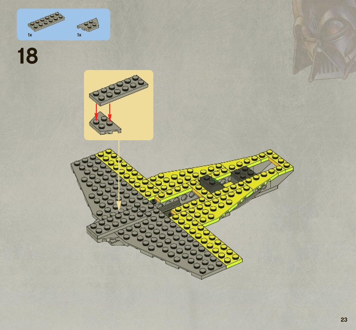 On this page you can find the original construction manual for the LEGO 7877 set. With the assembly manual you can easily learn how to build the 7877 Naboo Starfighter step by step. The set was released in 2011.