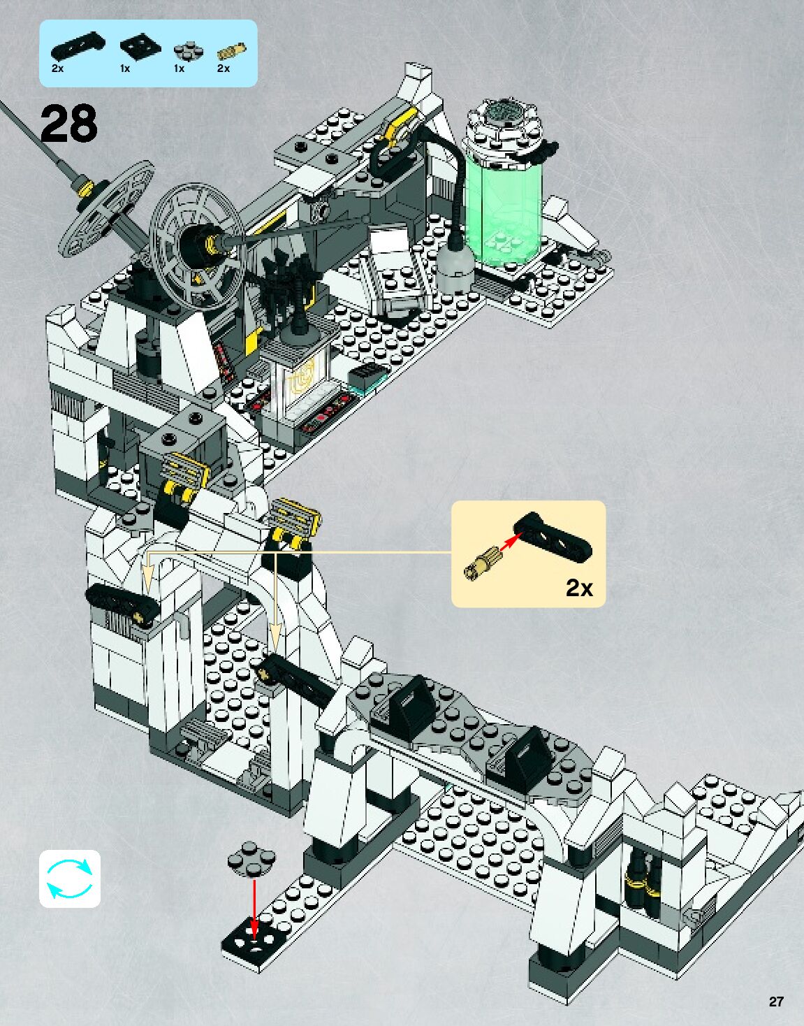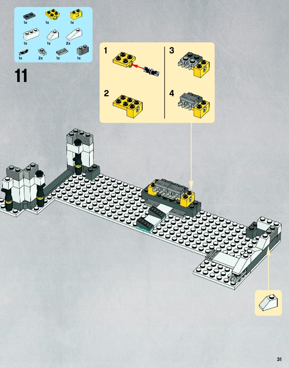 The assembly guide is prepared in a very understandable way for children and adult LEGO enthusiasts. A total of 108 picture galleries are shown, explaining the step-by-step construction stages for 2 different structures.