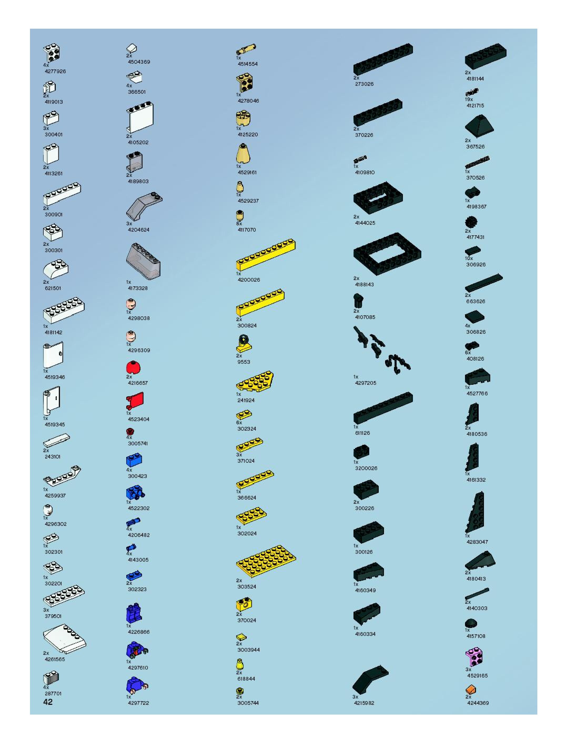 The assembly guide is prepared in a very understandable way for children and adult LEGO enthusiasts. A total of 384 picture galleries are shown, explaining the step-by-step construction stages for 2 different structures.