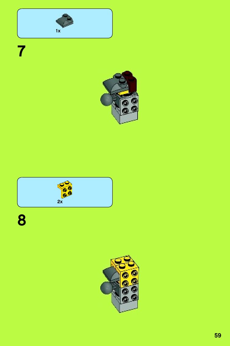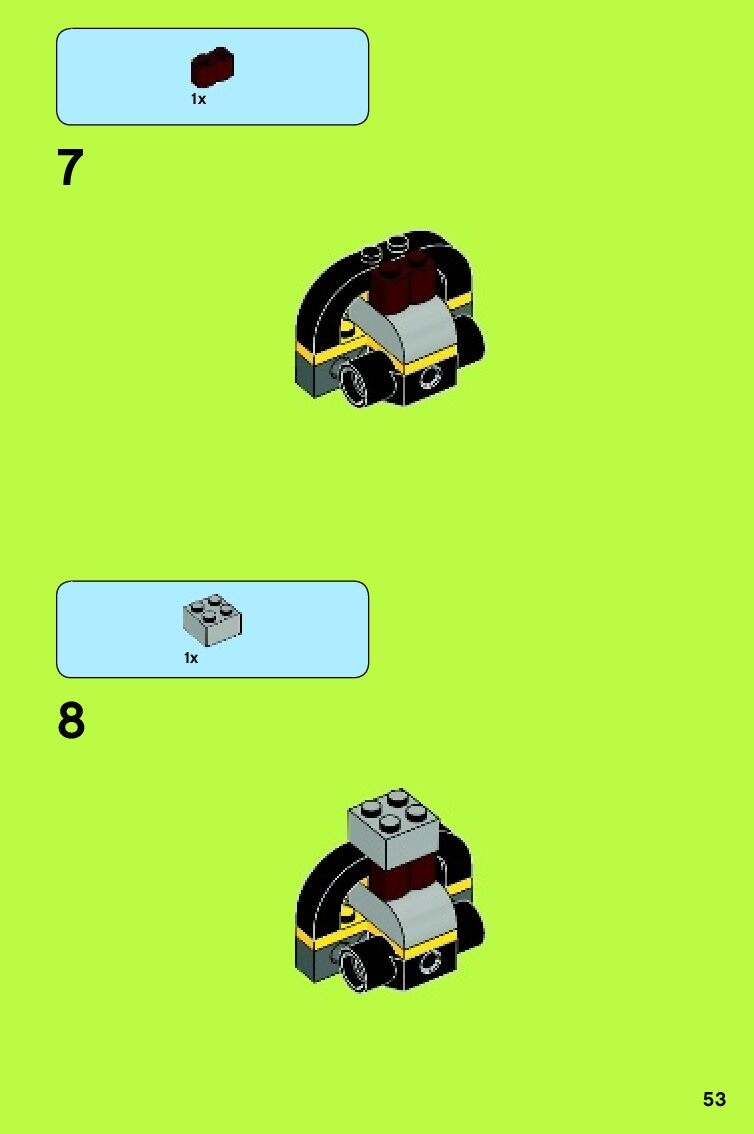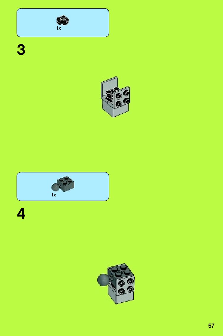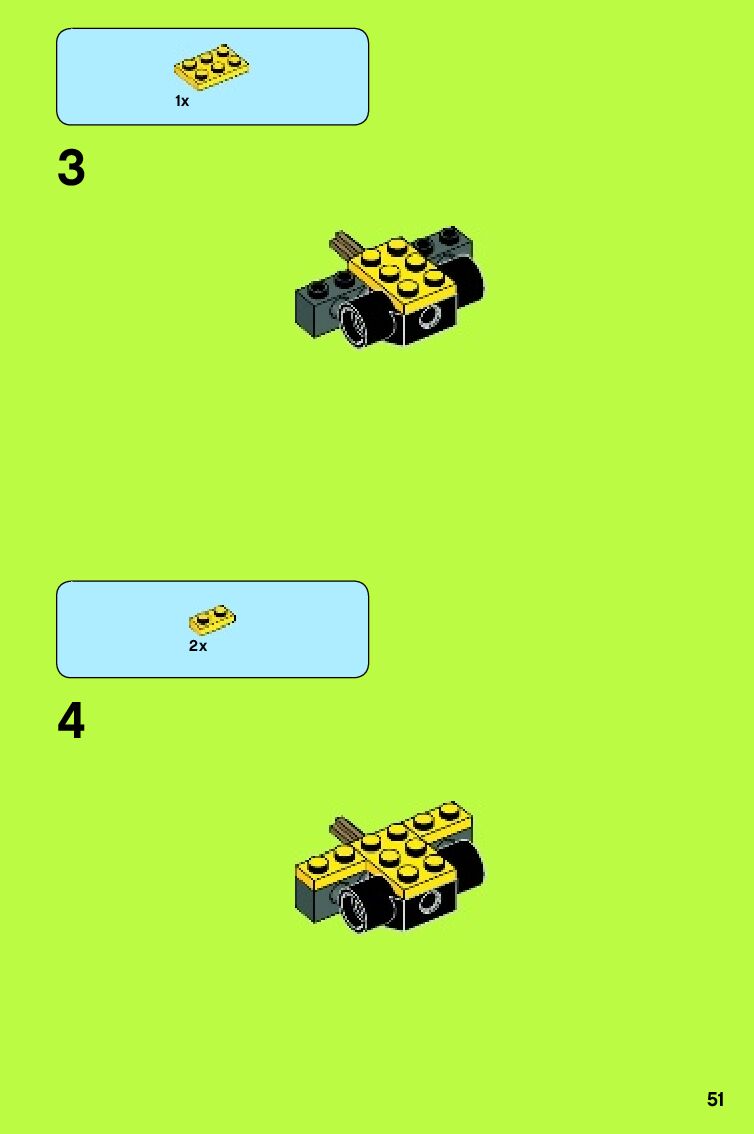 The assembly guide is prepared in a very understandable way for children and adult LEGO enthusiasts. A total of 500 picture galleries are shown, explaining the step-by-step construction stages for 2 different structures.