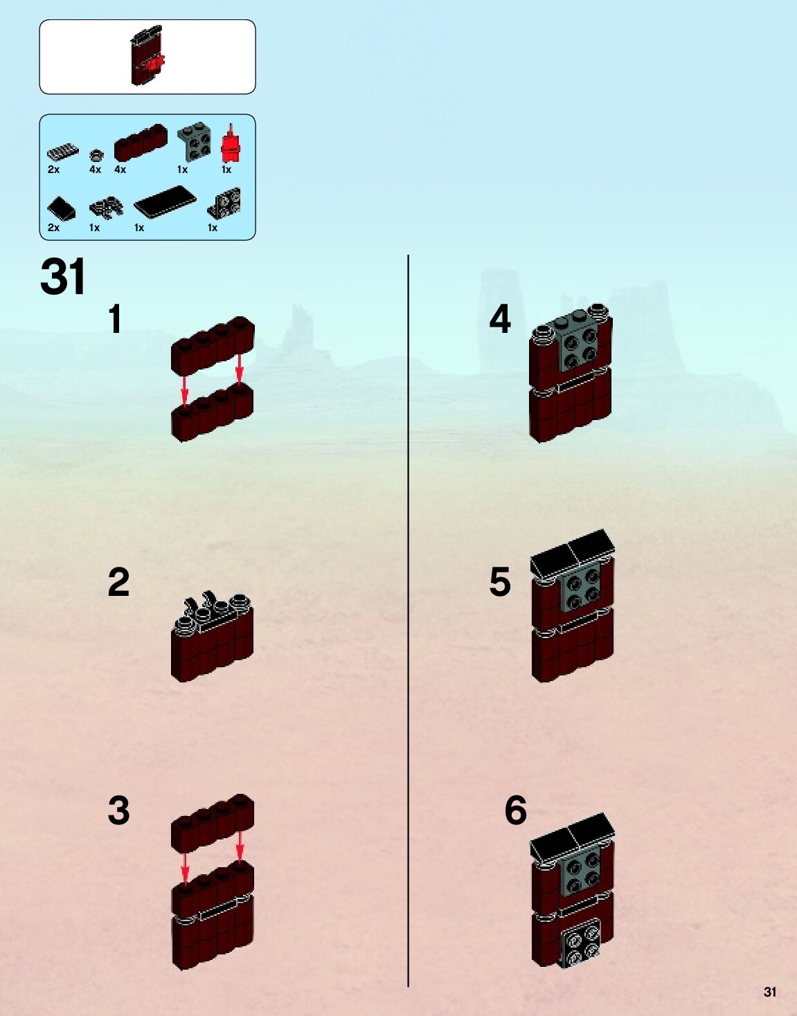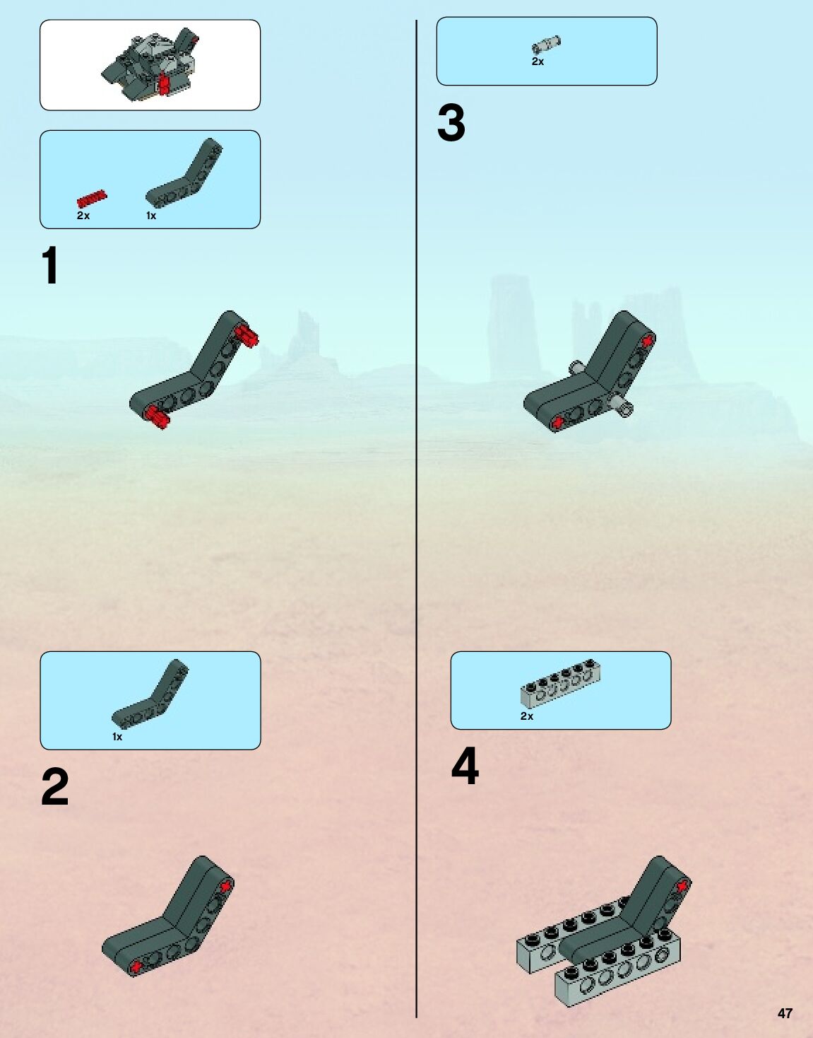The assembly guide is prepared in a very understandable way for children and adult LEGO enthusiasts. A total of 116 picture galleries are shown, explaining the step-by-step construction stages for 2 different structures.