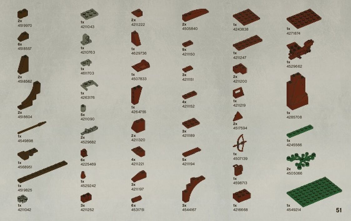 The assembly guide is prepared in a very understandable way for children and adult LEGO enthusiasts. A total of 56 picture galleries are shown, explaining the step-by-step construction stages for 1 different structures.