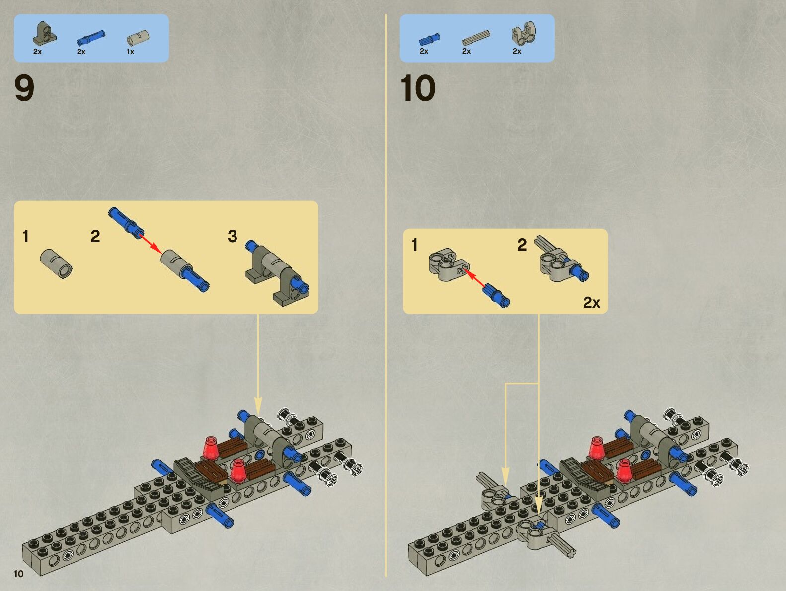 The assembly guide is prepared in a very understandable way for children and adult LEGO enthusiasts. A total of 368 picture galleries are shown, explaining the step-by-step construction stages for 2 different structures.