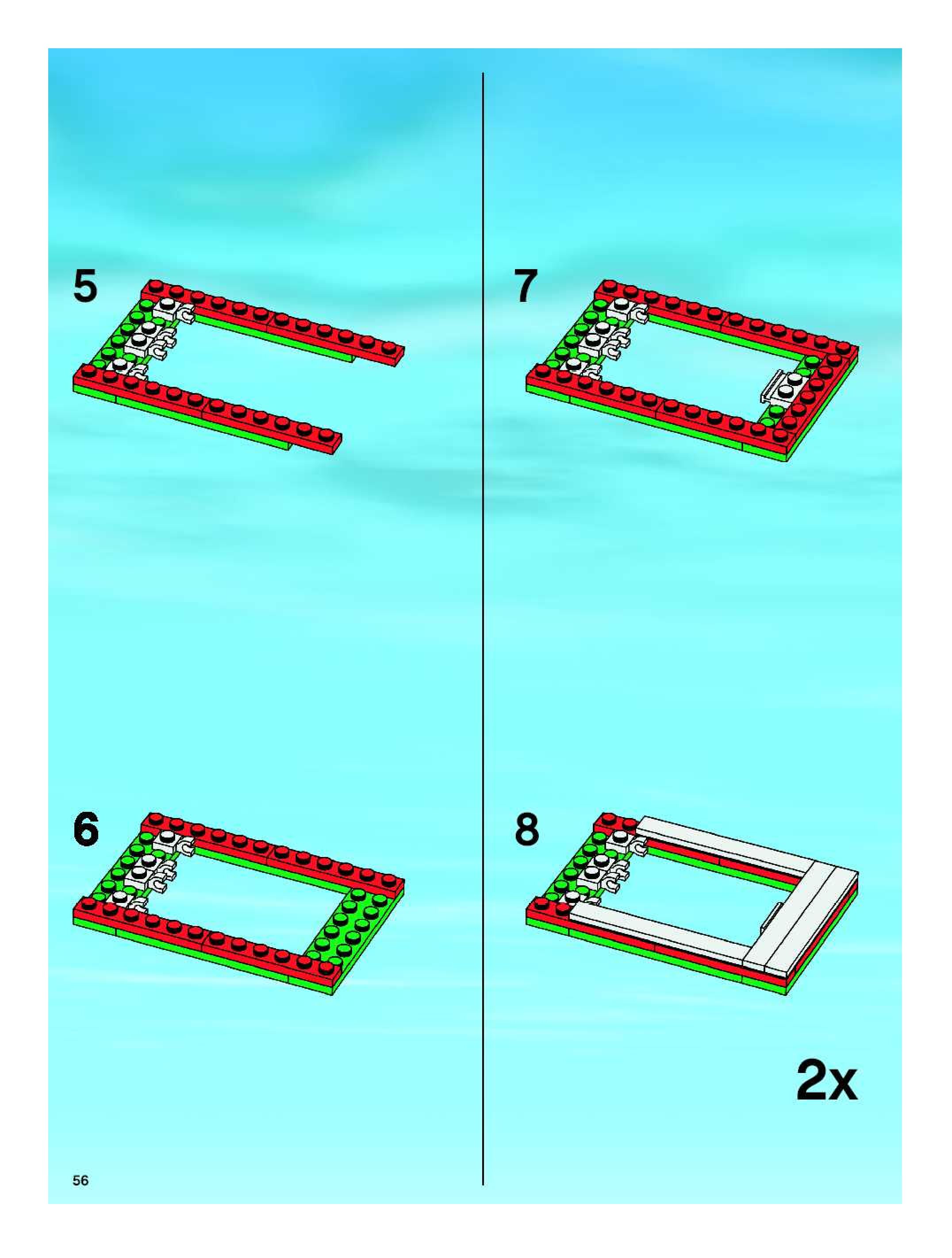The assembly guide is prepared in a very understandable way for children and adult LEGO enthusiasts. A total of 88 picture galleries are shown, explaining the step-by-step construction stages for 2 different structures.