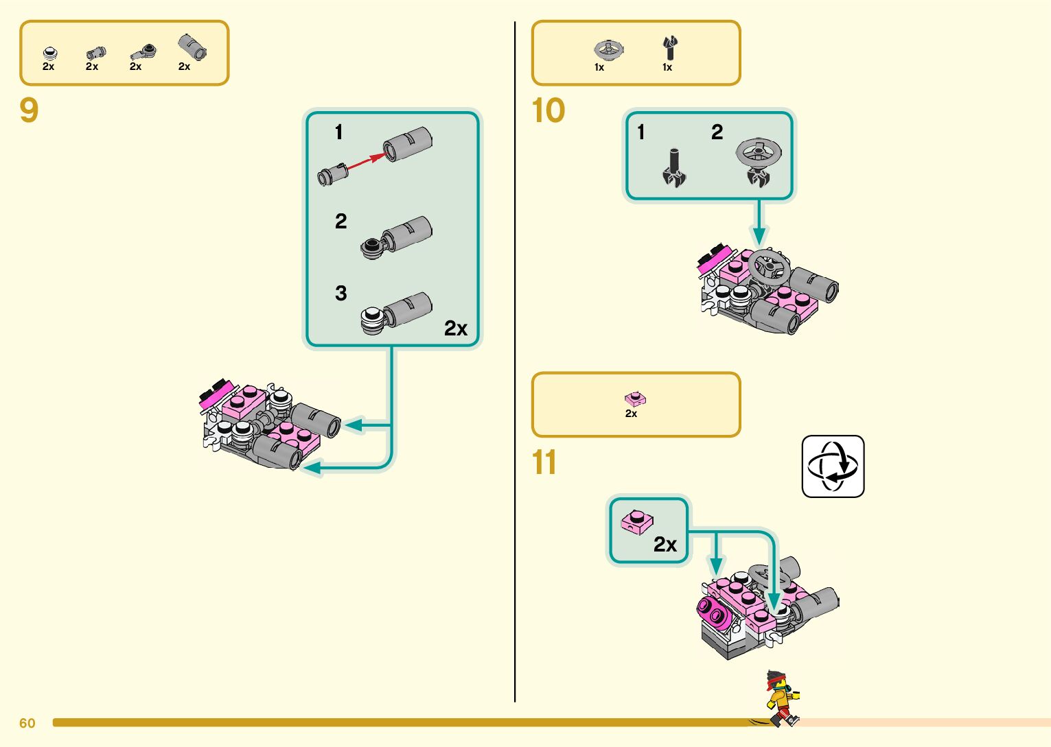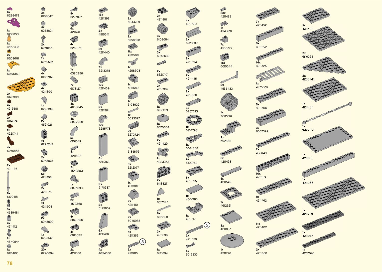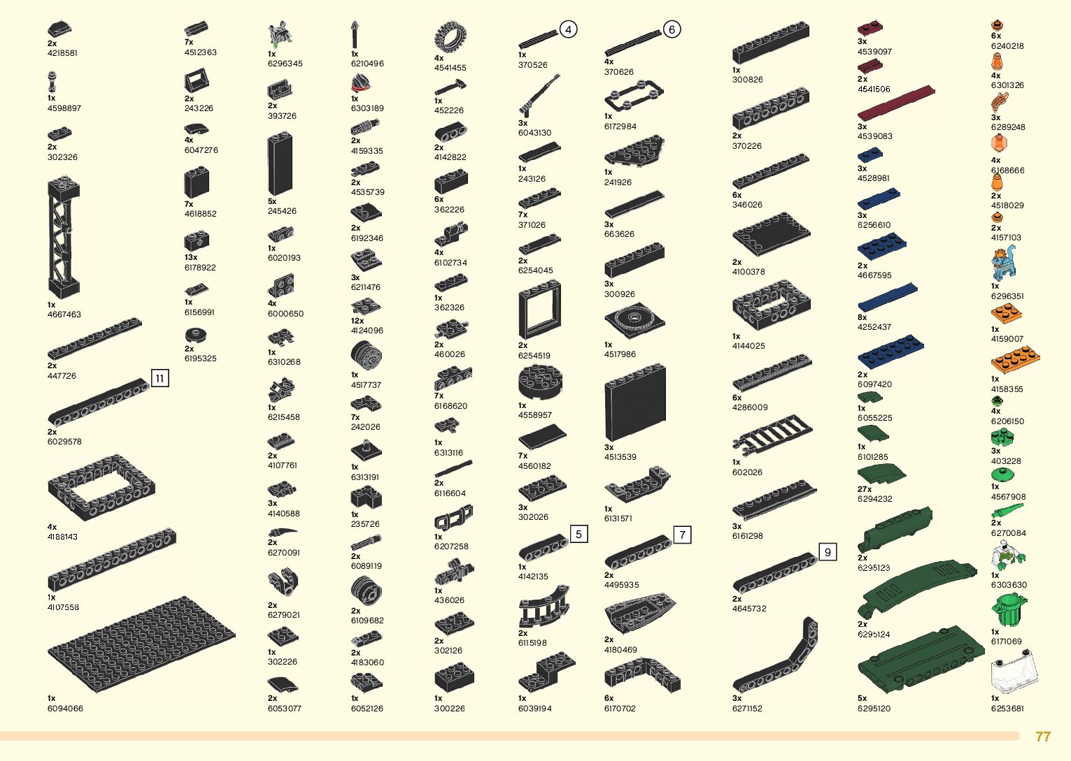 The assembly guide is prepared in a very understandable way for children and adult LEGO enthusiasts. A total of 556 picture galleries are shown, explaining the step-by-step construction stages for 5 different structures.