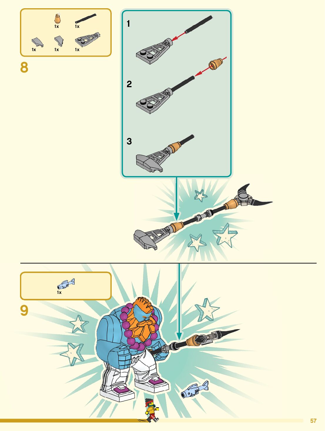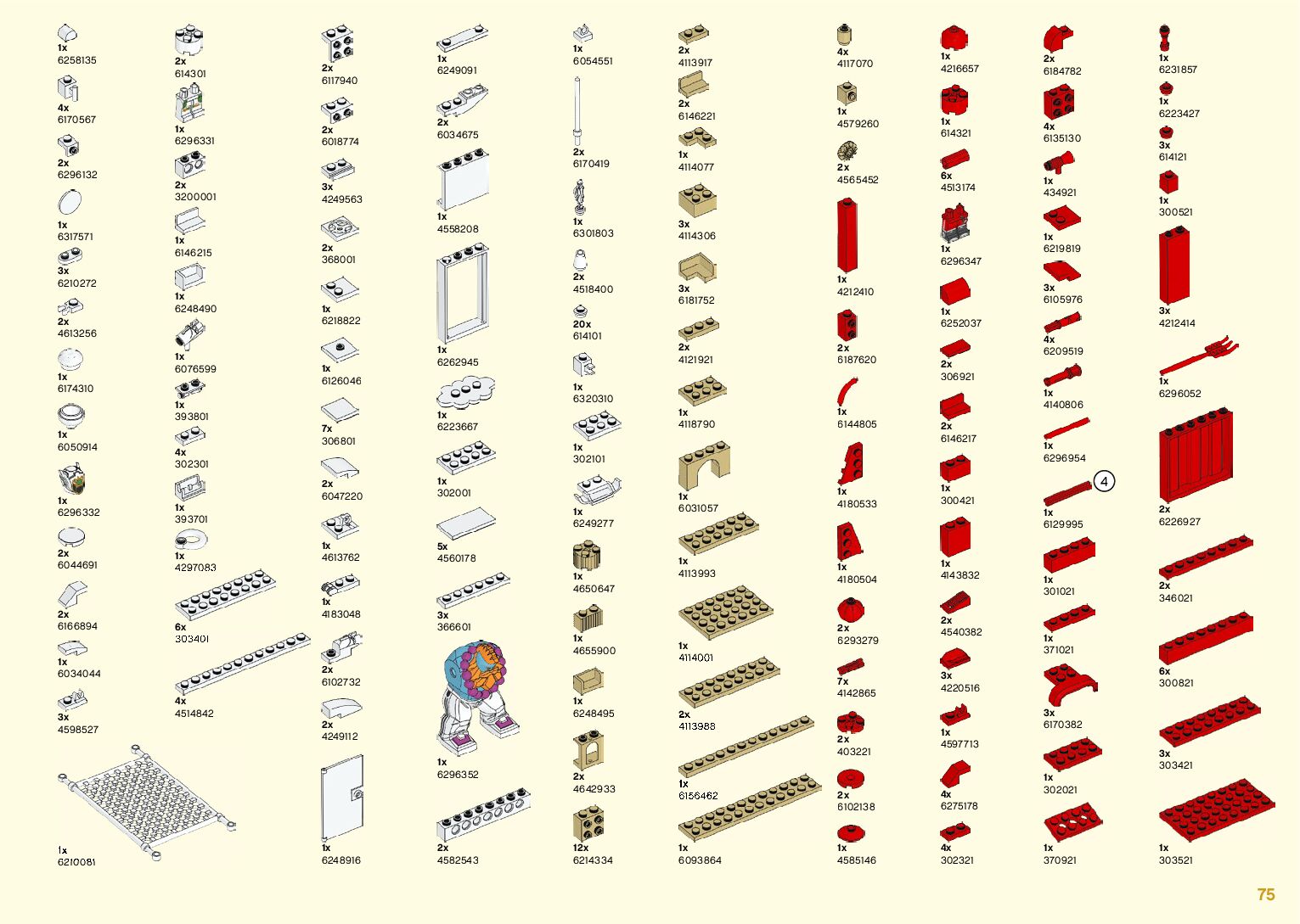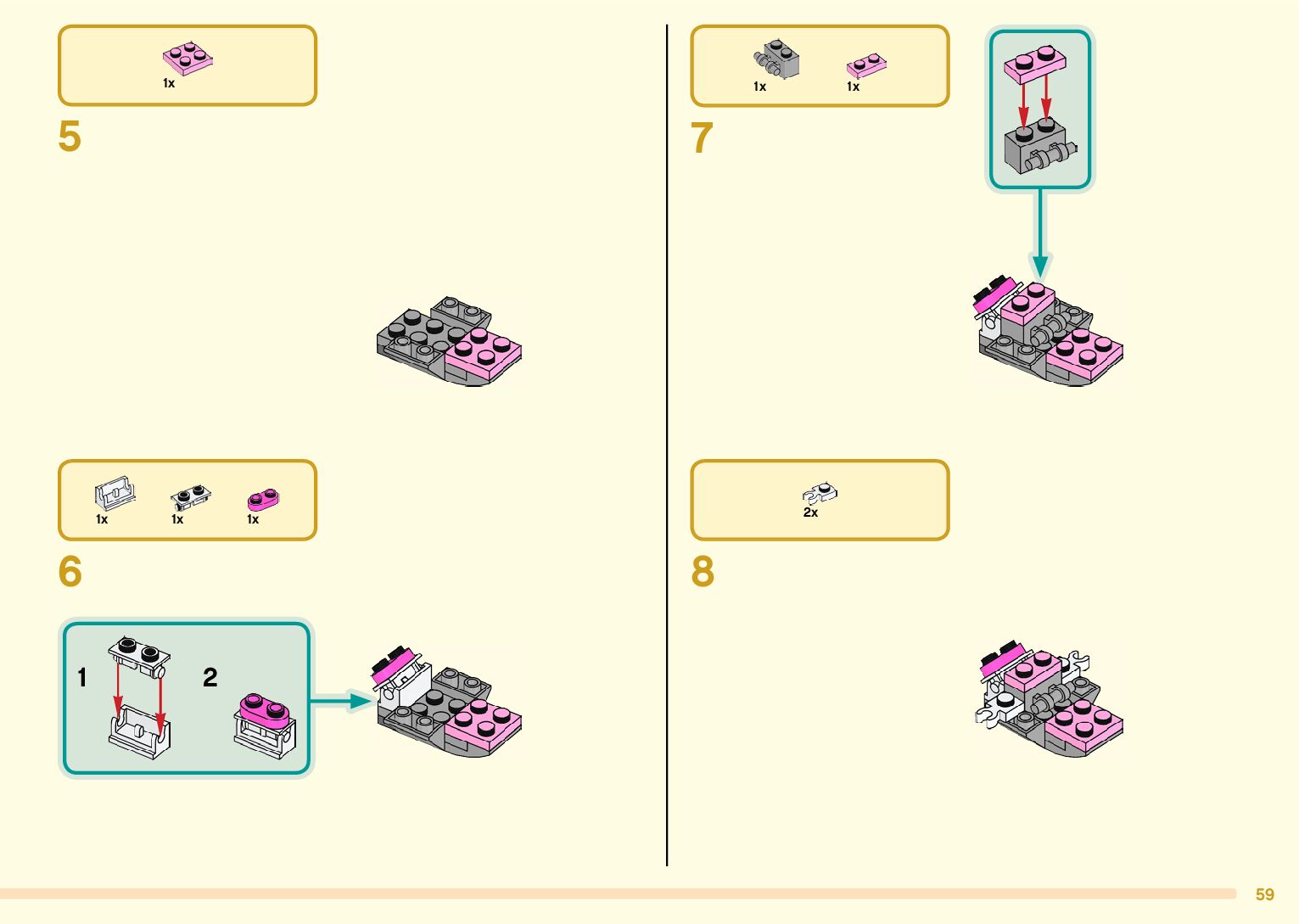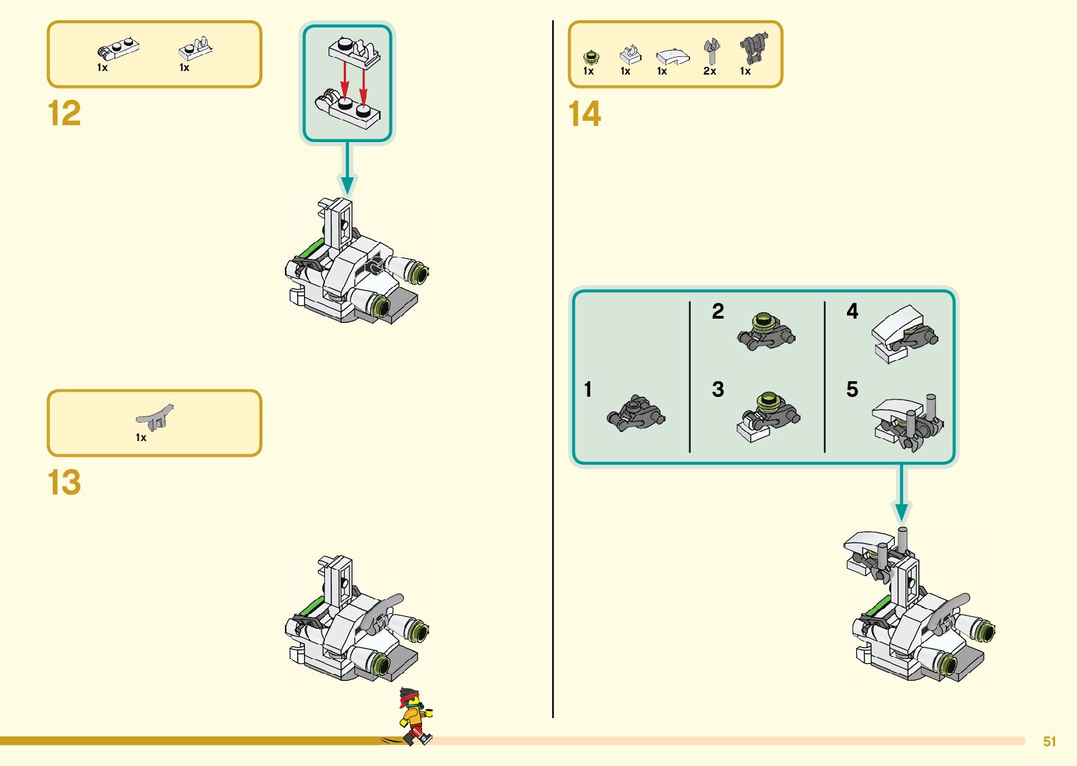 The assembly guide is prepared in a very understandable way for children and adult LEGO enthusiasts. A total of 556 picture galleries are shown, explaining the step-by-step construction stages for 5 different structures.