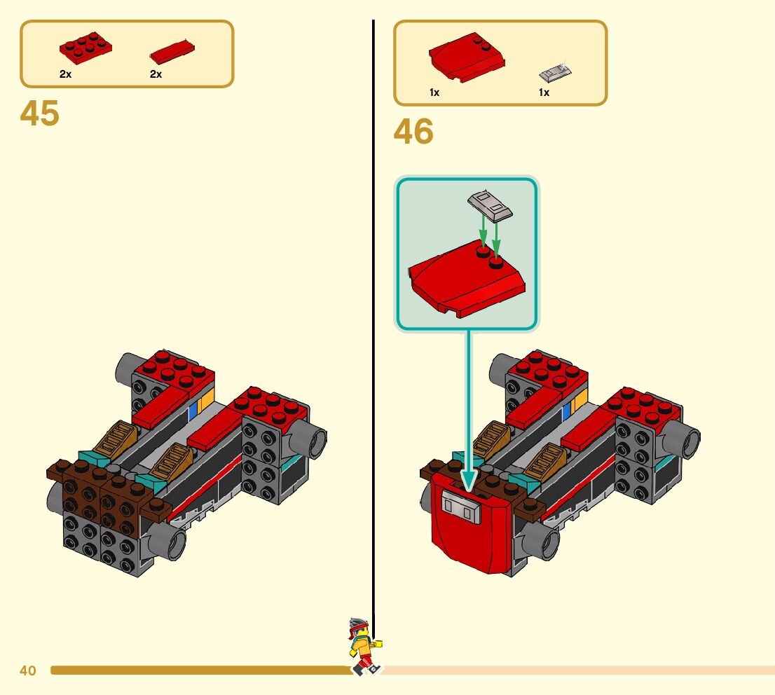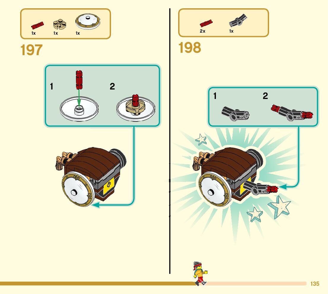 The assembly guide is prepared in a very understandable way for children and adult LEGO enthusiasts. A total of 264 picture galleries are shown, explaining the step-by-step construction stages for 2 different structures.