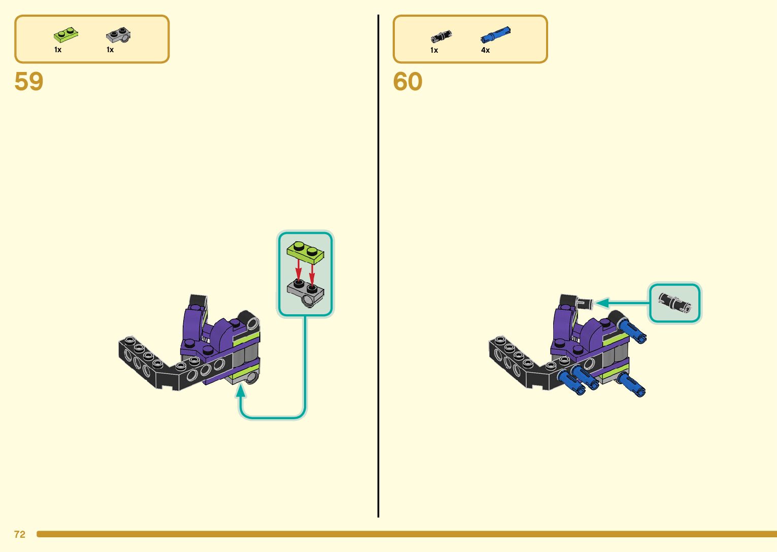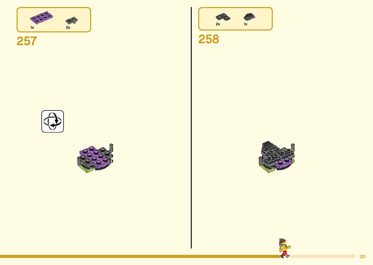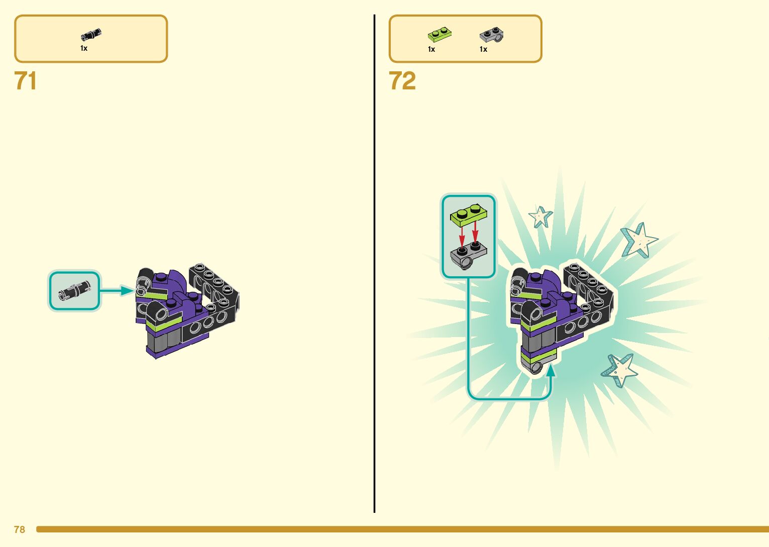 The assembly guide is prepared in a very understandable way for children and adult LEGO enthusiasts. A total of 272 picture galleries are shown, explaining the step-by-step construction stages for 2 different structures.