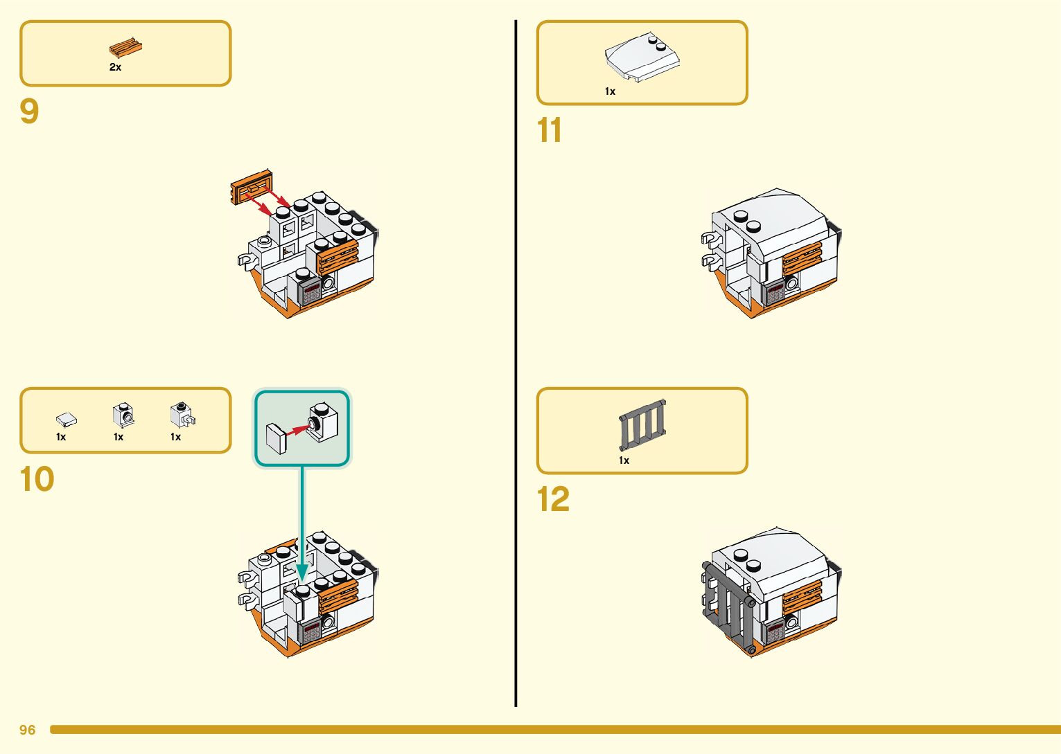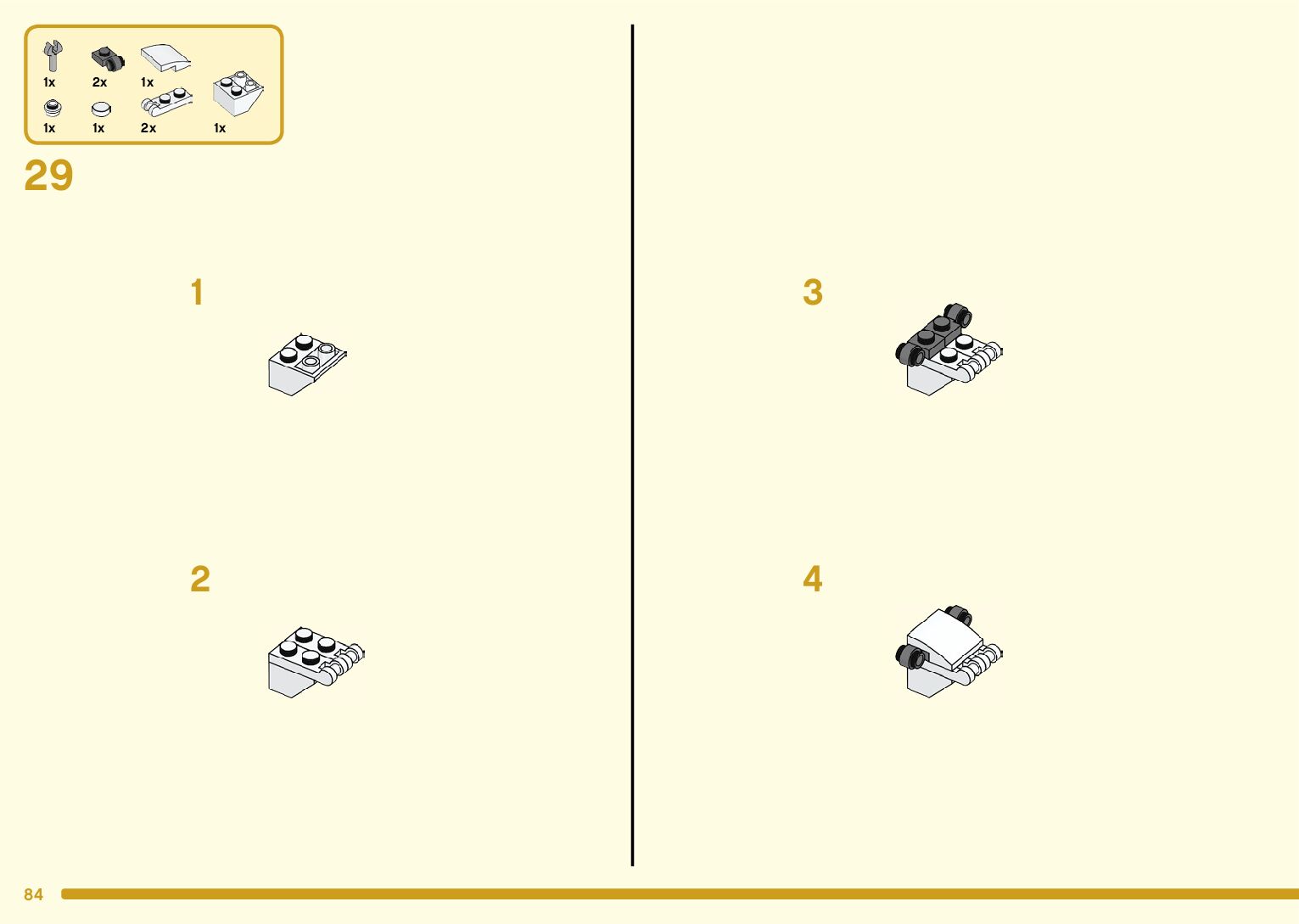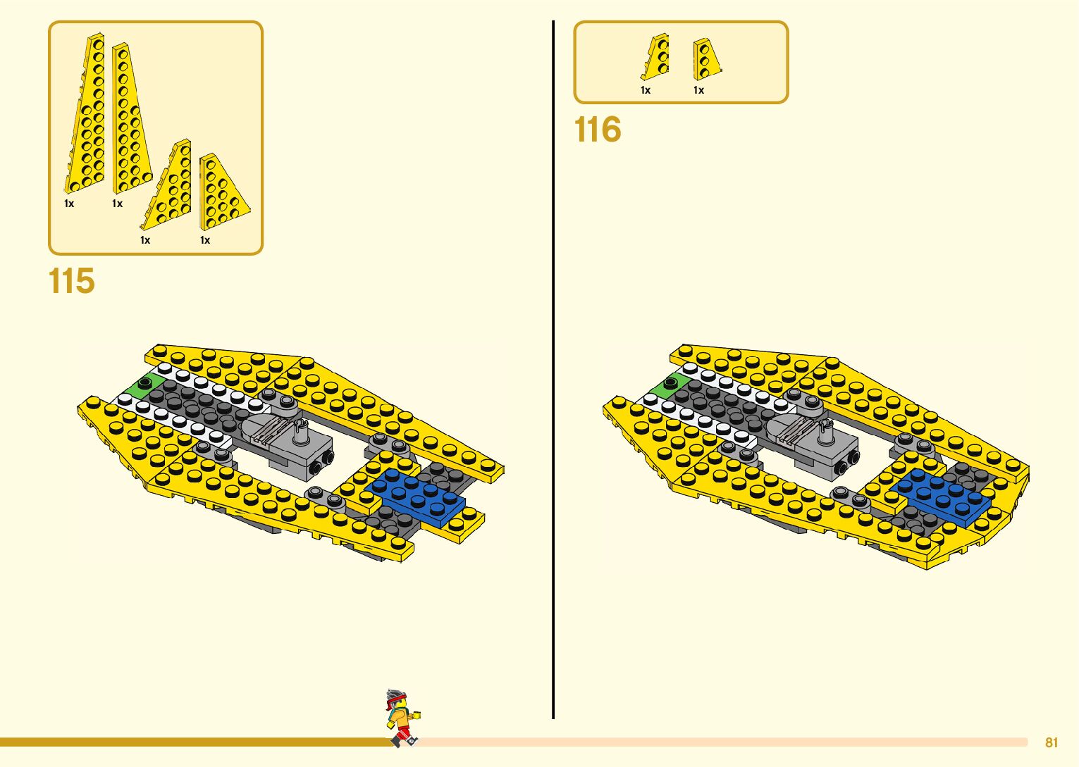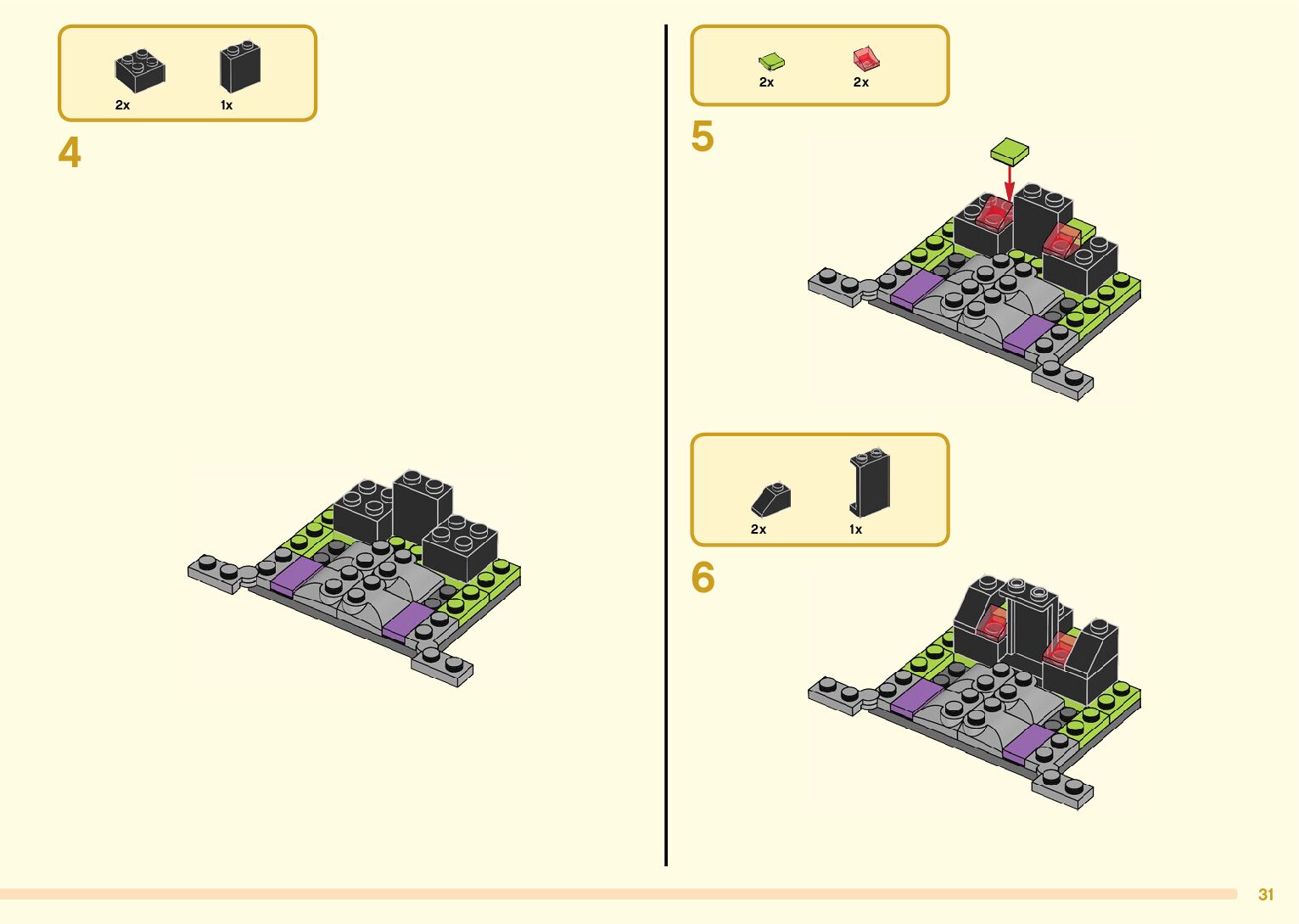 The assembly guide is prepared in a very understandable way for children and adult LEGO enthusiasts. A total of 232 picture galleries are shown, explaining the step-by-step construction stages for 2 different structures.