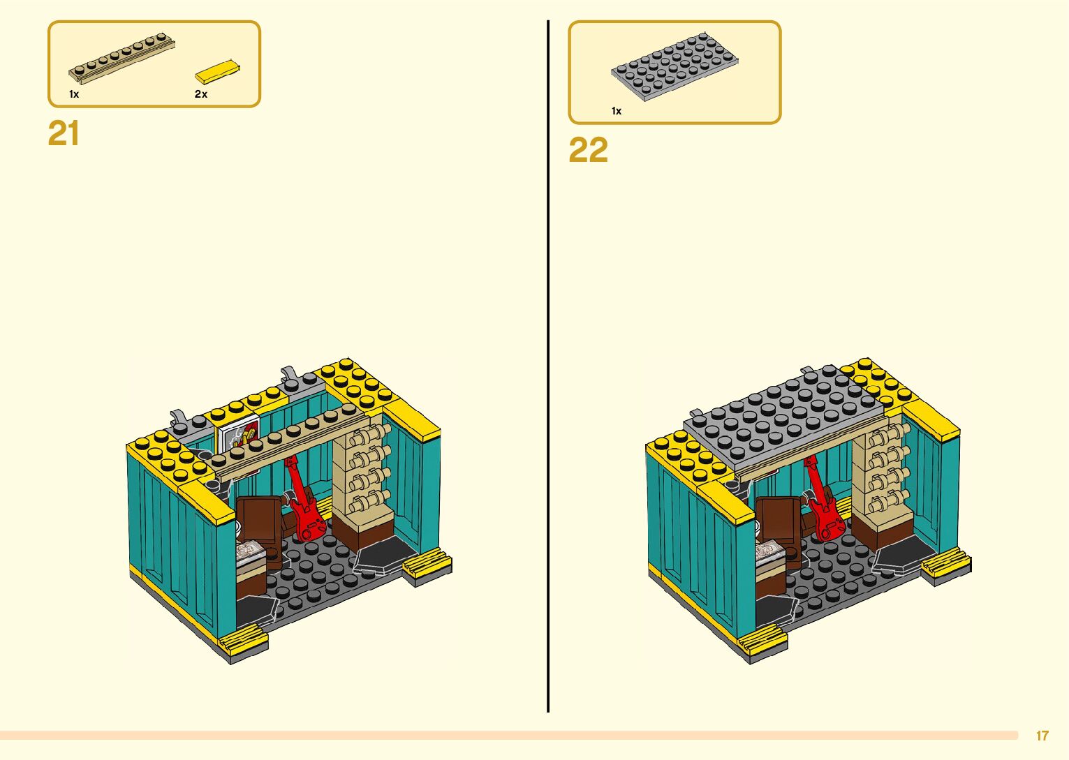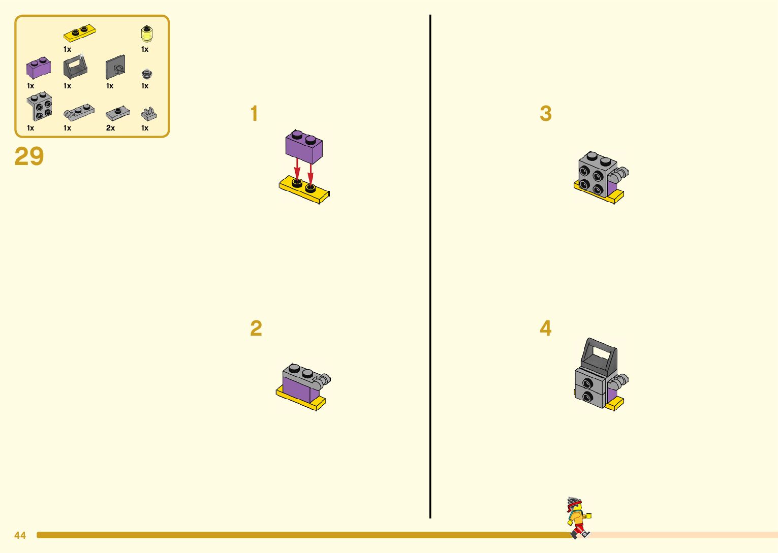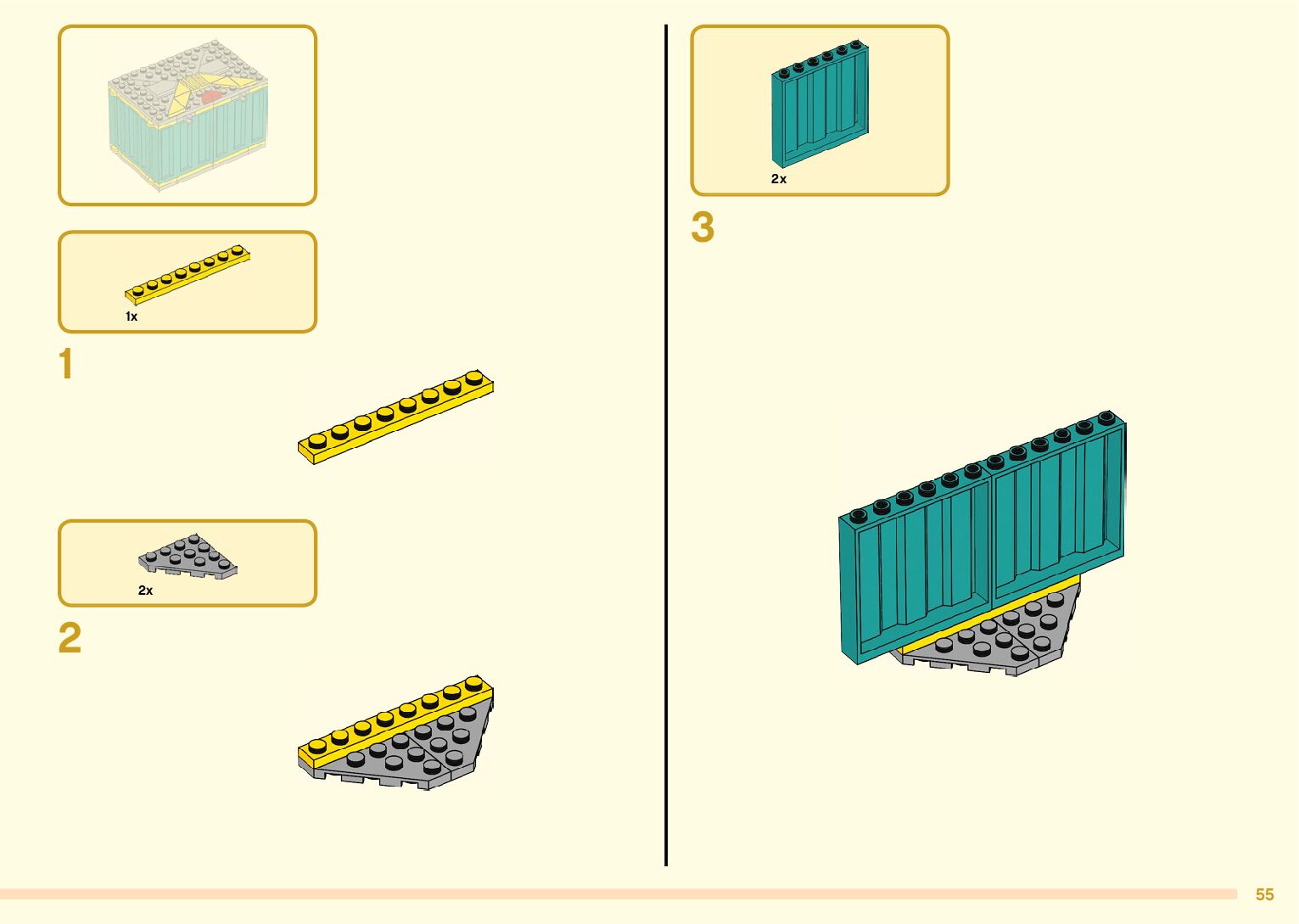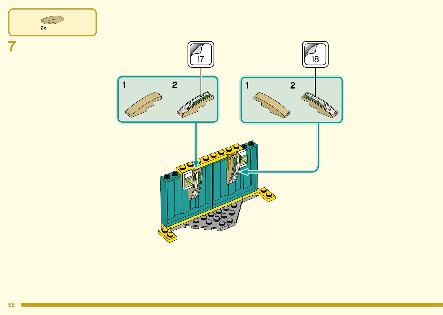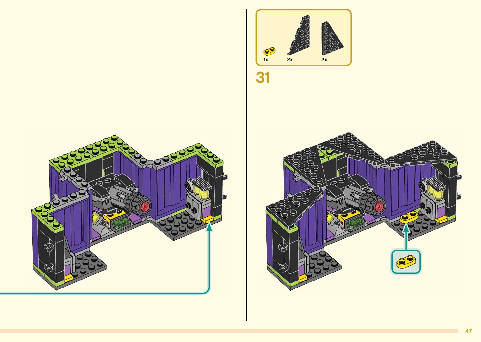 The assembly guide is prepared in a very understandable way for children and adult LEGO enthusiasts. A total of 232 picture galleries are shown, explaining the step-by-step construction stages for 2 different structures.