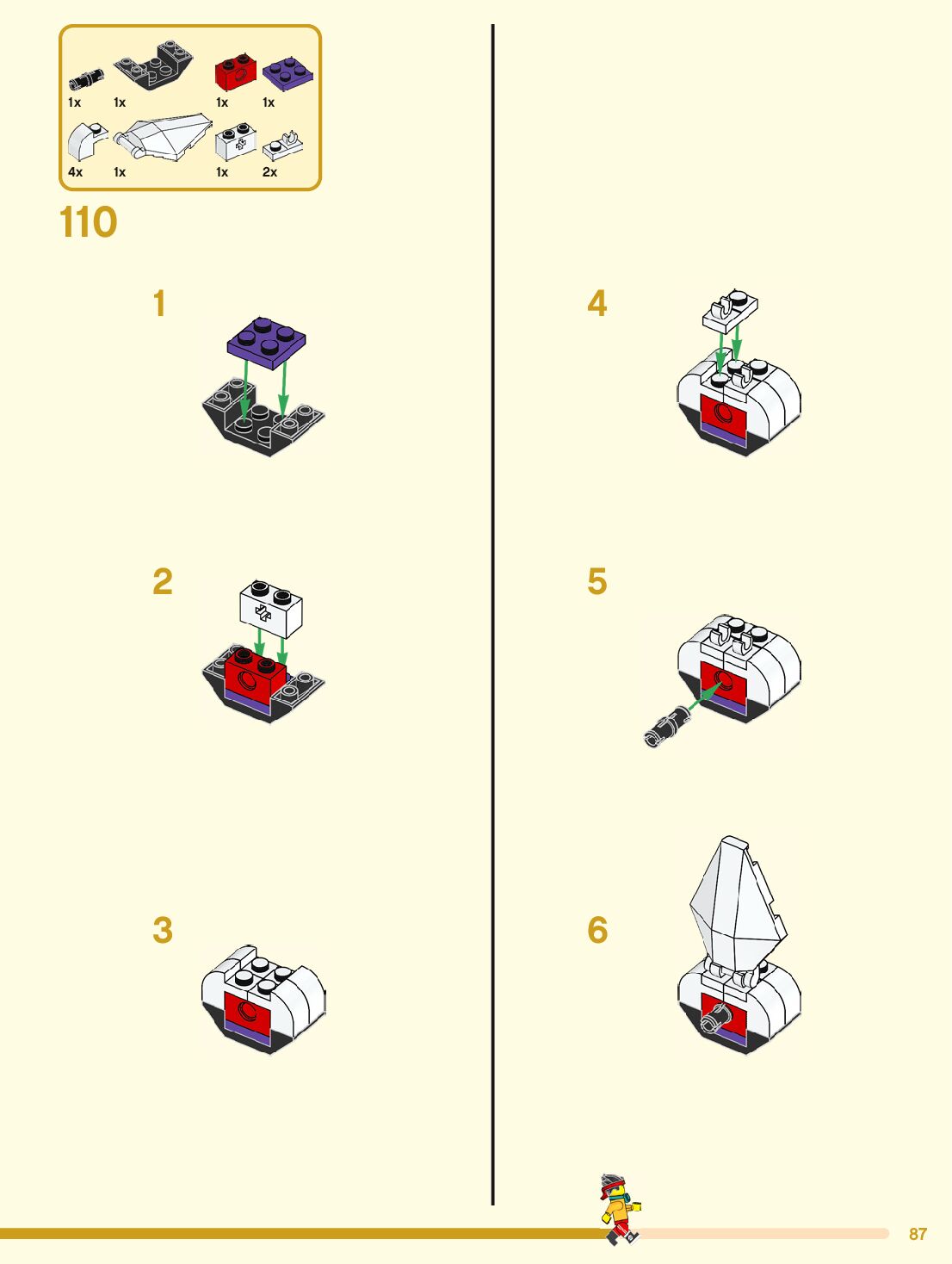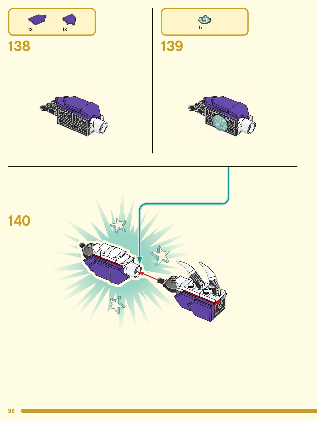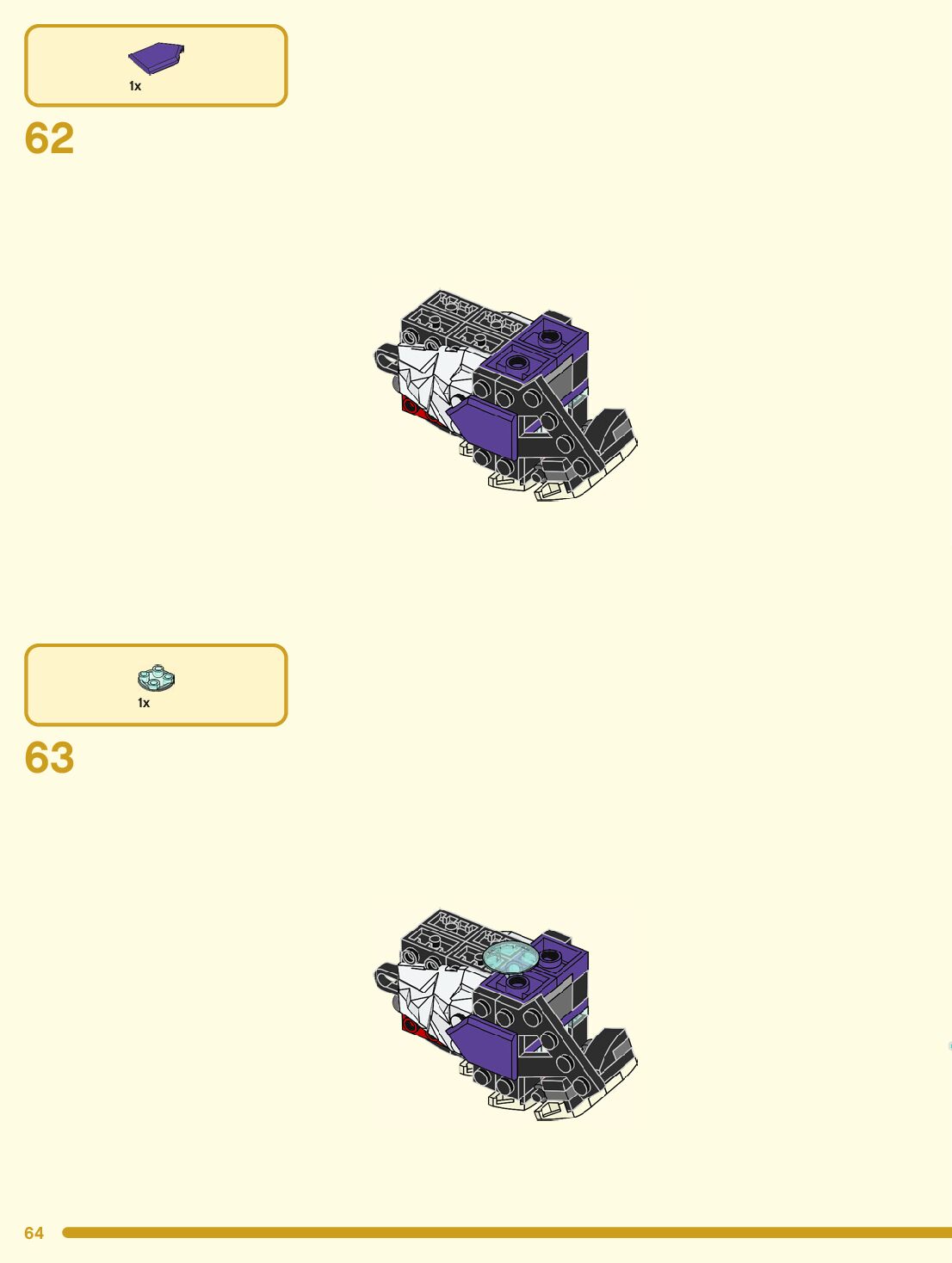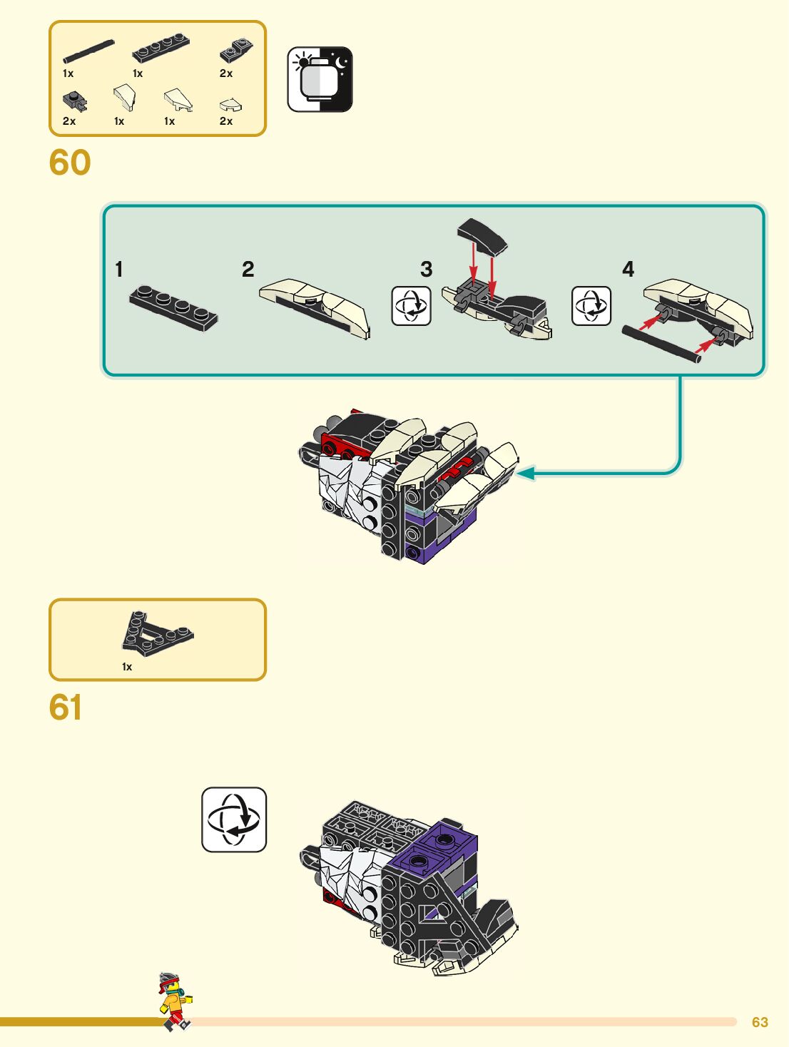 The assembly guide is prepared in a very understandable way for children and adult LEGO enthusiasts. A total of 232 picture galleries are shown, explaining the step-by-step construction stages for 3 different structures.