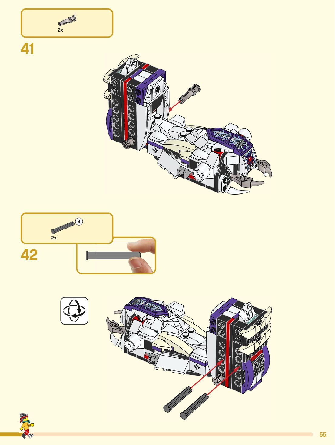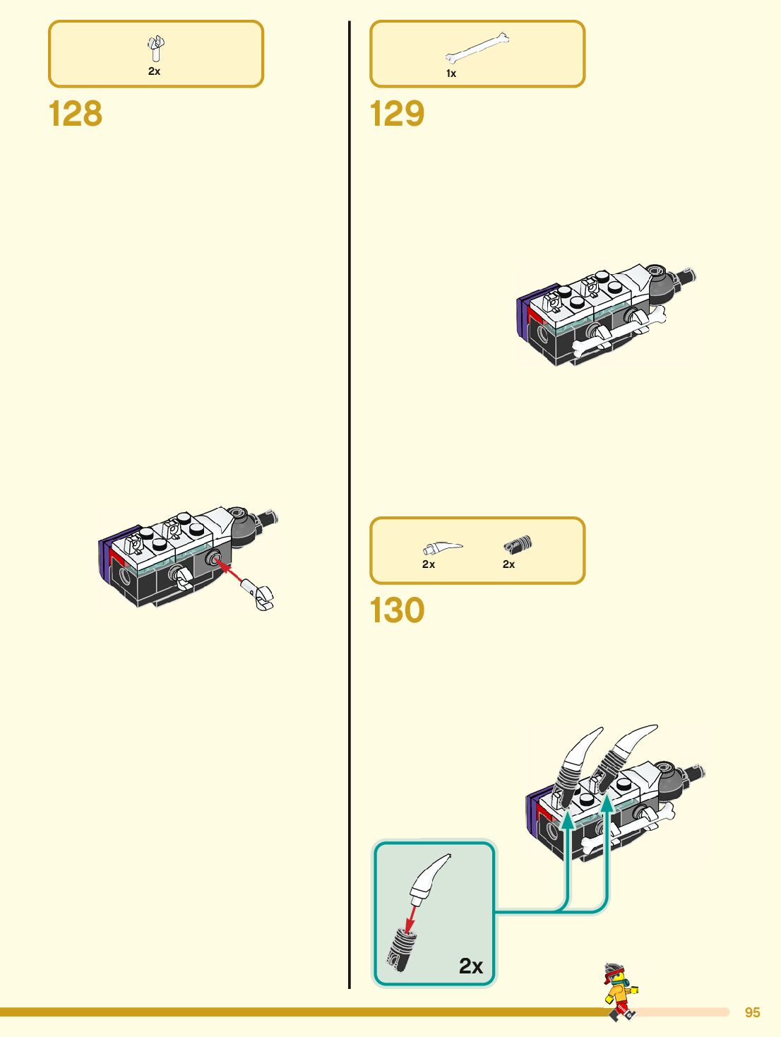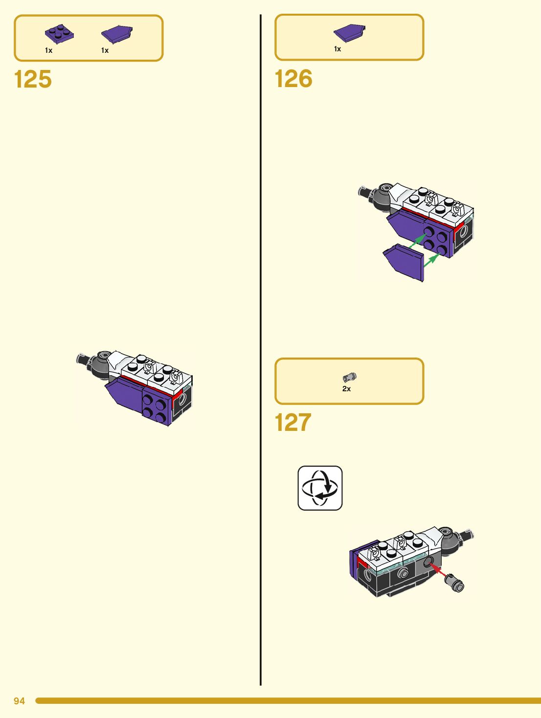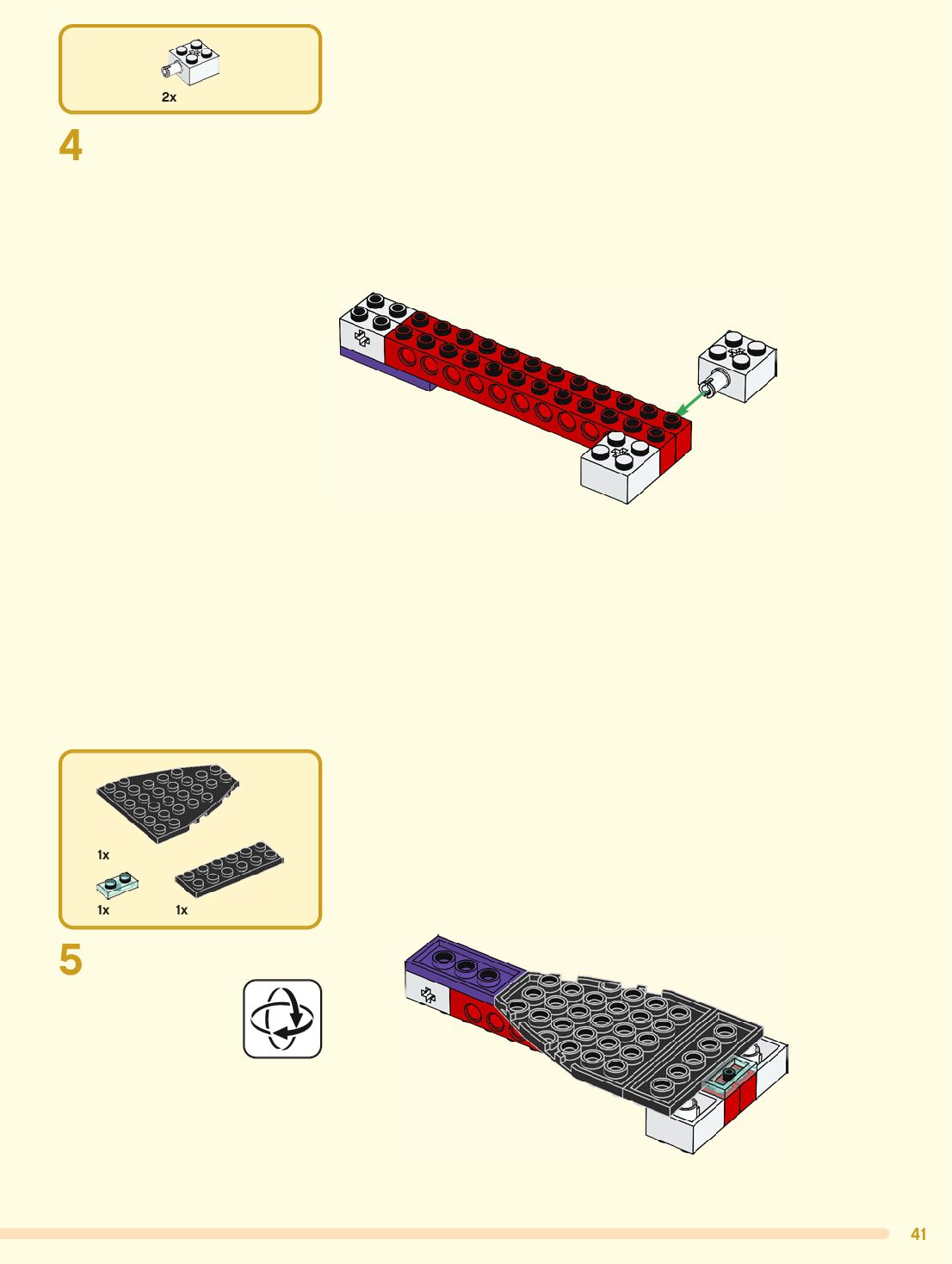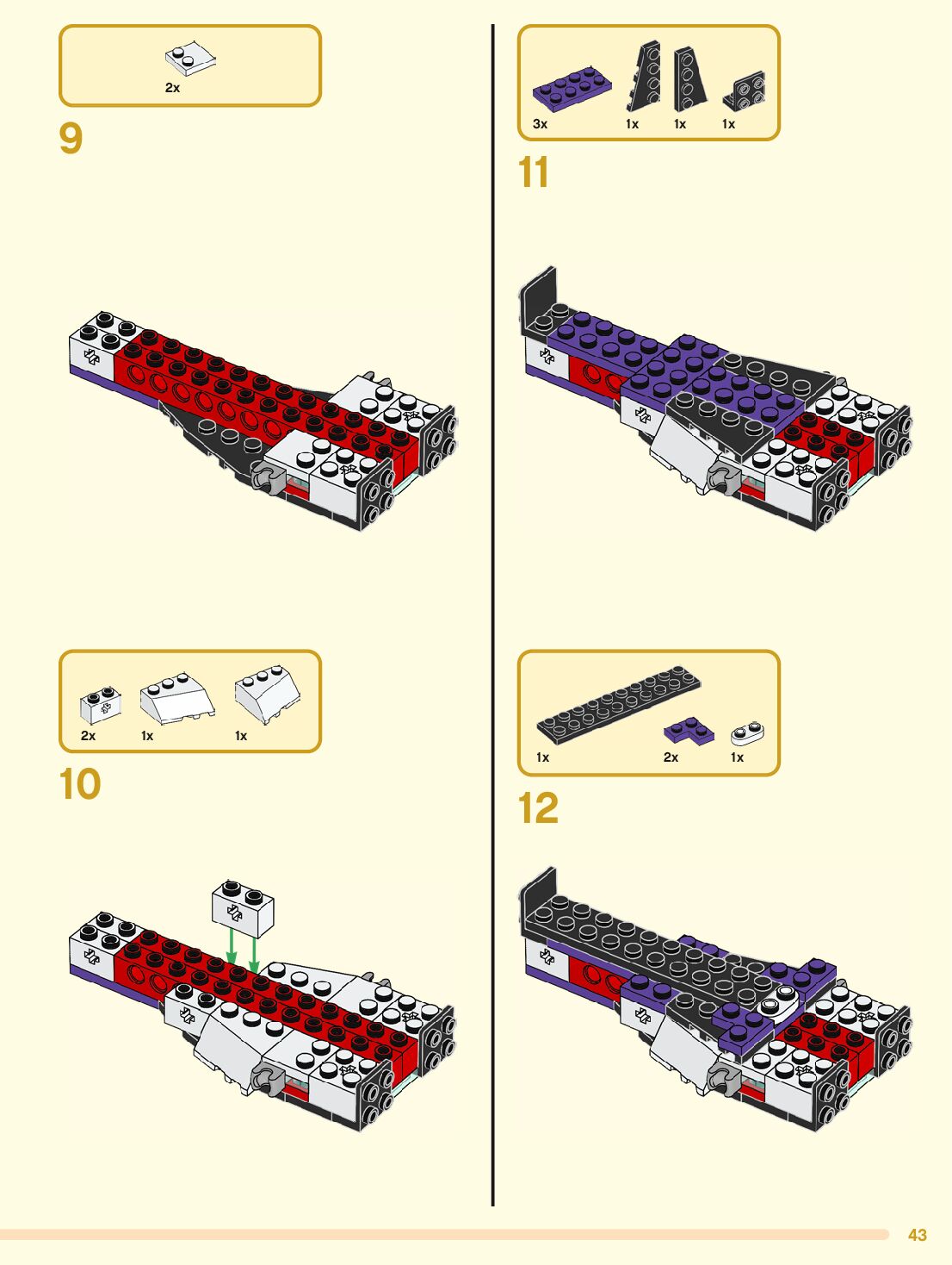 The assembly guide is prepared in a very understandable way for children and adult LEGO enthusiasts. A total of 232 picture galleries are shown, explaining the step-by-step construction stages for 3 different structures.