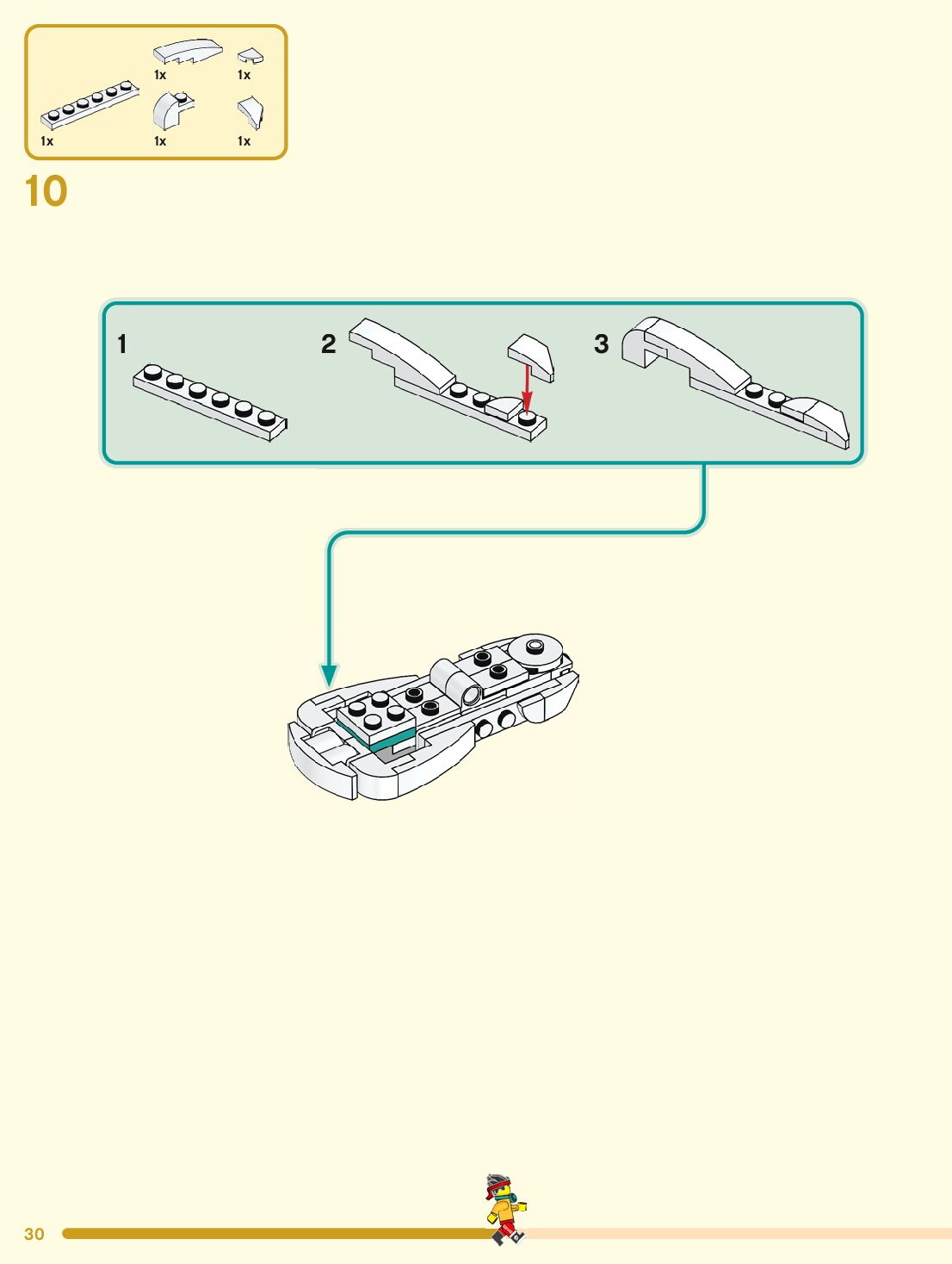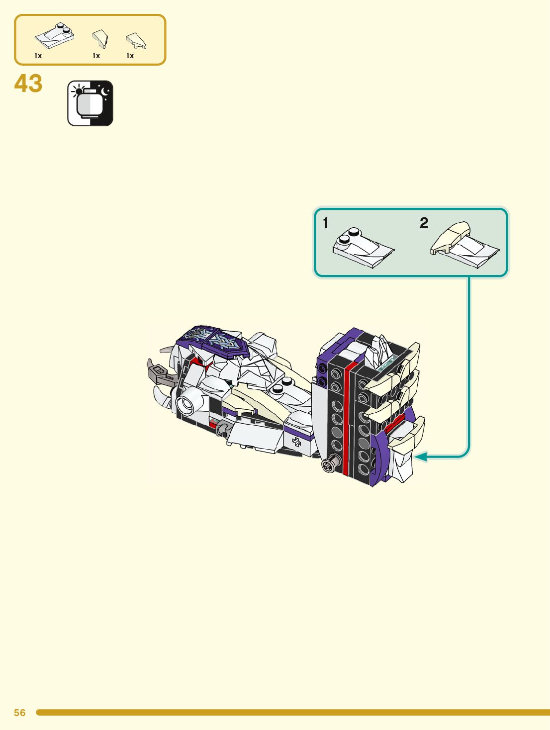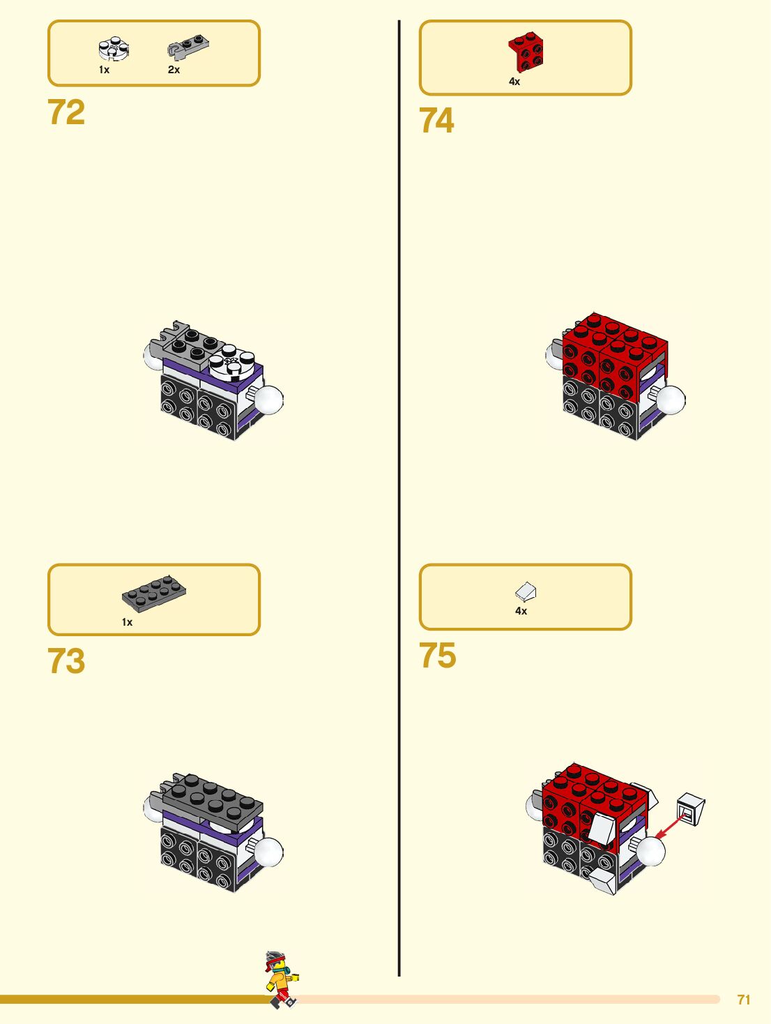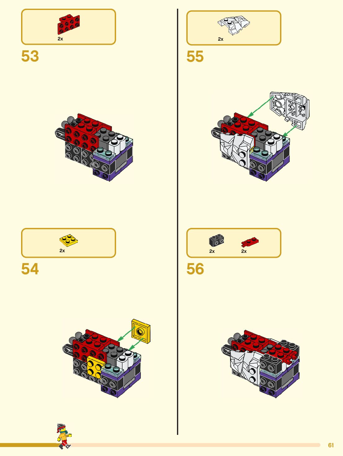 The assembly guide is prepared in a very understandable way for children and adult LEGO enthusiasts. A total of 232 picture galleries are shown, explaining the step-by-step construction stages for 3 different structures.