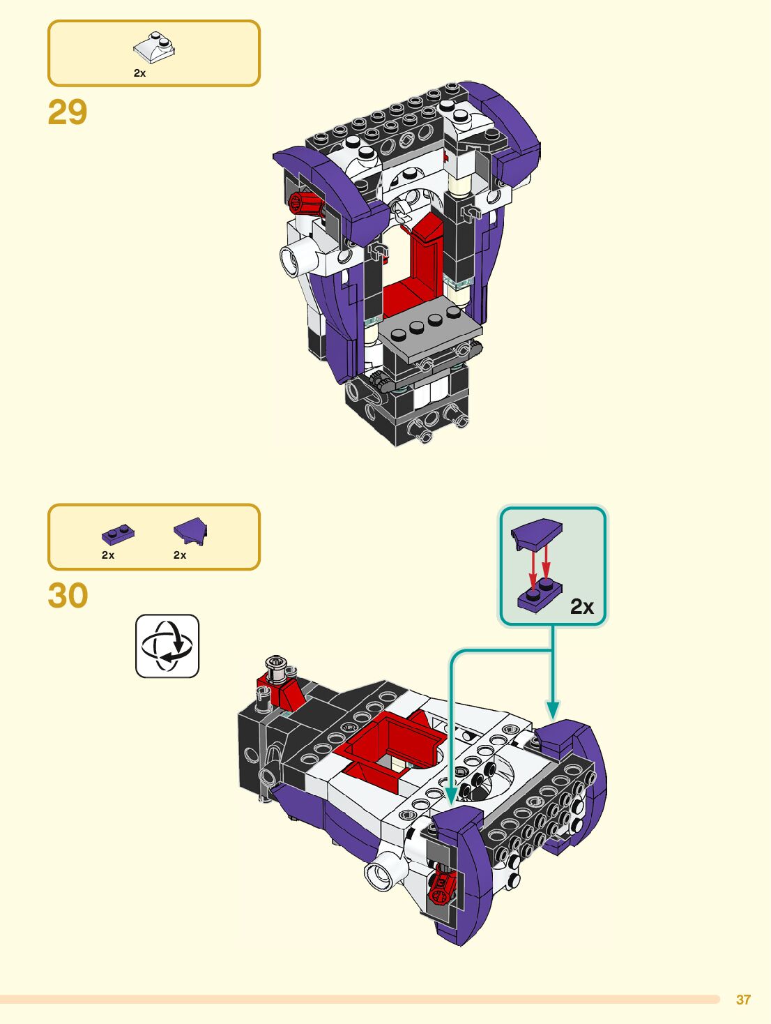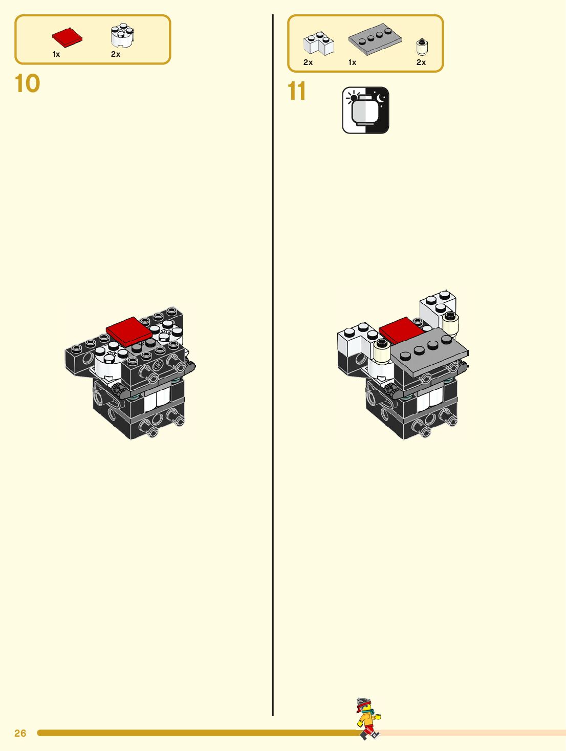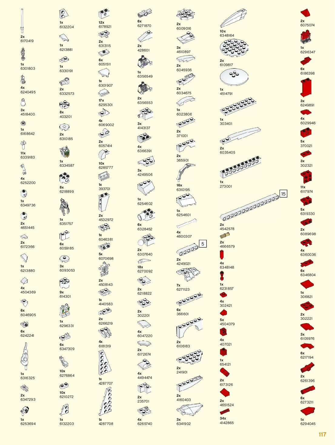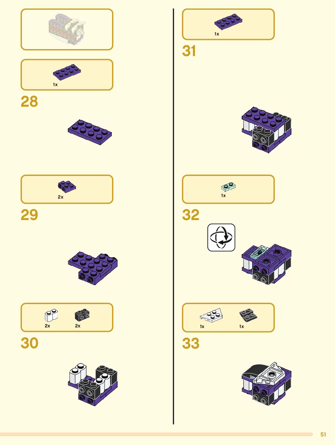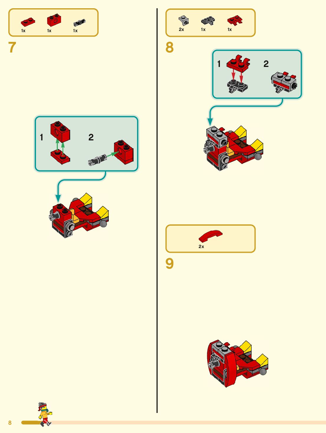 The assembly guide is prepared in a very understandable way for children and adult LEGO enthusiasts. A total of 232 picture galleries are shown, explaining the step-by-step construction stages for 3 different structures.