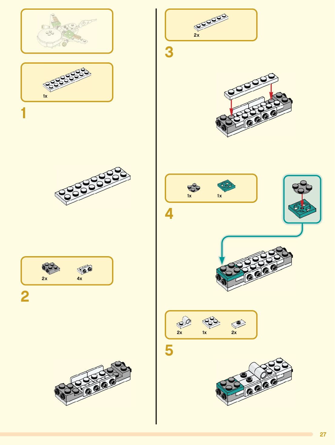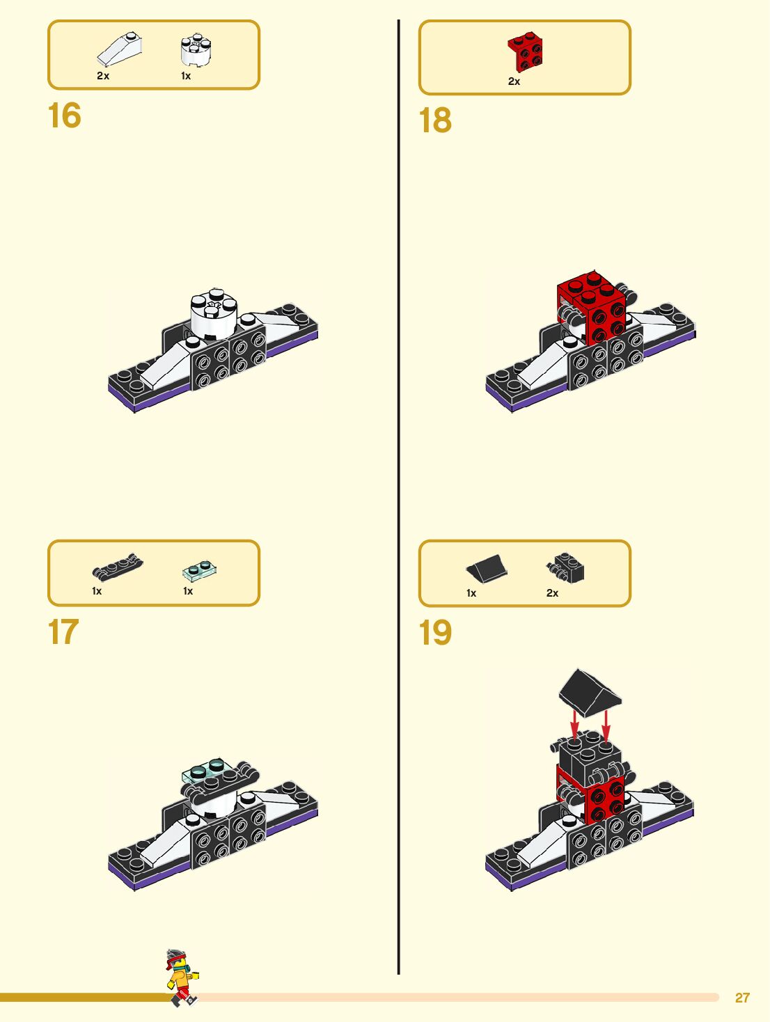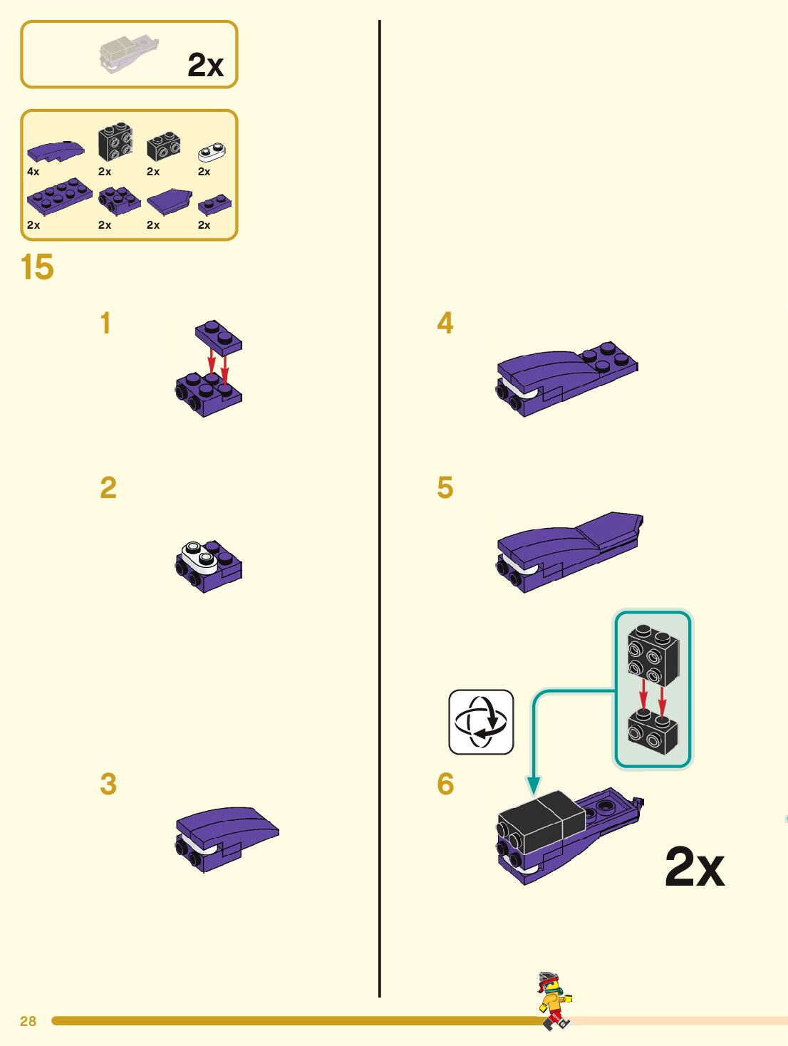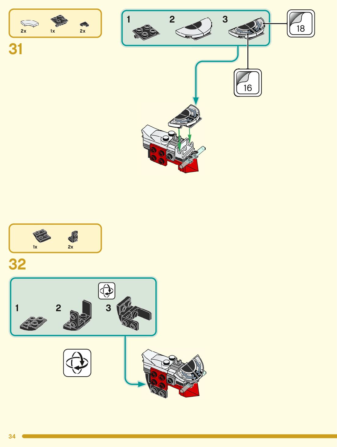 The assembly guide is prepared in a very understandable way for children and adult LEGO enthusiasts. A total of 232 picture galleries are shown, explaining the step-by-step construction stages for 3 different structures.