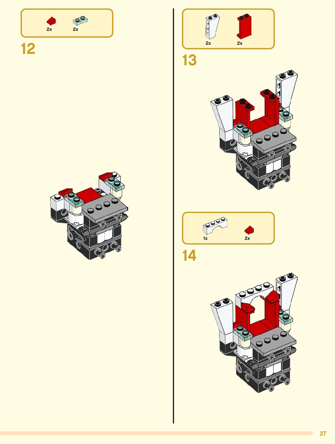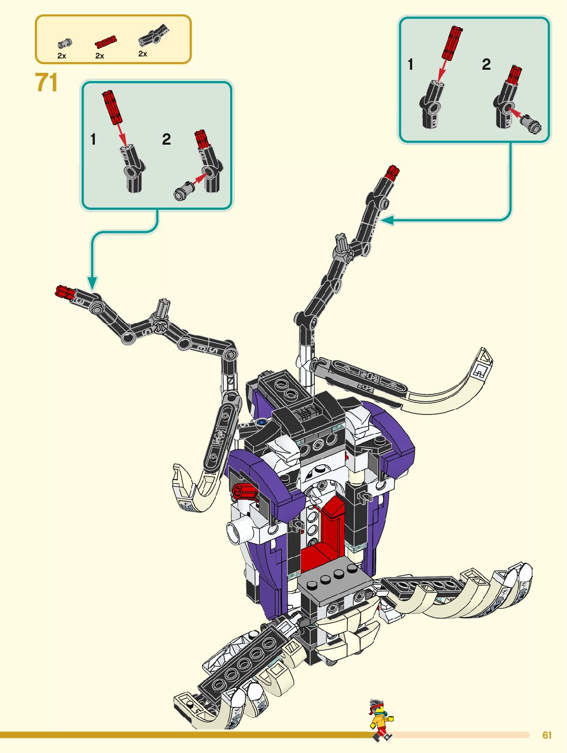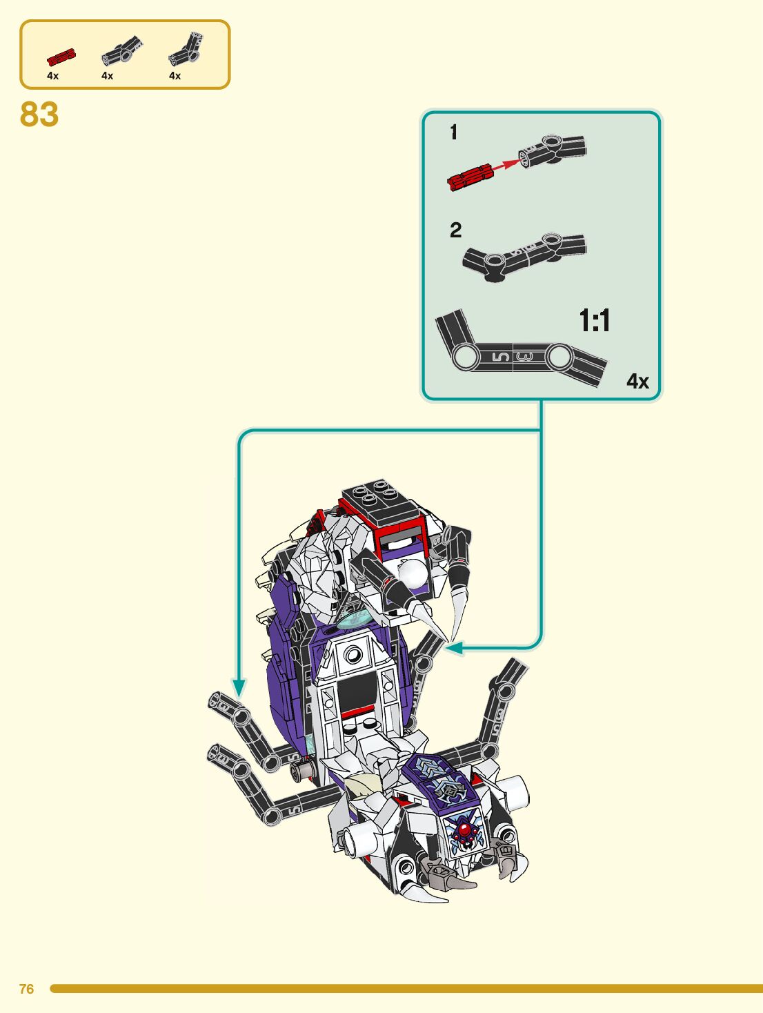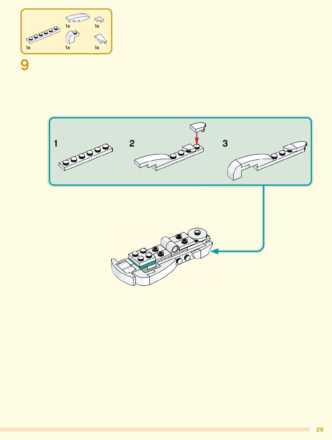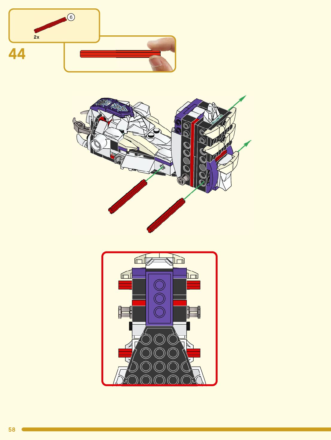 The assembly guide is prepared in a very understandable way for children and adult LEGO enthusiasts. A total of 232 picture galleries are shown, explaining the step-by-step construction stages for 3 different structures.