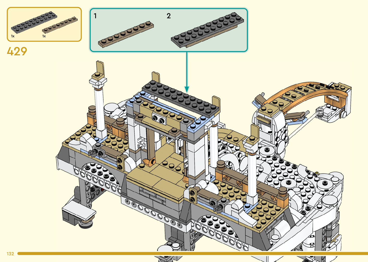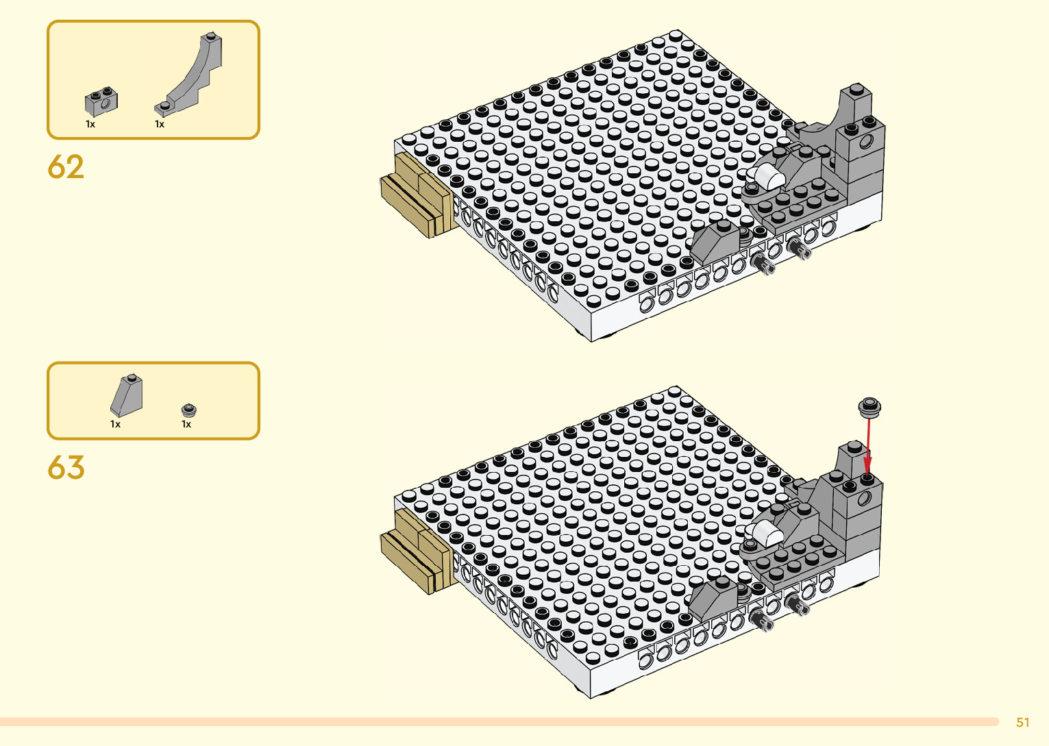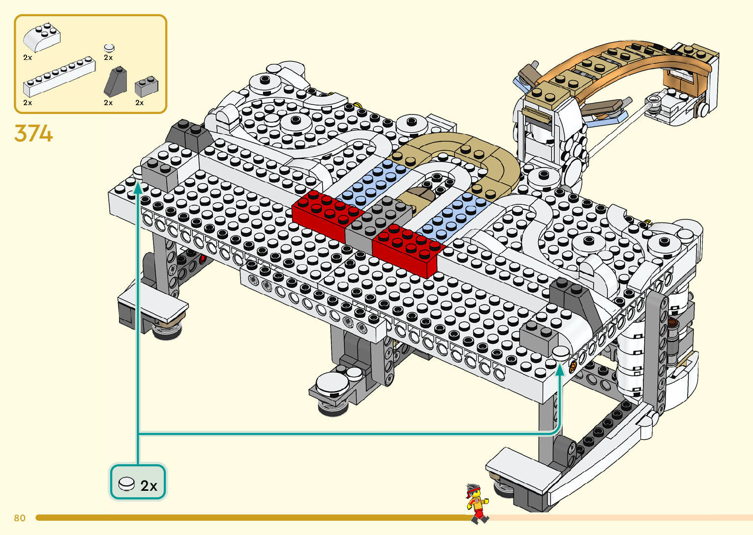 The assembly guide is prepared in a very understandable way for children and adult LEGO enthusiasts. A total of 452 picture galleries are shown, explaining the step-by-step construction stages for 2 different structures.